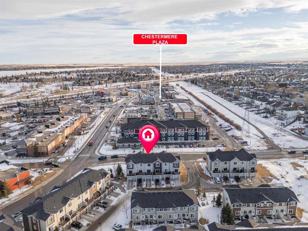 DOWNTOWN CHESTERMERE LIVING + PRIVATE FENCED YARD + ATTACHED GARAGE + LOW CONDO FEES — THIS IS THE ONE YOU’VE BEEN WAITING FOR!!! Welcome home to this BRIGHT + SUNNY 2 BEDROOM, 2 BATHROOM townhome perfectly situated in the HEART of downtown Chestermere — just steps to restaurants, shops, pubs, amenities, the BEACH and of course beautiful Chestermere Lake! RARE FEATURES you will LOVE: fenced yard, SINGLE ATTACHED GARAGE, full driveway for a SECOND VEHICLE, plus additional parking directly out front — WOW!!! The entry level welcomes you with a versatile FLEX ROOM — the perfect HOME OFFICE, gym, or bonus space — complete with a convenient half bath and direct access to your attached garage. Head upstairs to a BRIGHT + OPEN main living area designed for entertaining. The modern kitchen features GRANITE COUNTERTOPS, a large island with breakfast bar seating, NEW microwave hoodfan and sliding doors leading to your private balcony — the PERFECT spot for evening BBQs (and yes, the BBQ is INCLUDED!). The dining area flows seamlessly into the sun-filled living room — ideal for hosting friends, family, or catching the big game. Upstairs you’ll find TWO SPACIOUS BEDROOMS. The primary suite easily fits a KING-SIZE BED and includes a spacious closet with built ins. The second bedroom is generously sized and perfect for guests, kids, or additional office space. The upper level is completed with a 4-piece bathroom featuring GRANITE COUNTERS + MODERN VANITY, along with a convenient laundry room with BRAND NEW washer and dryer. Fresh paint, low condo fees, unbeatable walkability, private fenced yard (some are shared), garage + driveway parking — this home checks ALL the boxes. If you’ve been waiting for the perfect place to call home at a price that DOESN’T break the bank — THIS. IS. IT.