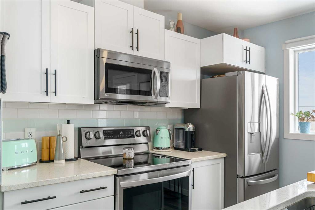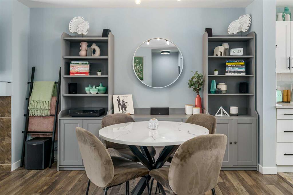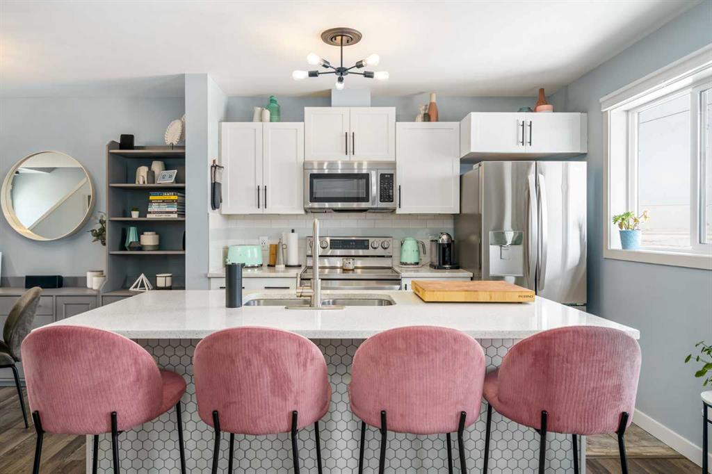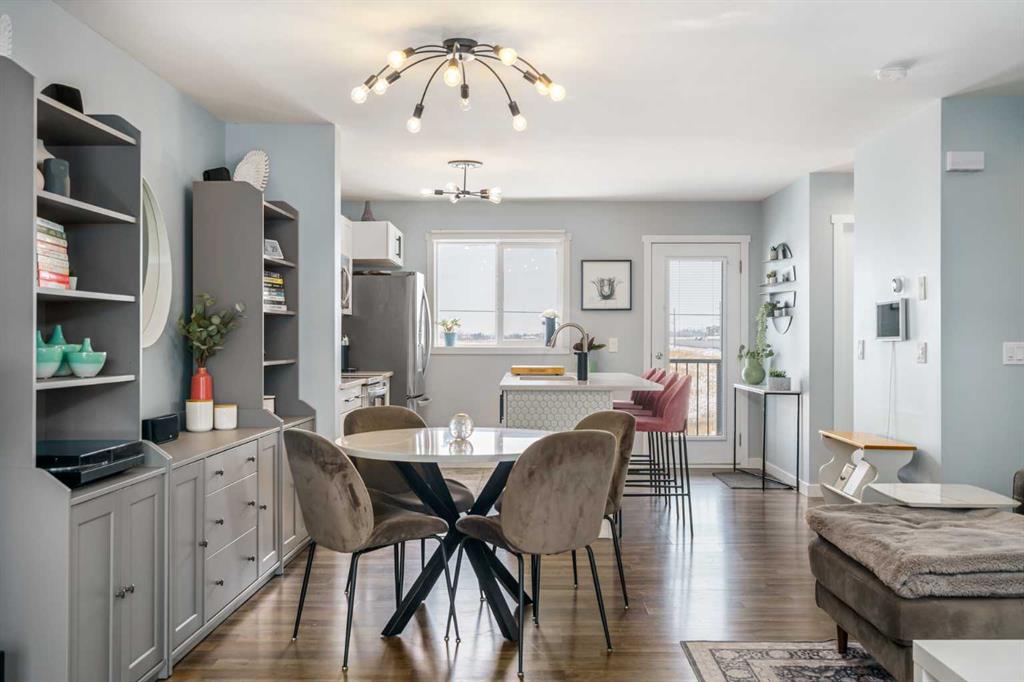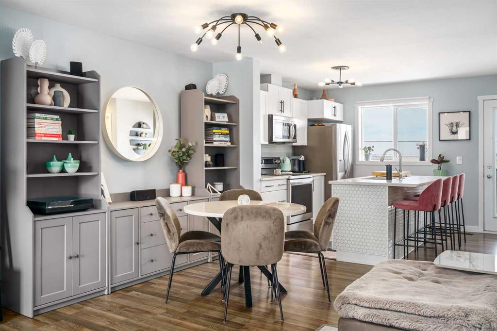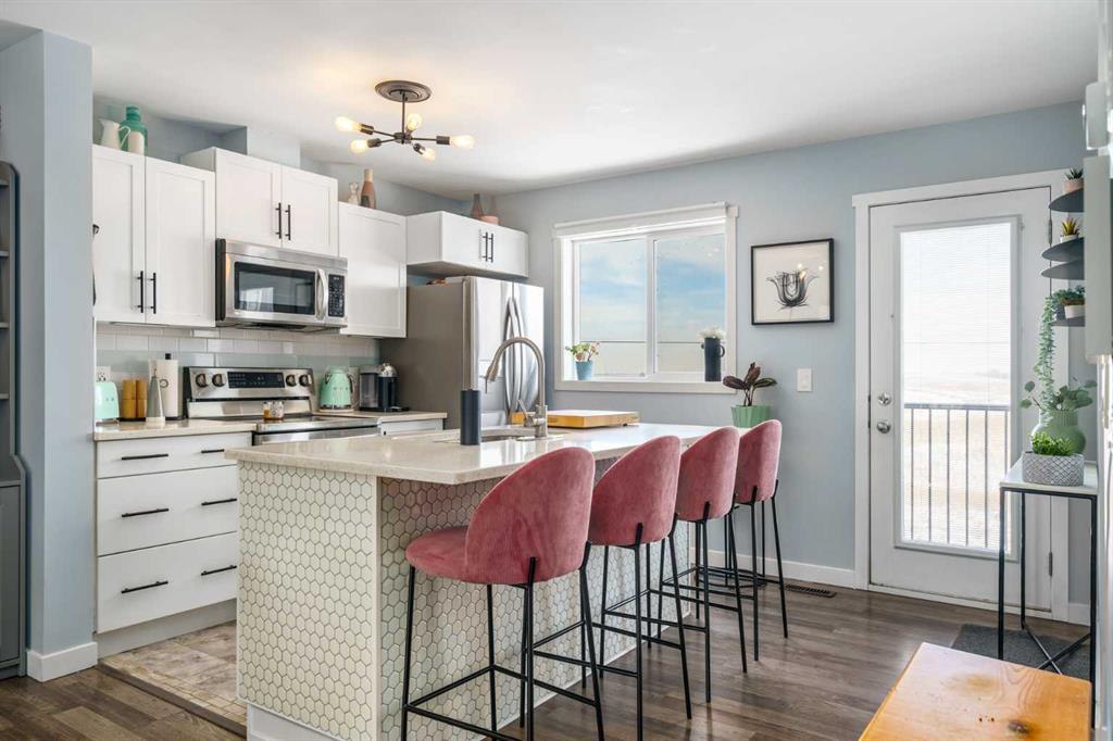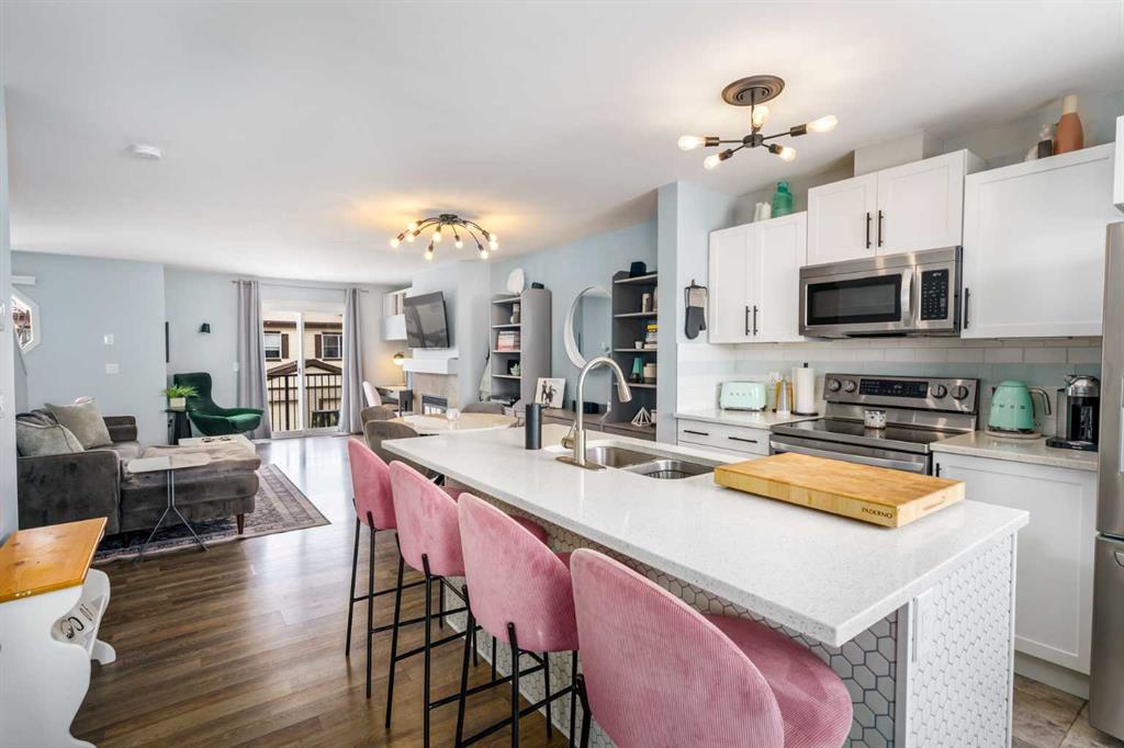 ** OPEN HOUSE SATURDAY MARCH 28, 1-3PM ** Welcome to Aura in Copperfield, a beautifully finished 3-storey townhome that pairs an elevated interior with a premium backdrop of open green space and wetlands behind. From the moment you arrive, the layout just works for real life. The entry level offers a single attached garage and a bright flex/office space that’s perfect for a home workspace, Peloton room, play area, or a cozy TV den, plus it walks out to a lower patio, making summer evenings and weekend lounging feel effortless. Upstairs, the main floor is where everyone naturally gathers, finished with laminate flooring throughout and an airy, light-filled feel. For added comfort through Calgary’s warmer months, the home is also equipped with central air conditioning. The rear kitchen is crisp and contemporary with white cabinetry, quartz countertops, and a generous island wrapped in a standout hexagon tile detail, the kind of finish that instantly feels more custom. Add tile flooring, newer stainless appliances, and thoughtful storage (including two closets by the kitchen that easily function as a pantry and broom/utility closet), and you’ve got a space that’s as practical as it is stylish. The dining area sits right in the center of the floor plan—anchored by a modern light fixture, making it ideal for everything from casual weeknight dinners to hosting friends, and yes, it sets up perfectly for those holiday meals where everyone ends up lingering at the table. At the front of the home, the living room is impressively sized and inviting, featuring a central fireplace with a tile surround and access to a second deck, great for catching the sun, sipping coffee, or creating a little outdoor lounge zone separate from the kitchen deck. On the top floor you’ll find three bedrooms, including a spacious primary retreat with a walk-in closet and 4-piece ensuite, plus two additional bedrooms at the back with large windows and another 4-piece bath conveniently placed just outside their doors. Set within a well-established southeast Calgary community known for its parks, ponds, and interconnected pathways, Copperfield offers a lifestyle that’s easy to love—whether it’s evening walks, bike rides, playground time, or meeting neighbours at local green spaces. Residents also enjoy access to the Copperfield Community Association amenities and programming, including community gathering spaces and seasonal features like outdoor recreation. And when it’s time to get around the city, you’re well-positioned with convenient access to major routes like Stoney Trail and Deerfoot Trail, plus everyday shopping and services nearby.