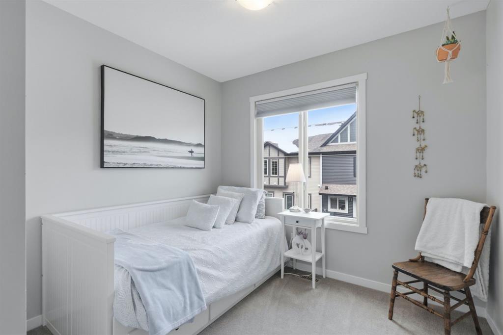 Located in the heart of Legacy, this stylish 3-storey 3 BED/2.5 BATH townhome in Legends of Legacy offers over 1700 sq ft of thoughtfully designed living space, a double attached garage, and the perfect balance of privacy and open-concept living along with Air Conditioning for year round comfort. The ground level welcomes you with a bright front den ideal for a home office, gym, or flex space, along with direct access to the insulated and drywalled garage. Upstairs, the main living level is the true heart of the home, featuring a spacious open concept kitchen, dining, and family room anchored by quartz countertops, stainless steel appliances, generous cabinetry, and a separate pantry. Two private balconies extend your living space, one complete with a gas line for effortless summer BBQs, while a convenient tucked away 2-piece bath and in-suite laundry add everyday functionality. The top floor is warm and inviting with brand new carpet throughout, a spacious primary retreat with walk-in closet and private 3-piece ensuite, plus two additional good sized bedrooms bedrooms and a full 4-piece bath. Just steps from scenic walking paths, green space, schools, shopping, and transit, this move-in ready home delivers style, comfort, and low-maintenance living in one of Calgary’s most desirable south communities.