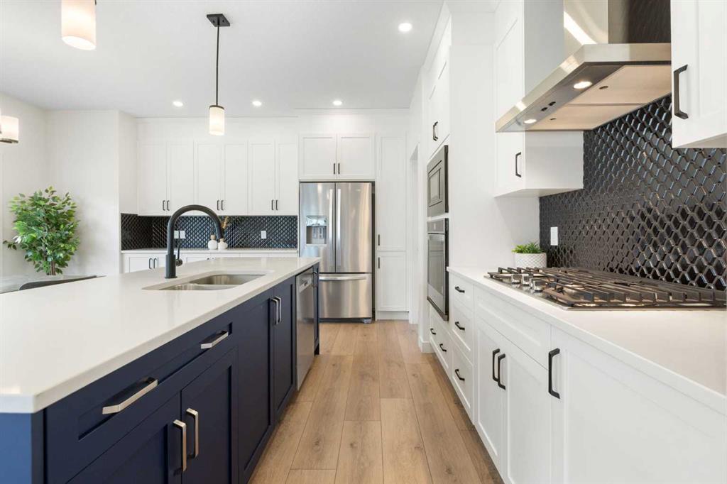 Experience modern elegance in this 2,250+ sq. ft. Bayside masterpiece. This 4-bedroom + office home features a stunning open-concept kitchen with quartz countertops, a walk-through pantry, and a cozy fireplace. The upper level boasts a versatile loft and a serene primary retreat with a spa-inspired ensuite. Enjoy premium finishes like wide vinyl plank flooring, central A/C, and a double attached garage. The west-facing backyard floods the home with natural light, while the prime location puts you steps from Bayside’s scenic canals, Nose Creek Elementary, and Chinook Winds Park. Move into Airdrie’s premier family community today!
