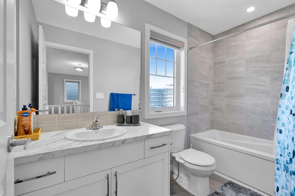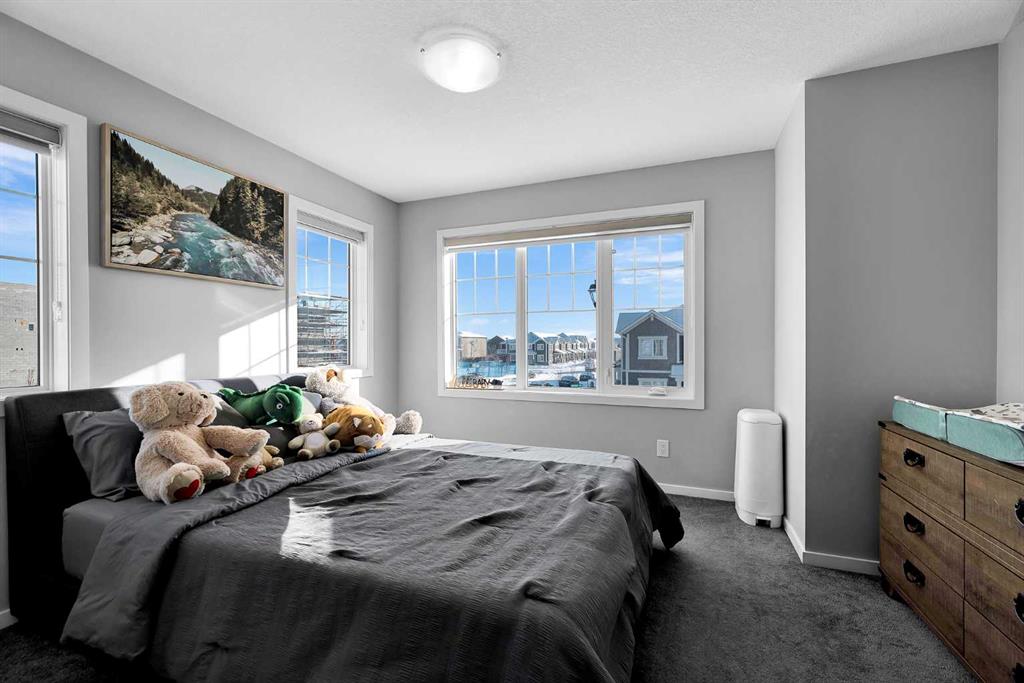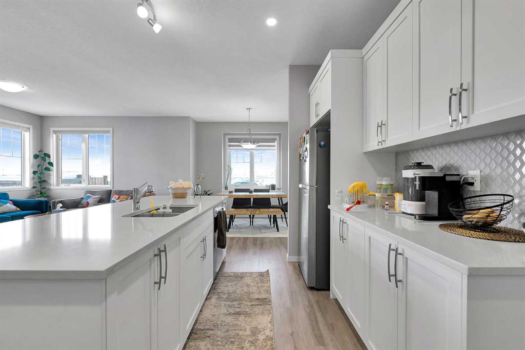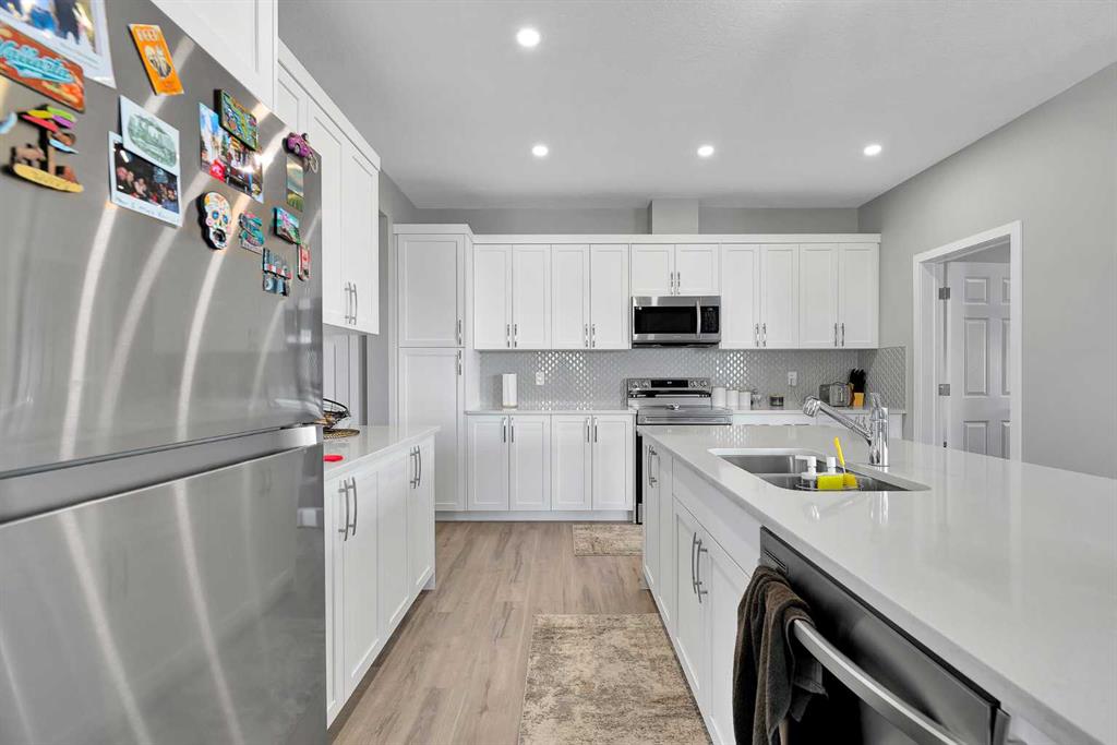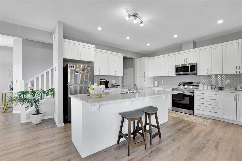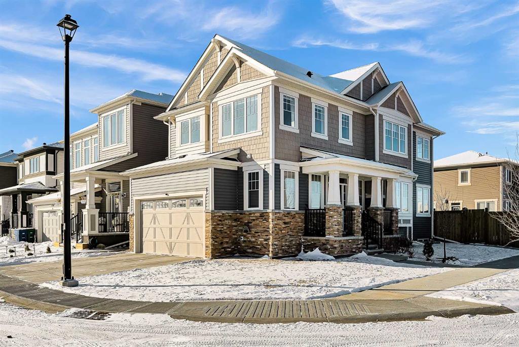 Experience exceptional living in the sought-after South Windsong community of SW Airdrie! This corner-lot home combines style, space, and modern convenience. The main floor features a bright open-concept kitchen with white cabinetry, a large quartz island, and direct garage access for easy unloading. Enjoy a cozy living room with fireplace, a versatile den for an office, and elegant vinyl flooring throughout. Upstairs offers three spacious bedrooms, including a primary suite with walk-in closet and upgraded 5-piece ensuite. Two additional bedrooms, a full 4-piece bathroom, and upper-level laundry complete the floor. Plush carpet adds comfort to the stairs and bedrooms. Stay comfortable year-round with central air conditioning. Newly updated flooring and a recently finished backyard enhance the home’s appeal. The unfinished basement provides room for future expansion. Located on a corner lot with future school space nearby, this home is perfect for families seeking convenience and lifestyle. Contact your trusted realtor today to schedule a private showing!