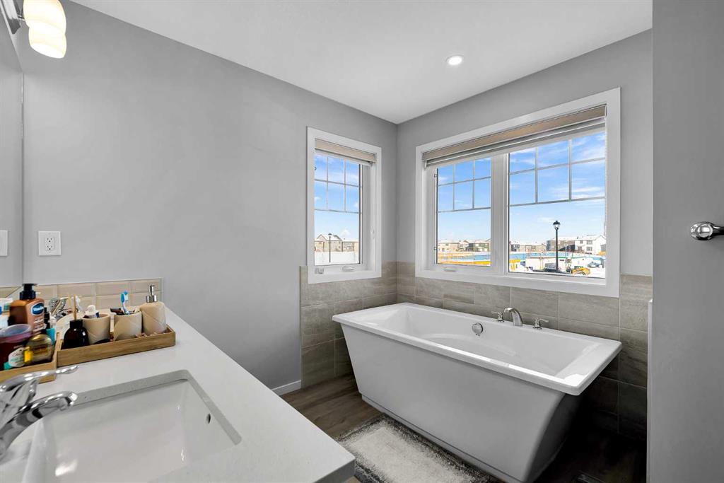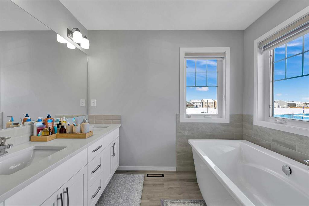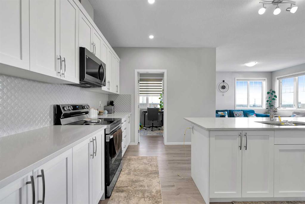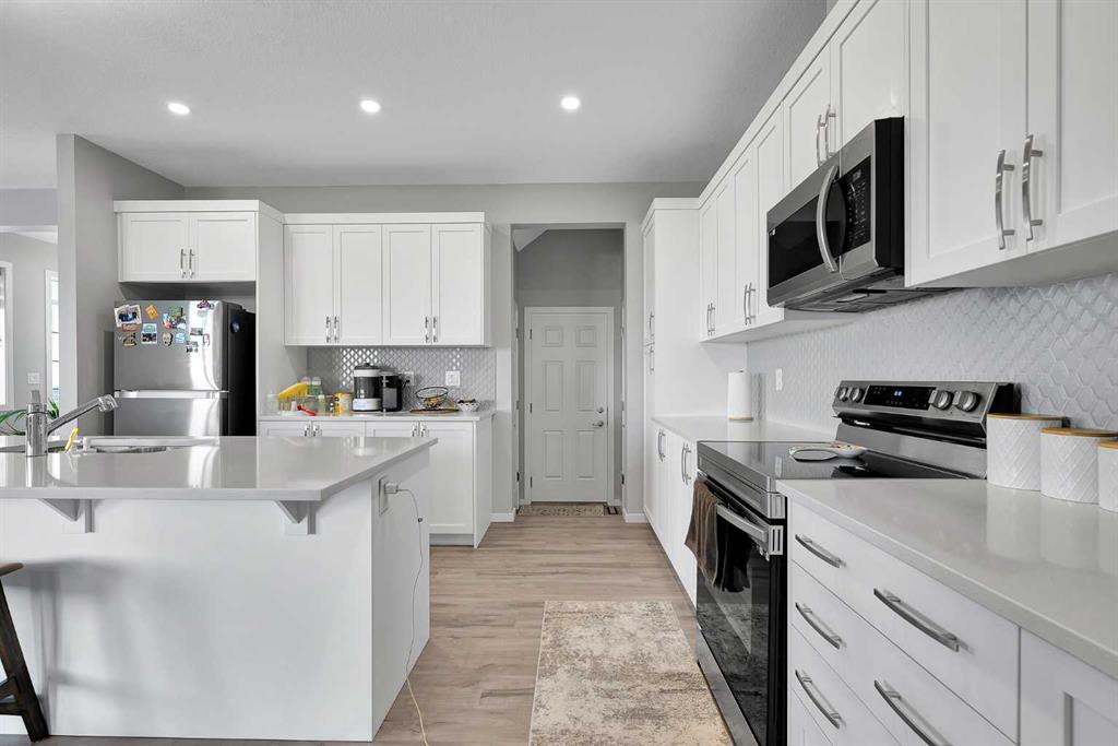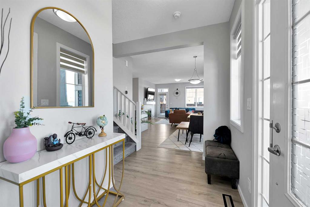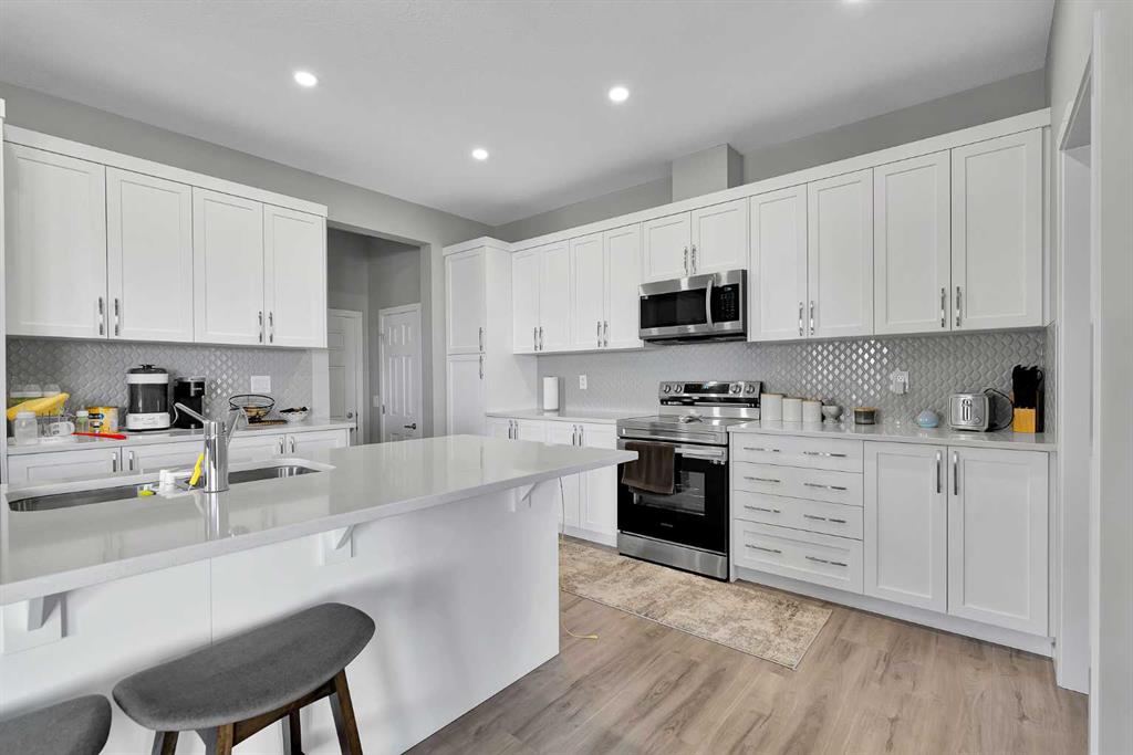 Experience exceptional living in the sought-after South Windsong community of SW Airdrie! This corner-lot home combines style, space, and modern convenience. The main floor features a bright open-concept kitchen with white cabinetry, a large quartz island, and direct garage access for easy unloading. Enjoy a cozy living room with fireplace, a versatile den for an office, and elegant vinyl flooring throughout. Upstairs offers three spacious bedrooms, including a primary suite with walk-in closet and upgraded 5-piece ensuite. Two additional bedrooms, a full 4-piece bathroom, and upper-level laundry complete the floor. Plush carpet adds comfort to the stairs and bedrooms. Stay comfortable year-round with central air conditioning. Newly updated flooring and a recently finished backyard enhance the home’s appeal. The unfinished basement provides room for future expansion. Located on a corner lot with future school space nearby, this home is perfect for families seeking convenience and lifestyle. Contact your trusted realtor today to schedule a private showing!
