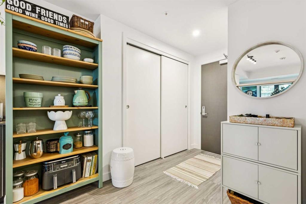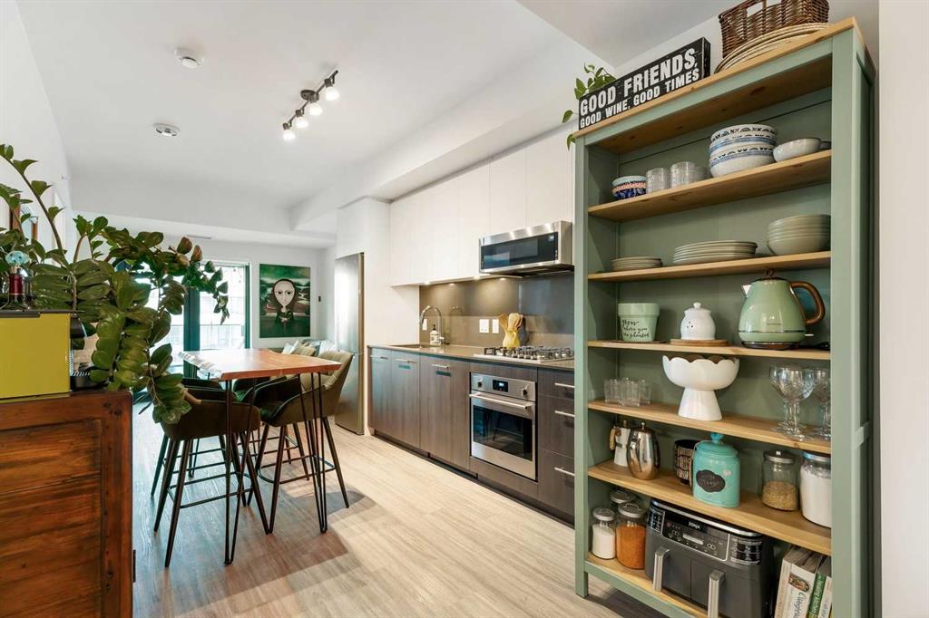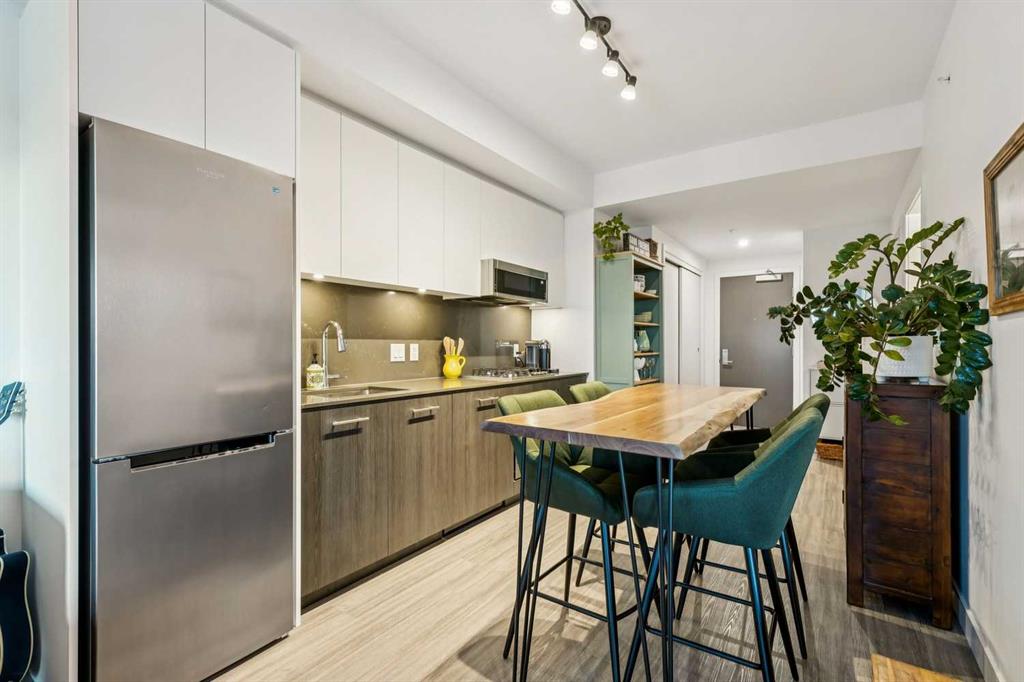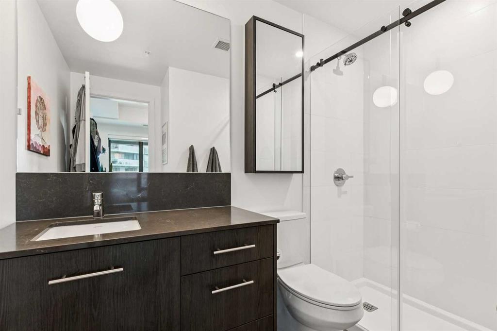 Welcome to Unit 210 at First & Park — in Calgary’s highly sought-after Eau Claire community, where the city meets the river. This contemporary 2 bedroom, 2 bathroom home blends modern design with everyday functionality, offering exceptional value in one of downtown’s most desirable buildings. The open-concept layout showcases a sleek kitchen with quartz countertops, stainless steel appliances, and ample cabinetry, seamlessly flowing into a bright living area that extends to your large balcony overlooking the Peace Bridge and the River - the perfect place to enjoy morning light or unwind after work.The spacious bedroom, full bathroom, and in-suite laundry provide comfort and convenience, while the titled parking stall adds everyday practicality. Residents enjoy premium amenities including a fully equipped fitness centre, stylish party lounge, an outdoor patio and gas BBQ hookups, secure parcel lockers, two elevators, and concierge service seven days a week — all within a quiet, boutique-style building. Located just steps from the Bow River pathways, Prince’s Island Park, Eau Claire Market, and downtown’s top restaurants, cafés, and shops, this home offers the perfect balance of lifestyle and location. Whether you’re a first-time buyer, investor, or searching for a refined downtown residence - this home checks every box for sophisticated inner-city living. Book your showing today!