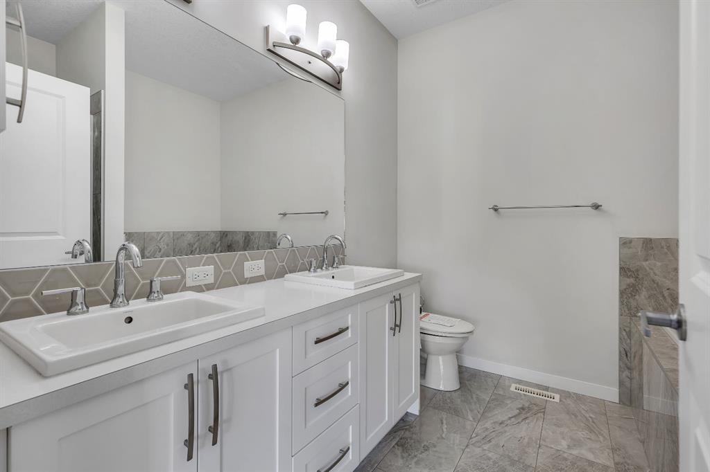 Step into luxury with this former Excel Homes showhome, fully loaded and perfectly situated in the vibrant lake community of Mahogany. Boasting over 2,300 sq. ft. of beautifully upgraded living space, this home features high ceilings and a bright open-concept layout highlighted by a grand foyer with high-end ceramic tile and gleaming hardwood floors throughout the main level. The stylish corner kitchen is equipped with L-shaped quartz countertops, a central island, stainless steel appliances, a chimney hood fan, and large south-facing windows that fill the space with natural light. Upstairs, discover three spacious bedrooms and two full bathrooms, including a luxurious primary retreat with a 5-piece ensuite, enhanced by upgraded lighting and designer feature walls throughout. The fully developed basement, complete with a side entrance, offers a large recreation room, an additional bedroom, and a 4-piece bathroom—ideal for extended family or guests. Complete with central air conditioning, professionally landscaped grounds, and a large deck perfect for entertaining, this home is set in Mahogany, one of Calgary’s most desirable lake communities, offering the best of lake life, urban convenience, and lifestyle. Close to parks, pathways, shops, dining, and year-round recreation, it’s located on a quiet street within walking distance to schools, shopping, and award-winning lake amenities. Spend weekends at the beach, explore wetlands, or enjoy peaceful evening strolls—just steps from your front door.Don’t miss this rare opportunity—contact your favourite REALTOR® today for a private showing.