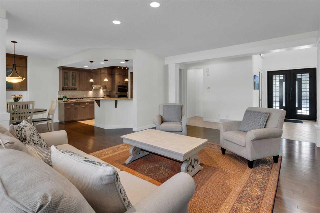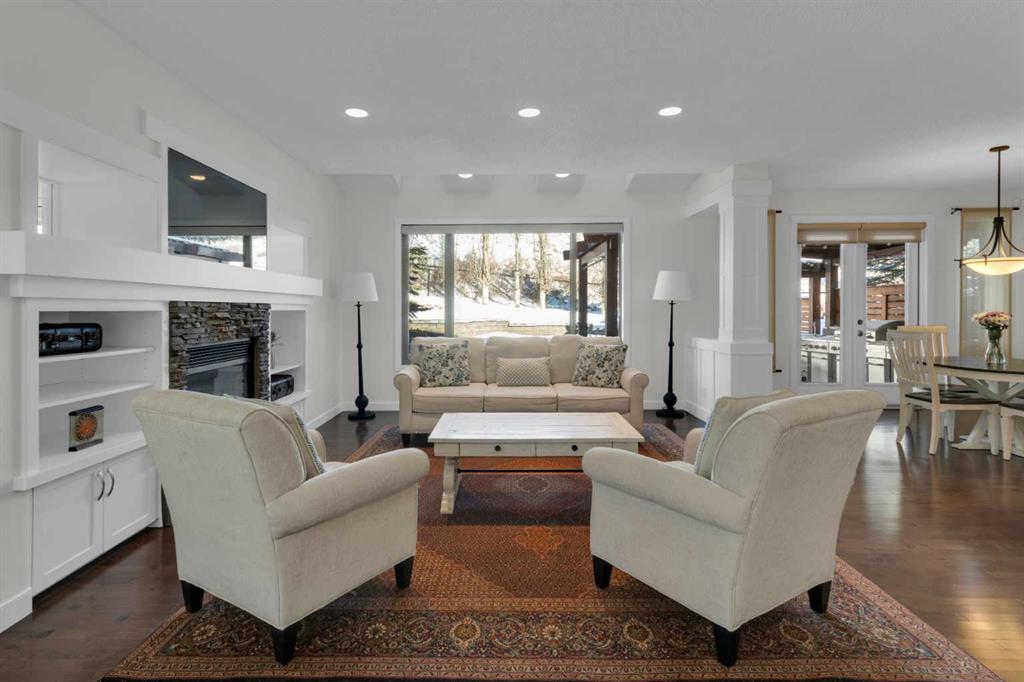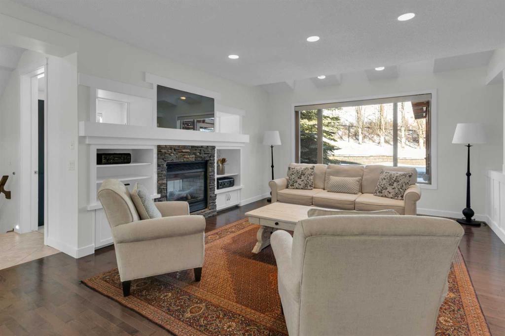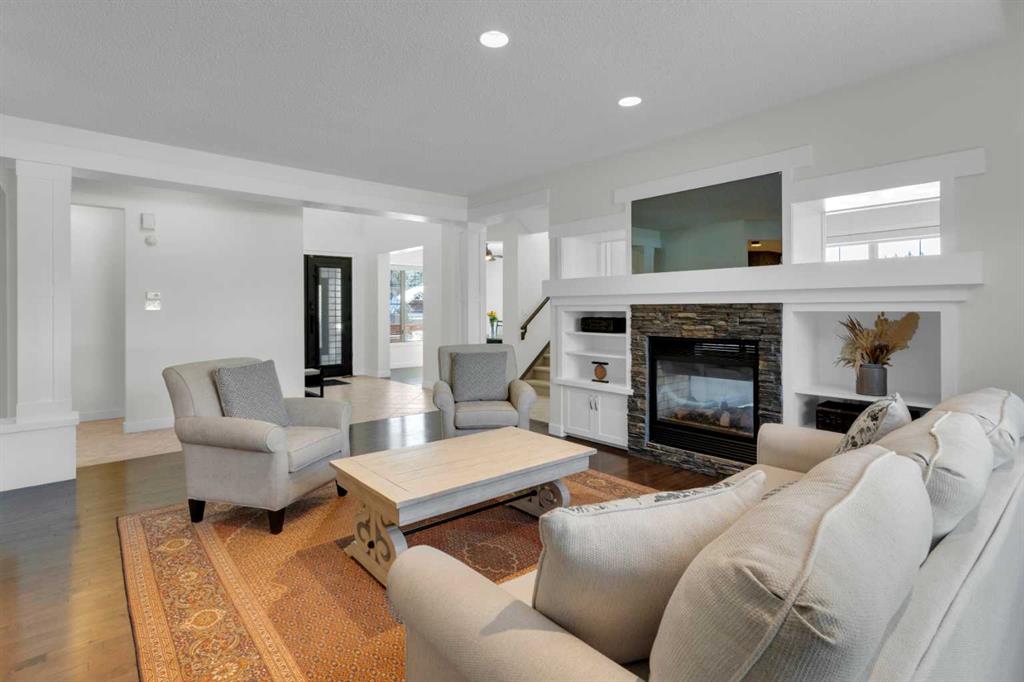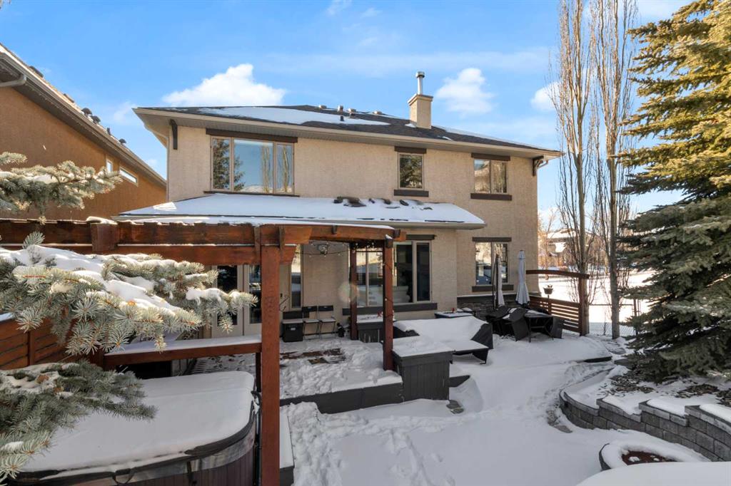 Located in Discovery Ridge & backing onto a hillside & green space, this exceptional home offers ultimate privacy & a serene natural setting. The main level features 9-foot ceilings & an open-concept design, highlighted by a two-sided fireplace with a discreet TV hidden behind a two-way mirror, seamlessly connecting the living area to an executive office. A well-organized mudroom is thoughtfully designed to support a busy family lifestyle. The kitchen is a true showpiece, featuring a professional Miele appliance package, abundant wood cabinetry, granite countertops, tile backsplash, coffee bar, breakfast nook, & a massive breakfast bar—perfect for entertaining. Patio doors just off the breakfast nook create a seamless transition to the outdoor living space, making indoor/outdoor gatherings effortless in any weather. Upstairs, you’ll find a spacious bonus room, a large primary suite with a completely renovated dream ensuite featuring quartz countertops, convenient upper-level laundry, & two additional well-sized bedrooms. The fully developed lower level offers incredible versatility with an open recreation room, games area, wet bar with bar fridge & wine cooler, corner gas fireplace, two additional bedrooms & a fully renovated four-piece bathroom. The oversized double garage is fully finished with storage shelving & still accommodates a full-size truck. Outside, the beautifully landscaped backyard is an entertainer’s paradise, complete with a covered outdoor grill, BBQ gas line, hot tub, underground sprinklers, & a garden shed. Additional upgrades include two new furnaces, new blinds, new air conditioning & renovated all bathrooms (approx. $120,000). Ideally located just a short walk to the Elbow River, Griffith Woods Park, and the Discovery Ridge shopping centre, this home offers an unparalleled lifestyle surrounded by nature & convenience. Welcome home!