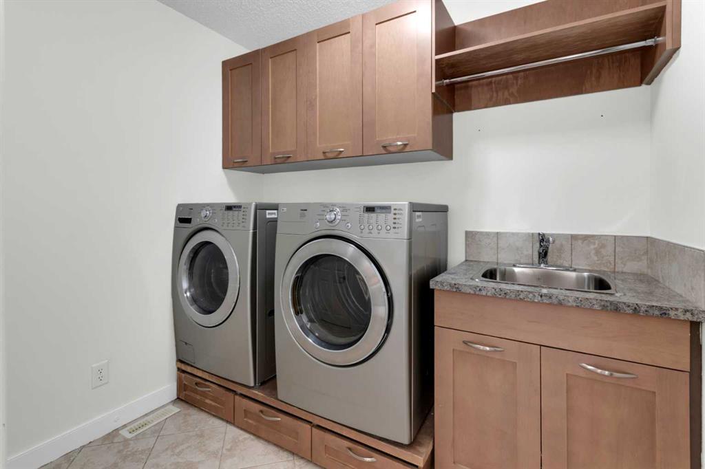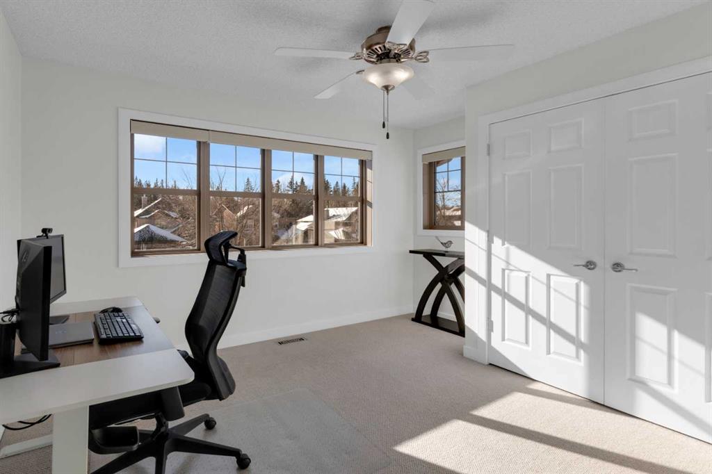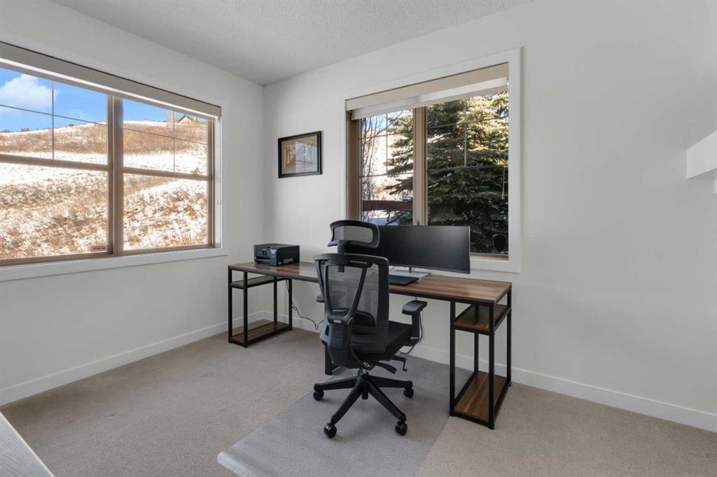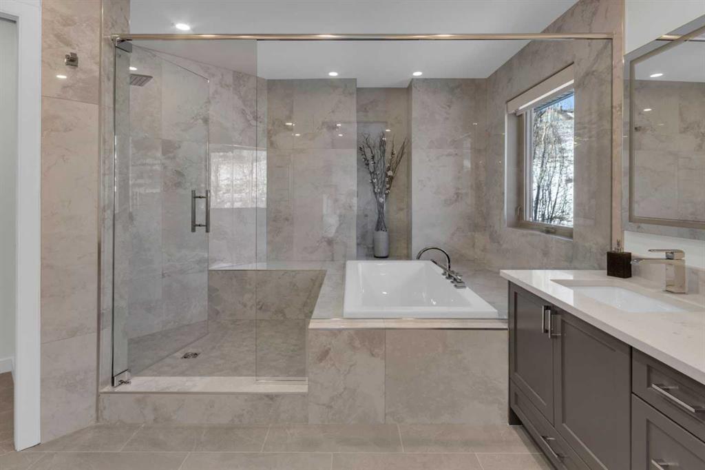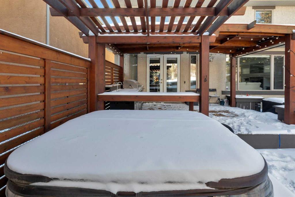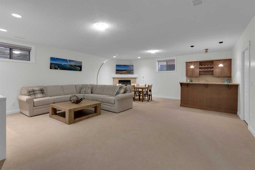 Located in Discovery Ridge & backing onto a hillside & green space, this exceptional home offers ultimate privacy & a serene natural setting. The main level features 9-foot ceilings & an open-concept design, highlighted by a two-sided fireplace with a discreet TV hidden behind a two-way mirror, seamlessly connecting the living area to an executive office. A well-organized mudroom is thoughtfully designed to support a busy family lifestyle. The kitchen is a true showpiece, featuring a professional Miele appliance package, abundant wood cabinetry, granite countertops, tile backsplash, coffee bar, breakfast nook, & a massive breakfast bar—perfect for entertaining. Patio doors just off the breakfast nook create a seamless transition to the outdoor living space, making indoor/outdoor gatherings effortless in any weather. Upstairs, you’ll find a spacious bonus room, a large primary suite with a completely renovated dream ensuite featuring quartz countertops, convenient upper-level laundry, & two additional well-sized bedrooms. The fully developed lower level offers incredible versatility with an open recreation room, games area, wet bar with bar fridge & wine cooler, corner gas fireplace, two additional bedrooms & a fully renovated four-piece bathroom. The oversized double garage is fully finished with storage shelving & still accommodates a full-size truck. Outside, the beautifully landscaped backyard is an entertainer’s paradise, complete with a covered outdoor grill, BBQ gas line, hot tub, underground sprinklers, & a garden shed. Additional upgrades include two new furnaces, new blinds, new air conditioning & renovated all bathrooms (approx. $120,000). Ideally located just a short walk to the Elbow River, Griffith Woods Park, and the Discovery Ridge shopping centre, this home offers an unparalleled lifestyle surrounded by nature & convenience. Welcome home!
