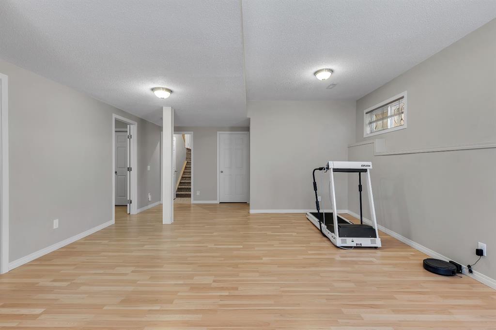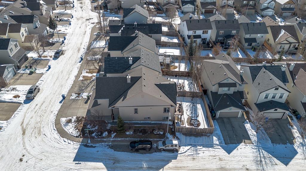 Prime location in Evanston! Situated on a desirable corner lot, this architecturally unique bi-level offers breathtaking, unobstructed views and a spectacular raised loft-style primary retreat. Move-in ready and exceptionally well cared for, this home reflects true pride of ownership throughout. The thoughtfully designed open-concept layout is enhanced by soaring vaulted ceilings and an abundance of natural light that fills the home with warmth. A spacious front entry welcomes you inside, leading to a generous wraparound kitchen complete with extensive cabinetry, a central island, granite countertops, stainless steel appliances, and a convenient corner pantry. The dining area offers plenty of space for gatherings and overlooks the backyard, with direct access to the sunny BBQ deck, complete with a gas connection. The inviting living room showcases a beautiful stone gas fireplace with a maple wraparound mantle. A versatile flex room on the main level can serve as a formal dining area, home office, or be converted into an additional bedroom. This level also features a second bedroom, a full 4-piece bathroom, main-floor laundry, and direct access to the double attached garage. Upstairs, retreat to your private and spacious primary suite, complete with a walk-in closet and a full 4-piece ensuite featuring a corner soaker tub and separate glass shower. The fully finished basement offers a bright recreation room with sunshine windows, a third bedroom, a 3-piece bathroom, and an office that could function as a fourth bedroom with the installation of a larger window, along with the utility/furnace room. Recent upgrades include a new shingles, eavestrough and fascia in 2025. A new High Efficiency furnace and air conditioning in 2023, adding both value and peace of mind.