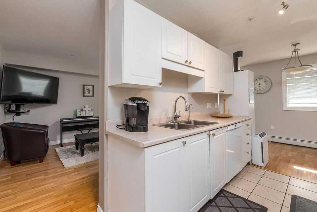 A well-maintained main floor corner unit at Nova Place condominiums. It features 2 bedrooms and 2 4-piece bathrooms one of which is the master bedroom ensuite. As soon as you walk into the unit foyer, on your left is the well-organized storage room and laundry room with newer washer and dryer and on the right is your coat closet and shoes. Next room is your very bright and spacious Living room then dining room and right behind is your kitchen with a breakfast area or you can move the dining set and used as your main dining area to give you more extra space for your living room. Just right around the kitchen is you master bedroom, the second bedroom, a 4-piece bathroom. Also, from the living room a door access to your balcony where you can place your BBQ grill for summer grilling with your family and friends. It is in good location with nearby restaurants, the Servus Sports complex with fitness facilities, and all other amenities for your easy and convenient condo living.