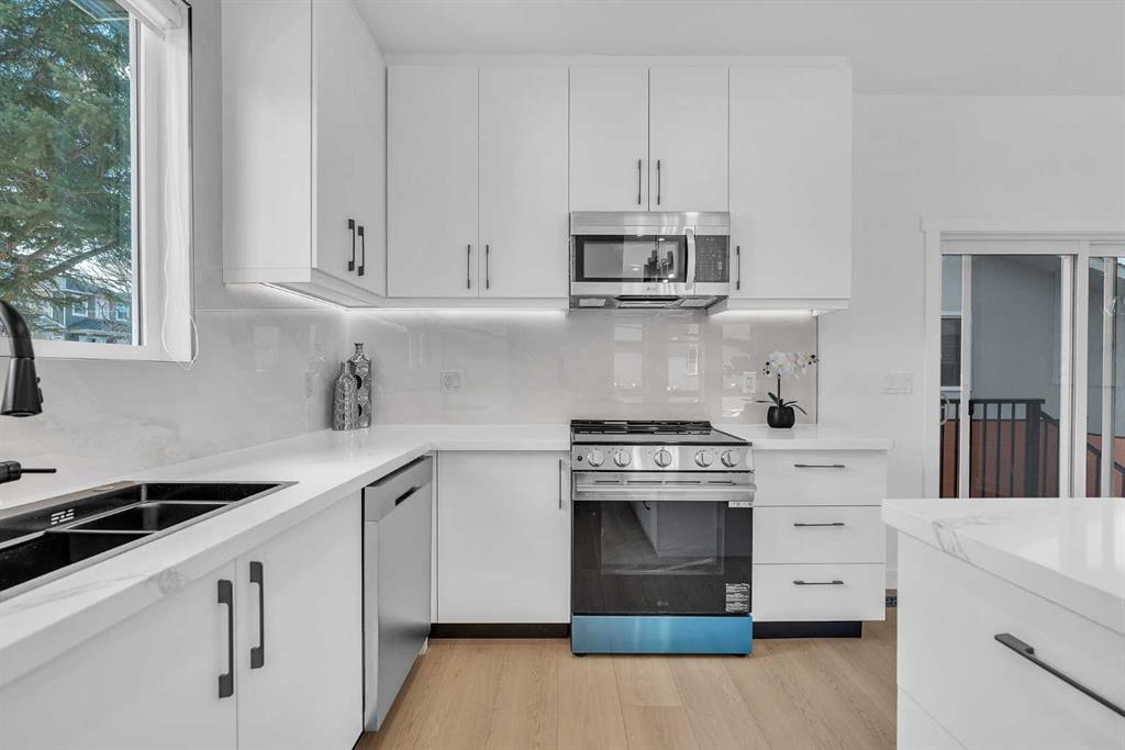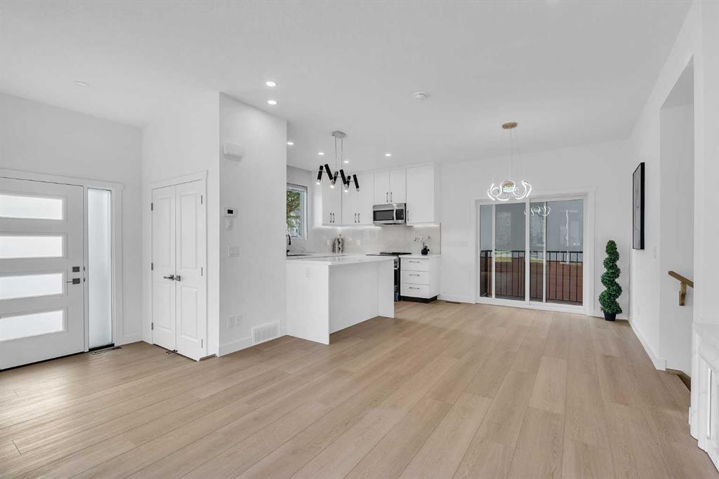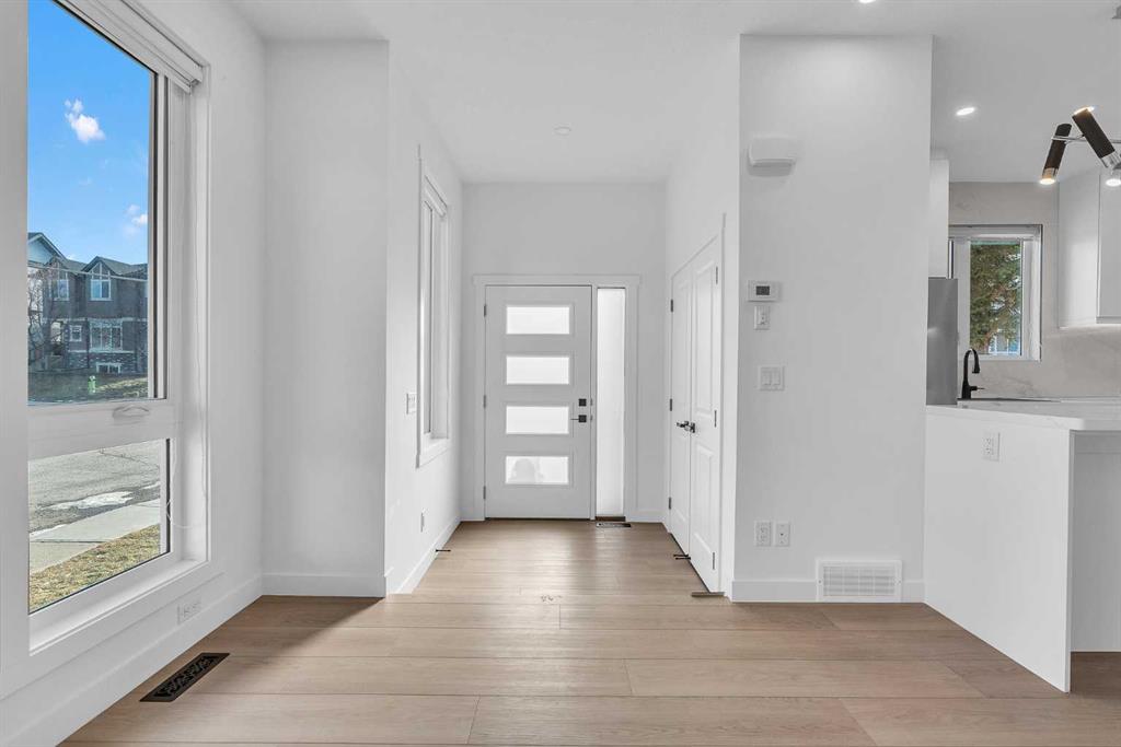 Experience refined inner-city living in this brand new, never-lived-in luxury home in Tuxedo Park, one of the most desirable inner-city communities in Calgary. This modern 2-storey residence offers a total of 3 bedrooms (2+1), 3.5 bathrooms, and 1,169 sq. ft. above grade, plus a fully developed basement — thoughtfully designed for elevated family living and sophisticated entertaining. A single detached garage adds convenience while maintaining the charm of the classic inner-city streetscape. The main floor showcases contemporary architectural design with large windows that flood the space with natural light, waterproof luxury vinyl plank flooring, modern lighting, and an open-concept layout tailored for today’s lifestyle. The living room features a sleek, modern electric fireplace that serves as a stylish focal point while creating a warm, cozy ambiance — perfect for relaxing on cold Calgary winter days. The chef-inspired kitchen features quartz countertops, premium stainless steel appliances, custom cabinetry, and a beautiful eating bar — a stunning focal point for gatherings and everyday luxury. Upstairs, retreat to two spacious bedrooms with vaulted ceilings, creating an airy, upscale ambiance rarely found in new construction homes in Tuxedo Park. Each bedroom offers access to a full bathroom, providing privacy and comfort ideal for professionals, couples, or growing families. The fully developed basement expands your living space with a third bedroom, a full bathroom, and an elegant family room — perfect for guests or a home office. Situated just minutes from downtown Calgary and close to top-rated schools, parks, shopping, transit, and major routes, this exceptional location offers unbeatable access to everything that makes inner-city living truly extraordinary.
