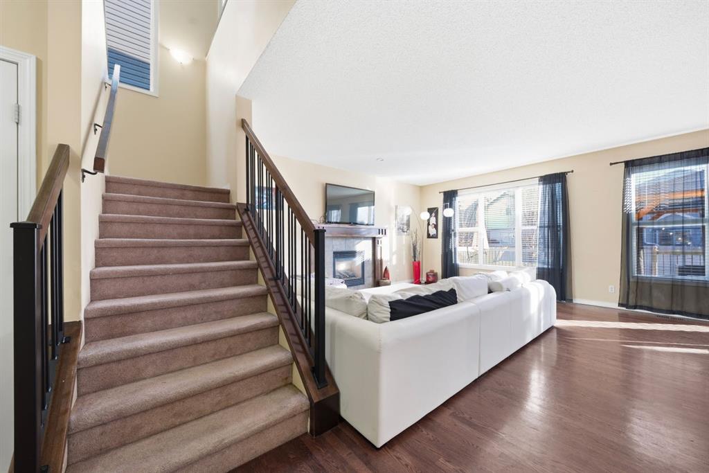 ** OPEN HOUSE SATURDAY FEB 28, 2-4PM & SUNDAY MARCH 1, 12-4PM ** Located in the desirable community of Copperfield, this fully developed two storey home offers over 2,700 sq ft of comfortable developed living space designed for growing families. With 4 bedrooms, 3.5 bathrooms, a double attached garage, and air conditioning, this property delivers space, functionality, and convenience with easy access to both Stoney Trail and Deerfoot Trail. Step inside to a bright and welcoming entry with an open to above design that creates an immediate sense of space. Hardwood flooring runs throughout the main level, leading into a spacious living room centered around a gas fireplace and large windows that bring in plenty of natural light. The kitchen is thoughtfully laid out with full height cabinetry, a statement island with stone accents, modern lighting, and a walk through pantry that connects directly to the mudroom and garage. The dining area overlooks the backyard, and a 2 piece bath completes the main floor. Upstairs, the primary bedroom serves as a private retreat with a walk in closet and a 5 piece ensuite featuring dual sinks, a soaker tub, and separate shower. Two additional bedrooms, a versatile bonus room, a full bathroom, and a dedicated upper level laundry room provide both comfort and practicality. The fully finished basement adds even more flexibility with a large recreation area, an additional flex space ideal for a home gym or media setup, a fourth bedroom, and another full bathroom. All bathrooms have been updated with new ceramic tile, and the roof and siding were replaced in 2022. Outside, enjoy a private backyard complete with a large deck, gazebo, and hot tub, perfect for relaxing or hosting family and friends. Surrounded by parks, ponds, pathways, schools, and everyday amenities, this Copperfield home presents a fantastic opportunity to settle into a well established southeast community.