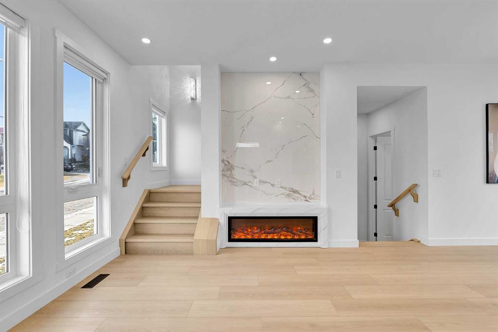 Experience refined inner-city living in this brand new, never-lived-in luxury home in Tuxedo Park, one of the most desirable inner-city communities in Calgary. This modern 2-storey residence offers a total of 3 bedrooms (2+1), 3.5 bathrooms, and 1,138 sq. ft. above grade, plus a fully developed basement — thoughtfully designed for elevated family living and sophisticated entertaining. A single detached garage adds convenience while maintaining the charm of the classic inner-city streetscape. The main floor showcases contemporary architectural design with large windows that flood the space with natural light, waterproof luxury vinyl plank flooring, modern lighting, and an open-concept layout tailored for today’s lifestyle. The living room features a sleek, modern electric fireplace that serves as a stylish focal point while creating a warm, cozy ambiance — perfect for relaxing on cold Calgary winter days. The chef-inspired kitchen features quartz countertops, premium stainless steel appliances, custom cabinetry, and a beautiful eating bar — a stunning focal point for gatherings and everyday luxury. Upstairs, retreat to two spacious bedrooms with vaulted ceilings, creating an airy, upscale ambiance rarely found in new construction homes in Tuxedo Park. Each bedroom offers access to a full bathroom, providing privacy and comfort ideal for professionals, couples, or growing families. The fully developed basement expands your living space with a third bedroom, a full bathroom, and an elegant family room — perfect for guests or a home office. Situated just minutes from downtown Calgary and close to top-rated schools, parks, shopping, transit, and major routes, this exceptional location offers unbeatable access to everything that makes inner-city living truly extraordinary.