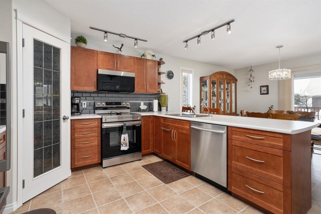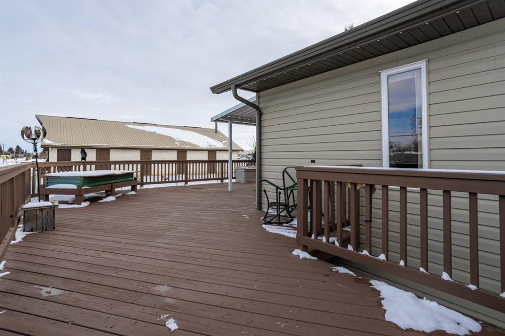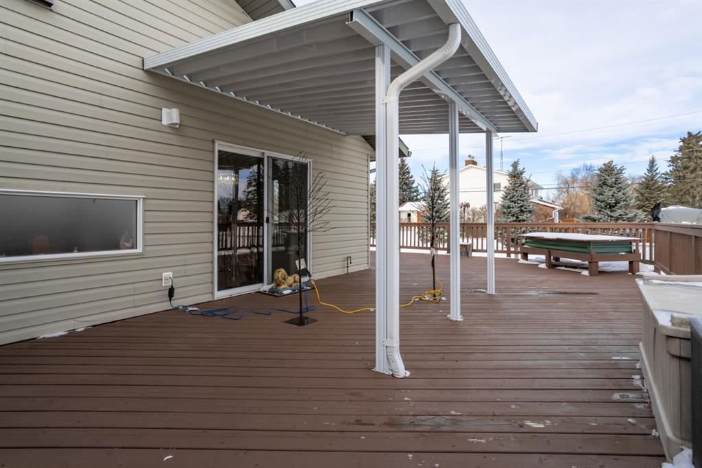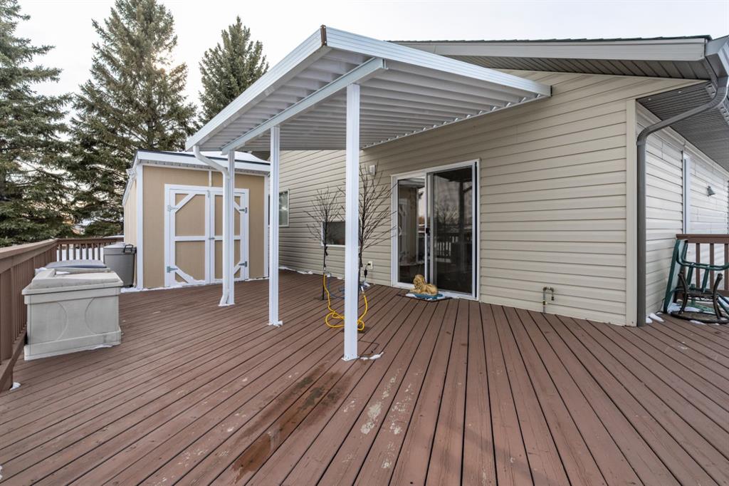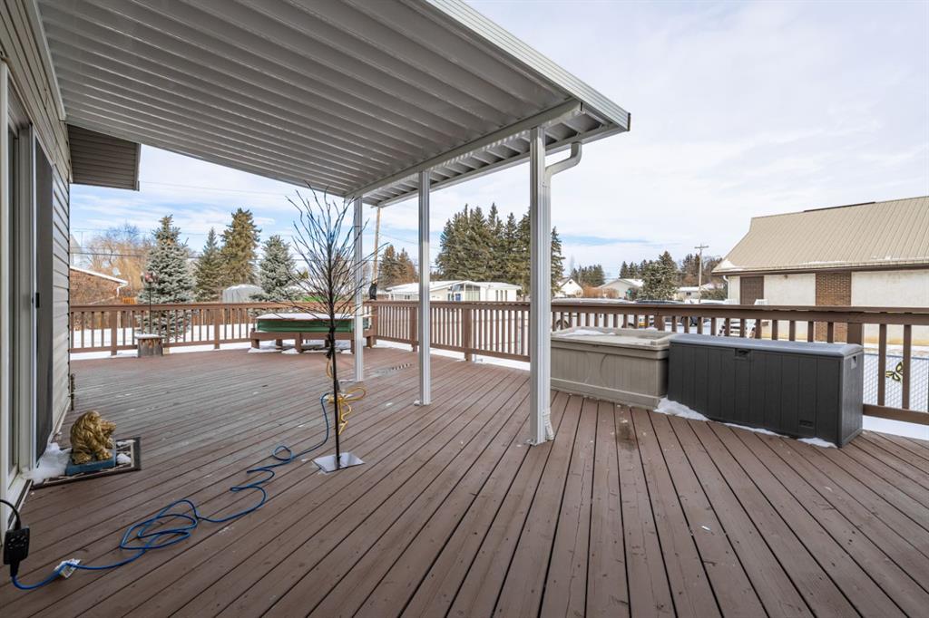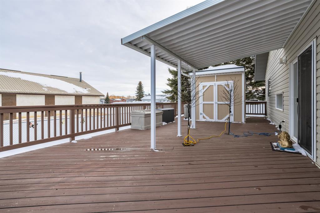 Welcome to this exceptionally well cared for 1,360 sq ft bungalow built in 2007, ideally situated on a quiet street in Daysland on a large corner lot with an east facing backyard. This move-in ready home shows true pride of ownership with extensive 2024 updates including a new furnace, new water softener, new microwave and stove, new kitchen counter and sink, new blinds throughout, updated light fixtures, new toilets, new shed, new fence and gate, and freshly poured concrete and asphalt along the back and sides. Inside, the bright and functional layout features a spacious primary bedroom with walk-in closet and 4-piece ensuite, convenient main floor laundry, a cozy gas fireplace, and thoughtful upgrades including a reverse osmosis water system and permanent exterior trim lighting. The fully finished basement offers a large open family room with newer vinyl plank flooring, two additional bedrooms, and a versatile storage or workout room. Outside, the fully fenced yard is designed for real life with two separate RV parking areas and multiple gated access points for easy access to trailers or recreational toys, plus a large wrap-around deck complete with a metal pergola for added shade that's perfect for relaxing or entertaining. Located close to the school and hospital, this property offers the perfect combination of quiet small-town living, space, and practical upgrades that provide comfort and peace of mind for years to come.