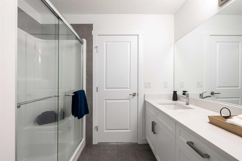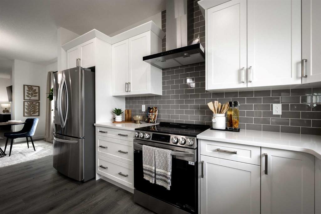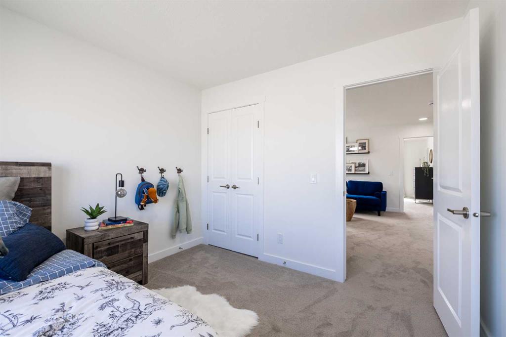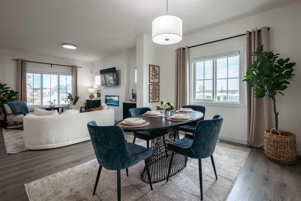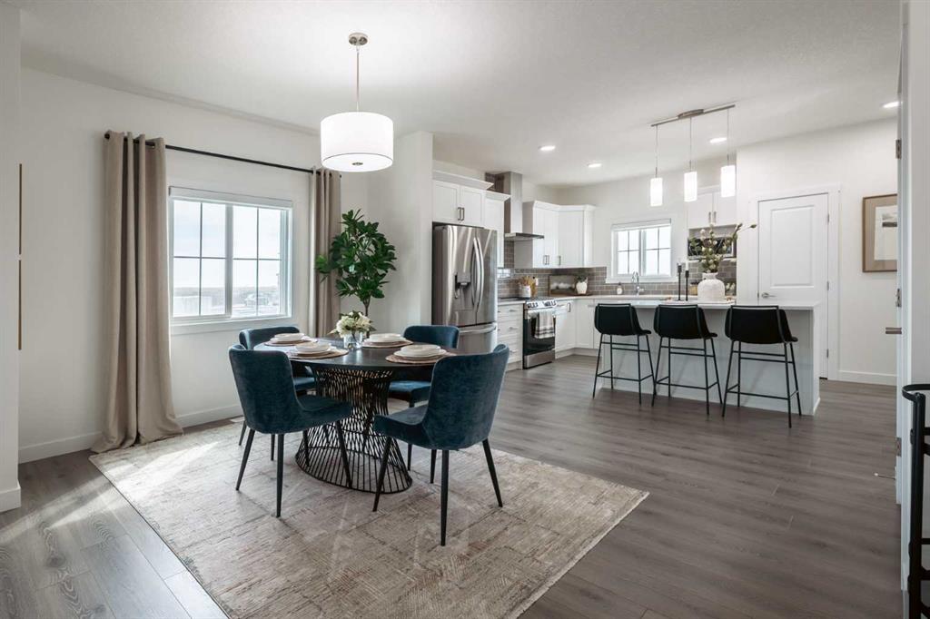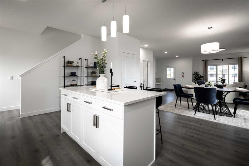 Welcome to the Douglas 22 in Heartland, Cochrane—a thoughtfully designed home offering 1,818 sq ft of stylish, functional living in one of Cochrane’s most family-friendly communities. Surrounded by parks, pathways, and scenic views, Heartland is the perfect place to put down roots. This home features a bright open-concept main floor with 9’ ceilings and beautiful French-imported laminate flooring, creating a warm and cohesive living space. The modern kitchen is finished with quartz countertops, ample cabinetry, and seamless flow into the dining and living areas—ideal for everyday living and entertaining alike. Vinyl tile flooring in all wet bathrooms adds durability and practicality where it matters most. Upstairs, you’ll find three spacious bedrooms, a versatile bonus room perfect for family time or a home office, and the convenience of second-floor laundry. The layout is designed to grow with you, offering both comfort and flexibility for busy households. Additional highlights include a separate side entrance for future potential and a rear parking pad, providing convenient off-street parking. A well-balanced home that blends modern finishes, smart design, and a welcoming community—this is Heartland living at its best. **PICTURES ARE OF SHOW HOME; ACTUAL HOME, FIXTURES, FINISHES, ETC. MAY VARY AND ARE SUBJECT TO AVAILABILITY/CHANGE WITHOUT NOTICE**