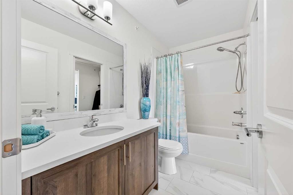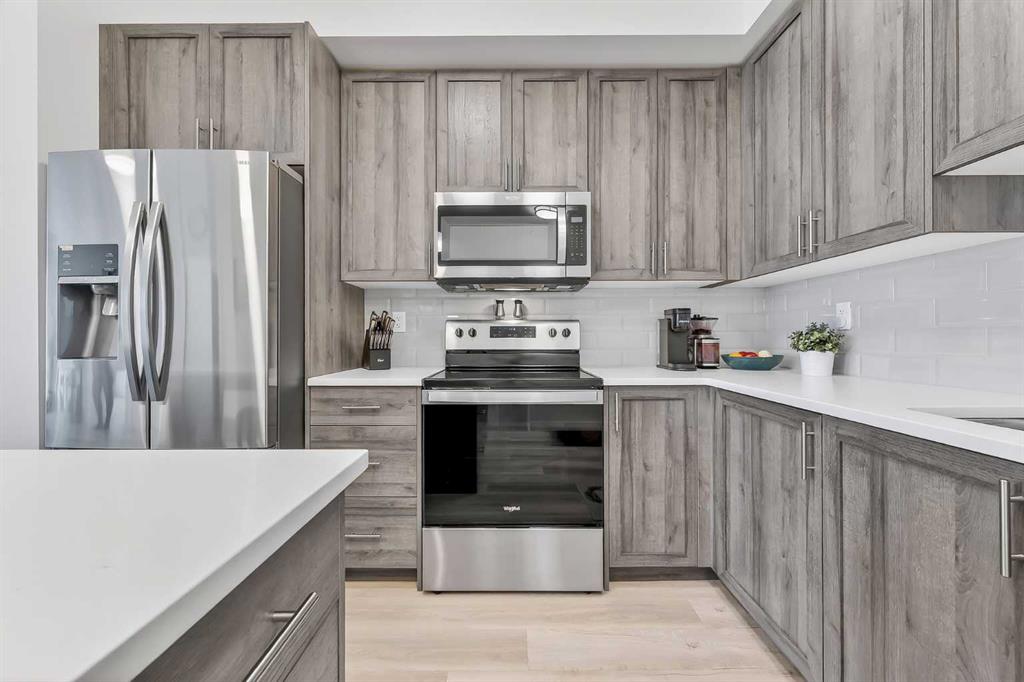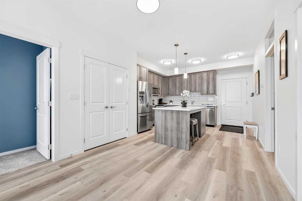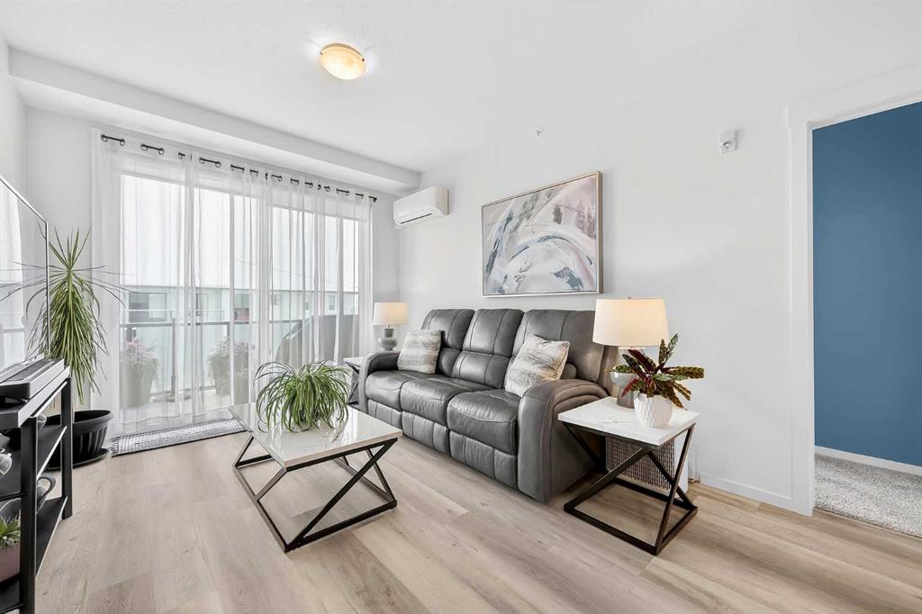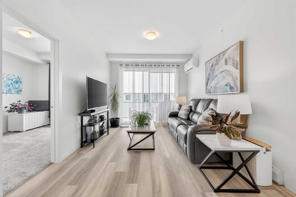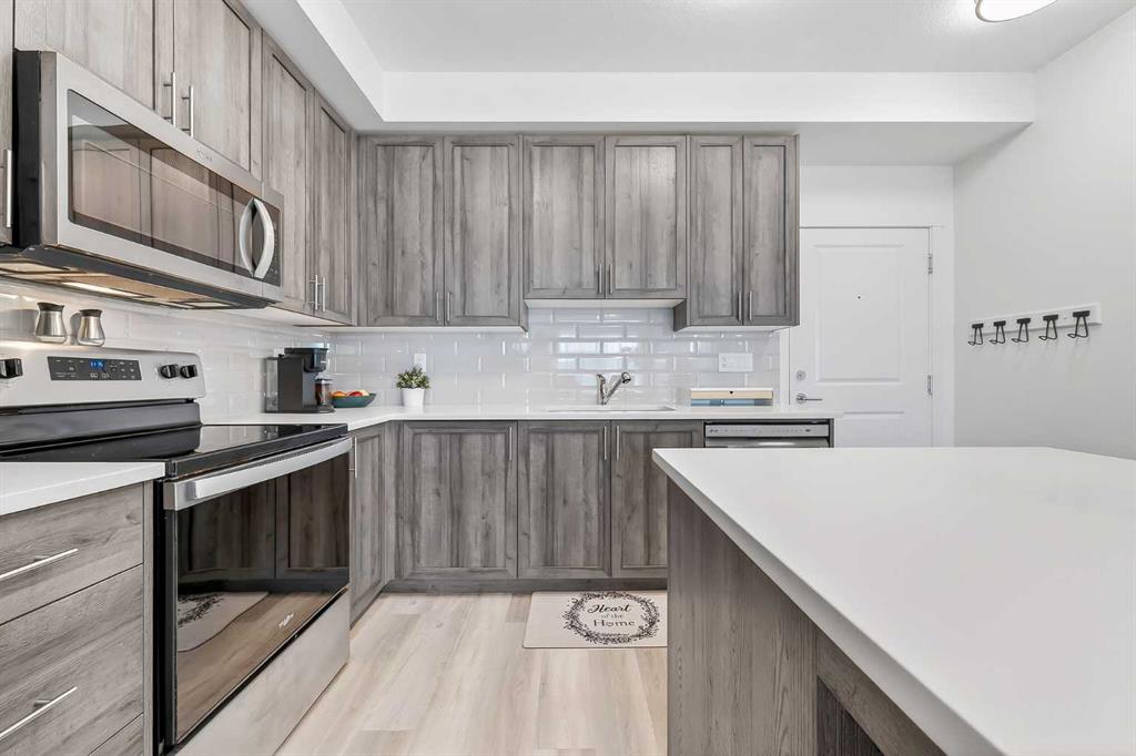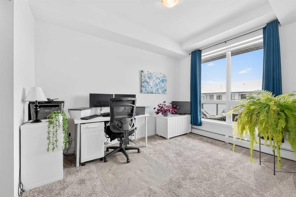 Prepare to be impressed! This stunning 3 bedroom, 2 bathroom, top floor condo offers luxurious living in highly desirable Sage Hill Park II. Step inside and be greeted by soaring 9 ft ceilings and luxury vinyl plank flooring that flows seamlessly through the bright and open main area. The heart of the home is the stunning kitchen, featuring upgraded stainless steel appliances, sleek quartz countertops, ample stylish cabinetry, double pantry, and a large inviting island- perfect for entertaining! The kitchen effortlessly transitions into the sun drenched living room, creating an ideal space for relaxation and gatherings. The patio is nothing short of amazing, it's huge! Enjoy covered outdoor living with 265 ft2 of private space in sunny south exposure. Retreat to the generously sized primary bedroom, complete with a well organized walk-in closet, and private ensuite bathroom. The thoughtfully separated 2nd bedroom is also a great size, and has a walk through closet leading into the 2nd full bathroom. There is even a 3rd bedroom, lots of space for the whole family! Stay comfortable year round with air conditioning in the summer, and keep your car warm in the winter in the heated underground parking. This unit also comes with an additional outdoor parking stall, convenient! Added bonus of a separate storage locker for your extra and seasonal belongings. Beyond the exceptional features of the unit, this complex is in a prime location that sides onto a picturesque pond and endless walking trails- perfect for enjoying the outdoors. You'll also appreciate the close proximity to a variety of shopping and dining options, public transportation, major roadways, and much more! Don't miss the opportunity to make this exceptional condo your own. Call your favorite realtor to book a showing today, you won't be disappointed!