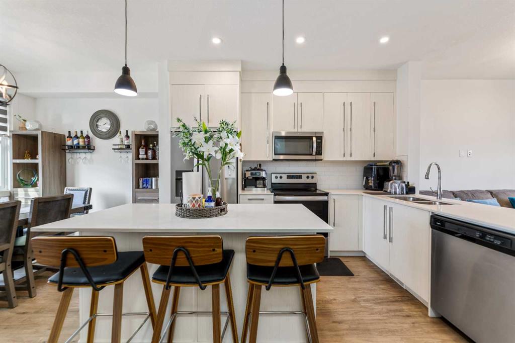 Welcome to this "State-of-the-Art," meticulously maintained home offering about 1,400 sq. ft. of developed living space. The bright & sunny floor plan is designed for modern living, featuring spacious living & dining area that easily accommodates large furniture. The well- allotted kitchen serves as the heart of the home, complete with a central island, abundant cabinetry, ample counter space, and the latest designer stainless-steel appliances. Large windows throughout the house ensure the space is glittered in natural light. Upstairs, 3 generously sized bedrooms & 2 full bathrooms, including a primary bedroom with a walk-in closet and a private 4-piece ensuite bath. For added convenience, the laundry is thoughtfully located on the same level as the bedrooms. Outdoor living is highlighted by an impressive, large private balcony—perfect for hosting guests or relaxing long summer evenings & sunny winter days. This home includes an attached 2-car garage and is ideally located minutes from the Calgary International Airport, schools, ponds, and the amenities of the Cornerstone shopping complex and major trails of the city. Ideally located close to shopping areas & plazas, ponds, schools, playgrounds, banks, Recreational Sports Complex & popular restaurants. Minutes away from Calgary international Airport. This property offers outstanding convenience for everyday living. An ideal opportunity for first-time home buyers with young kids or elderly individuals enjoying their golden years of life & investors seeking a well-kept home in a good location. Book your viewing today! Come on in and experience yourself, “WARM WELCOME”!!!!