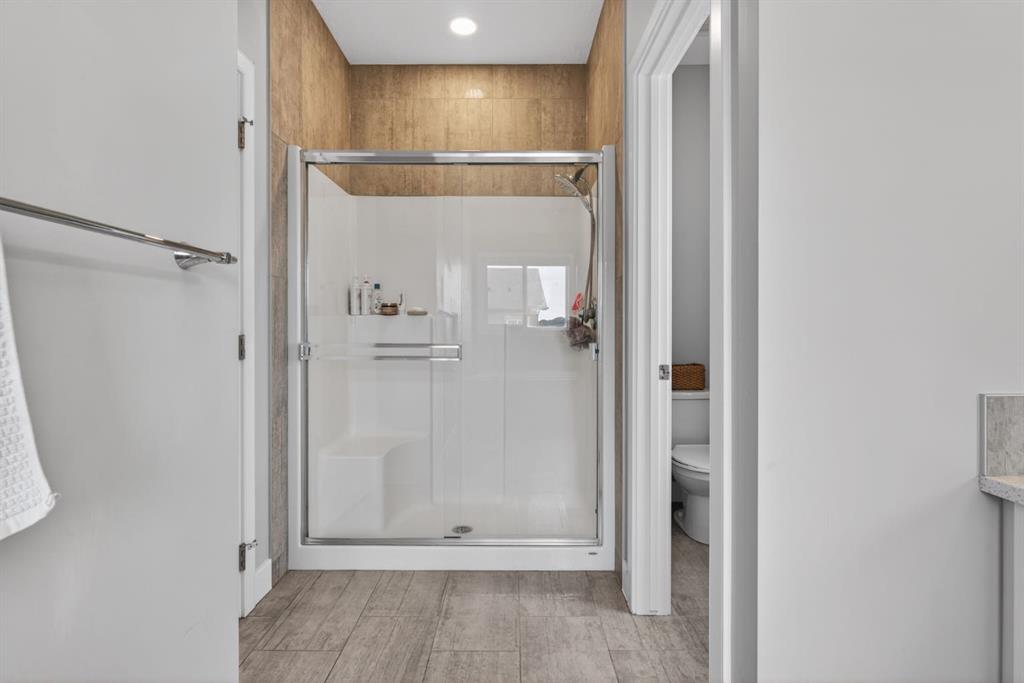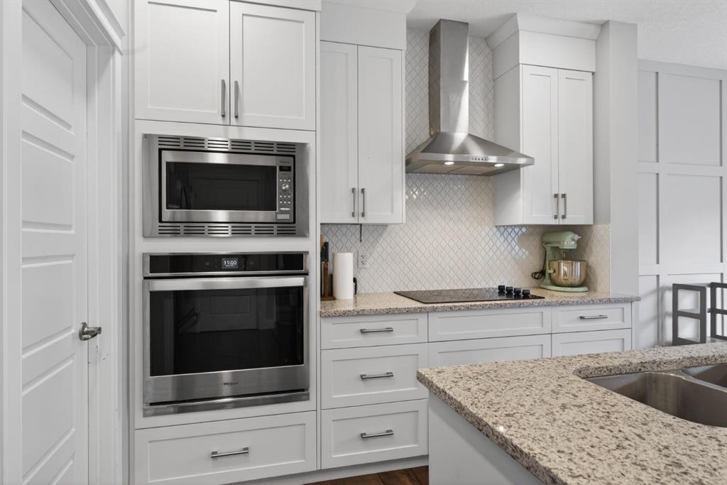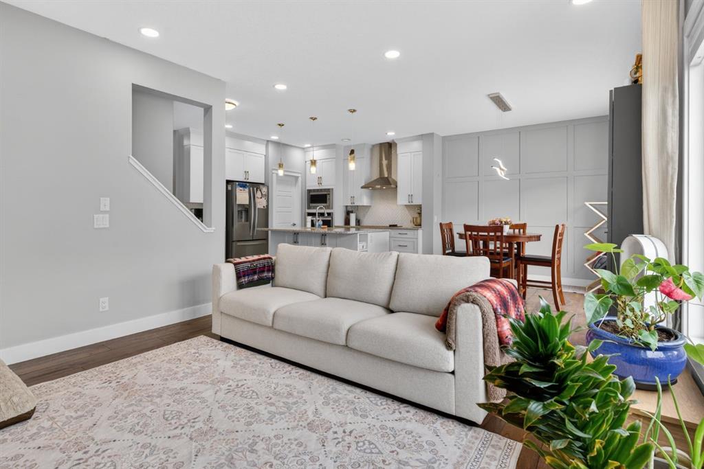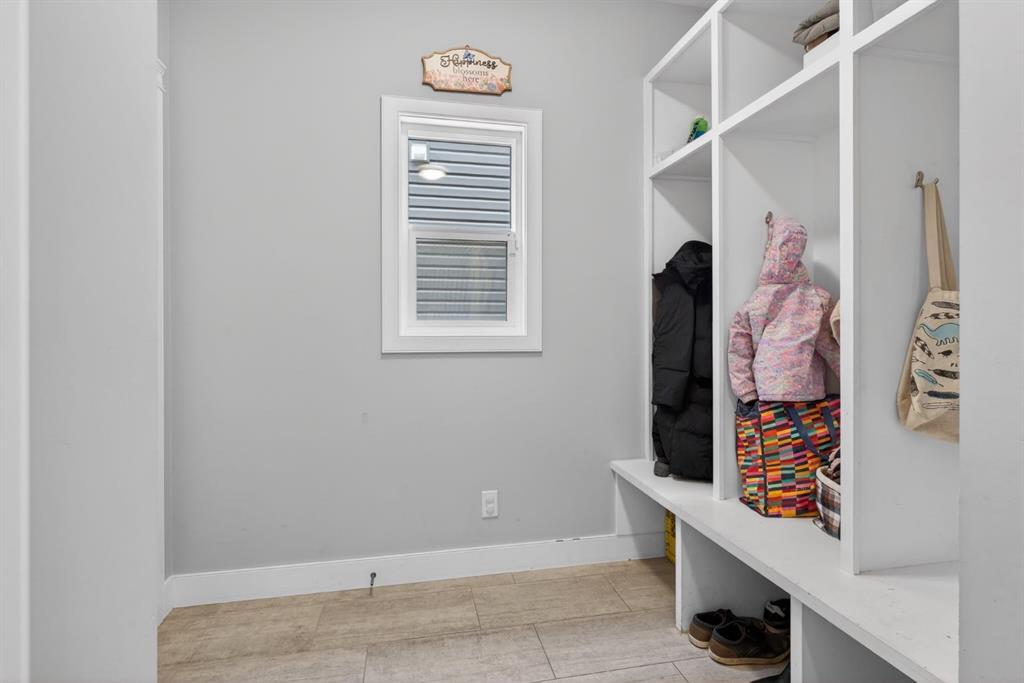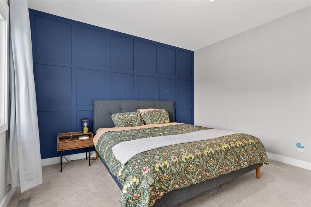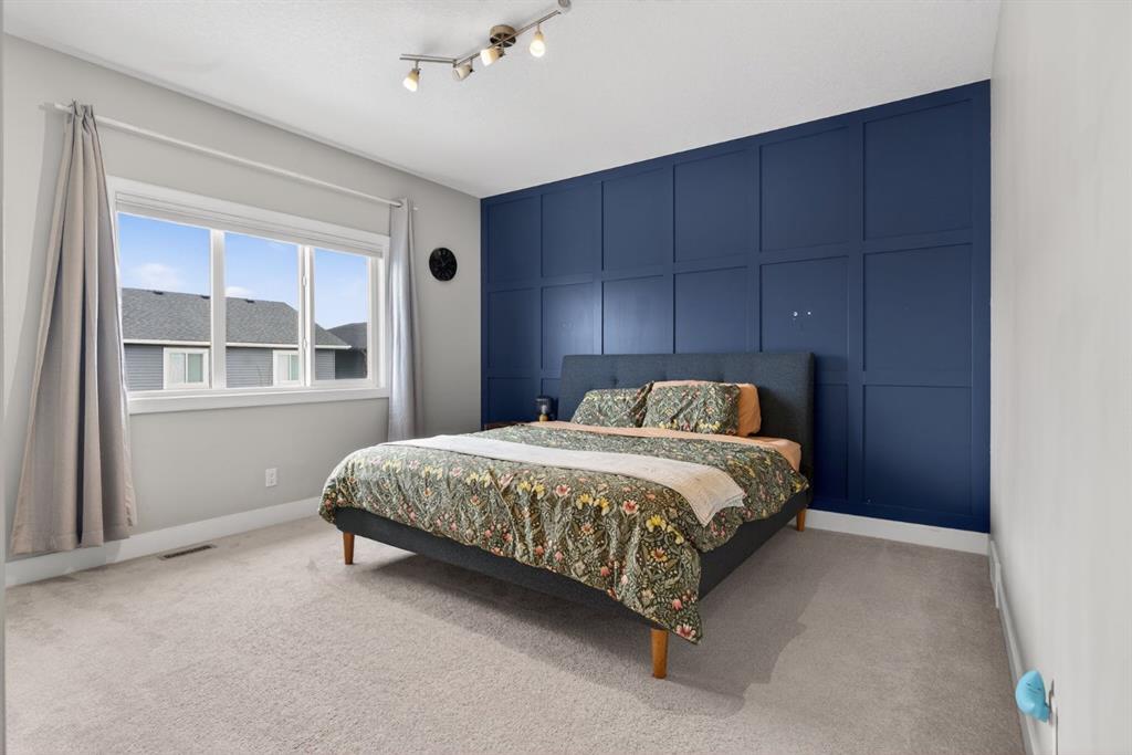 Welcome to this beautifully upgraded home offering 2,331 sq. ft. of refined living space, complete with a double-car garage, four upper-level bedrooms, a versatile main-floor office, and a fully landscaped, fenced yard. Situated on a quiet no-through street, the property showcases a distinctive exterior and high-end interior finishes throughout, including air conditioning. The home features white shaker-style kitchen cabinetry, quartz countertops, and a large central island. Premium built-in stainless steel appliances and a walk-in pantry complete this gourmet kitchen. The open-concept family room is ideal for entertaining family and friends, while the dining area opens onto a raised deck overlooking a beautifully finished yard with a striking fence. The bright living room offers an oversized window and a cozy, child-safe ledgestone fireplace with cool-to-the-touch glass. Durable hand-scraped laminate flooring runs throughout the main floor — perfect for busy households. A standout feature is the enclosed main-floor office with etched-glass French doors, providing a private workspace. A tiled mudroom off the garage adds practical storage, including a full closet for organized family living. Upstairs, four spacious bedrooms with 9-foot ceilings are complemented by a central bonus room with vaulted ceilings — an ideal secondary living space. The 5-piece main bathroom includes dual sinks and a tub/shower combination. The secluded primary bedroom features a designer feature wall, walk-in closet, and a spa-inspired ensuite with a 6-foot soaker tub, separate shower, and dual quartz vanities. The open basement offers excellent potential, providing ample room for storage, a home gym, or a play area for the kids.