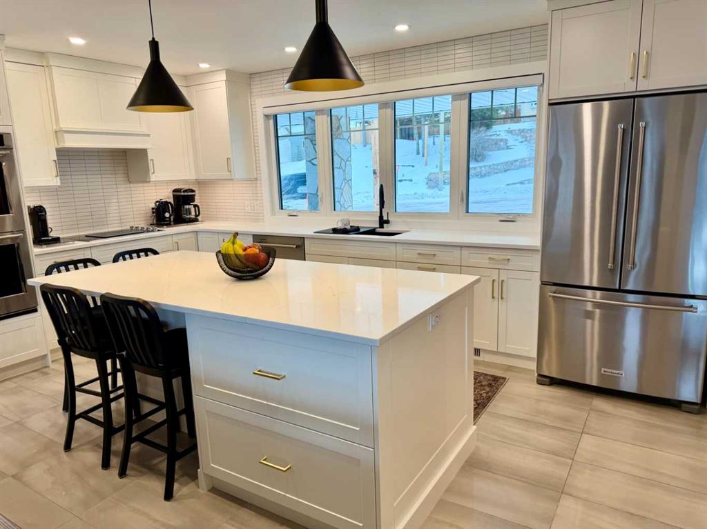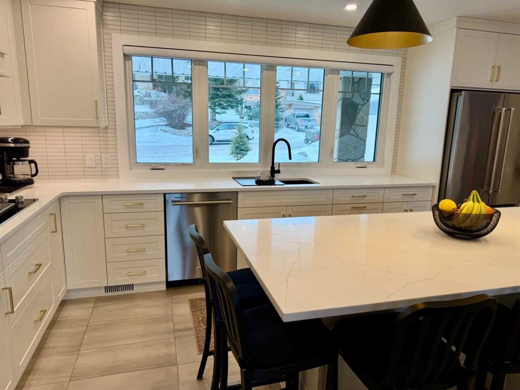 Location at its best, welcome to this S.E. Blairmore home in the Crowsnest Pass. This home has outstanding value, along with unsurpassed views of Crowsnest Mountain. Nestled on a corner lot in a desirable neighbourhood, just a block away from hiking trails. Extensively updated throughout, this low maintenance home showcases quality craftsmanship and thoughtful upgrades at every turn. The stunning kitchen features custom cabinets by Adora, quartz countertops, dual wall oven, and premium finishes. Recent improvements also include interior and exterior painting (2025), Jeld-wen doors and triple glazed windows, Hunter Douglas blinds (livingroom remote controlled), renovated bathrooms, recessed lighting, and two cozy fireplaces. Enjoy the convenience of abundant storage, fully developed walk-out basement, updated fascia and soffits, leaf filter gutter protection, newer furnace and (hot water tank 2025), central air conditioning (2023), and water softener (2023). This home must be viewed to appreciate the extensive renovations. The home is framed by beautifully updated landscaping creating a welcoming first impression and low maintenance outdoor living. The double attached garage and additional off-street parking complete the package.
