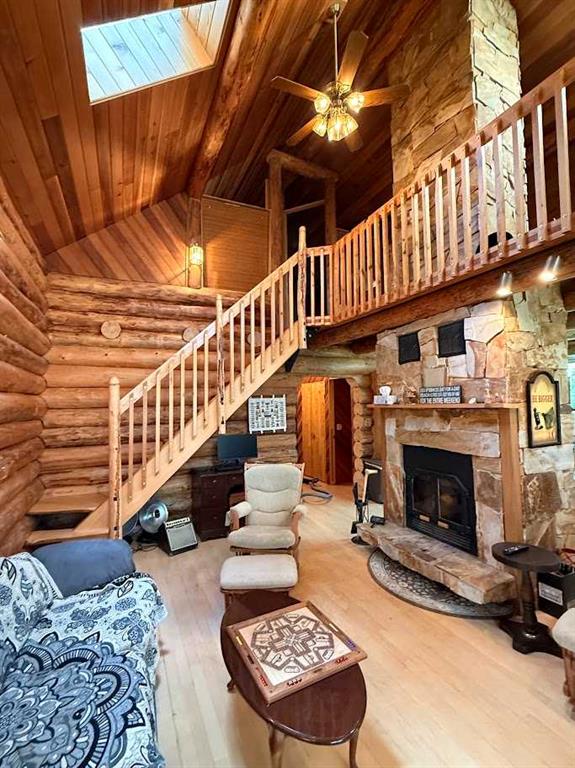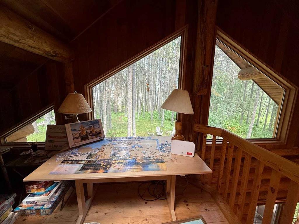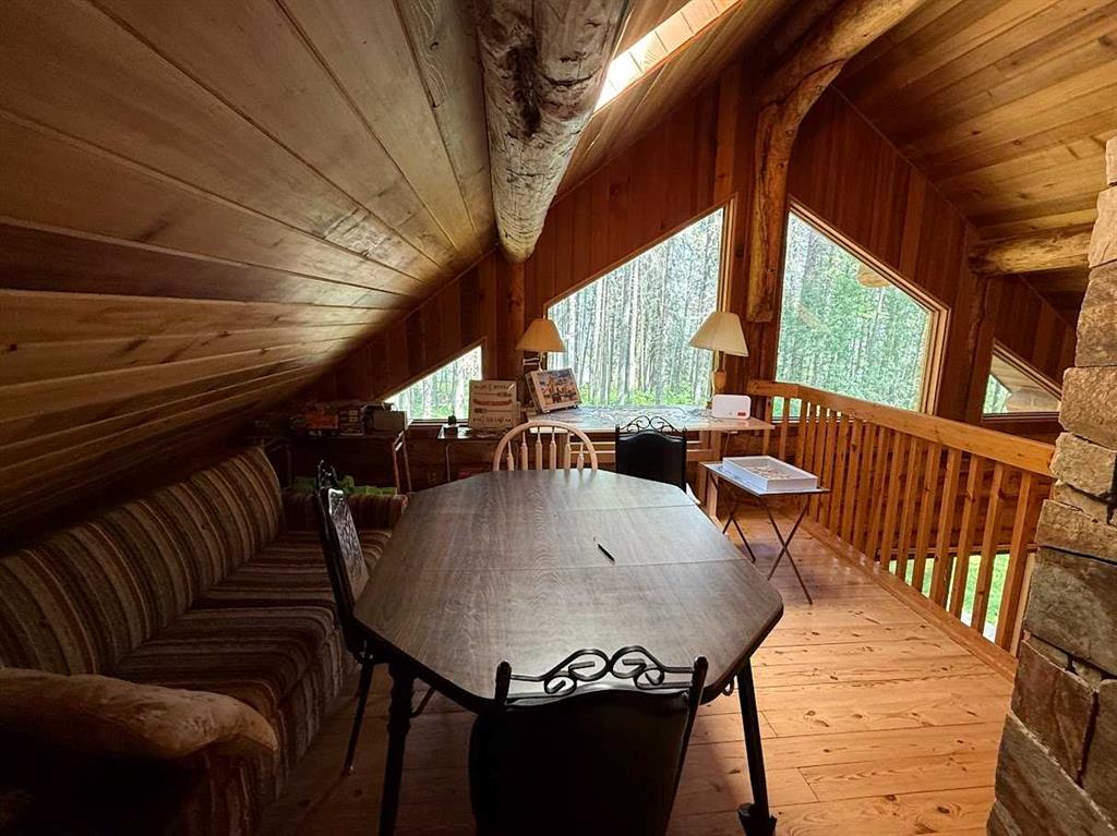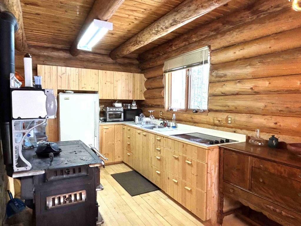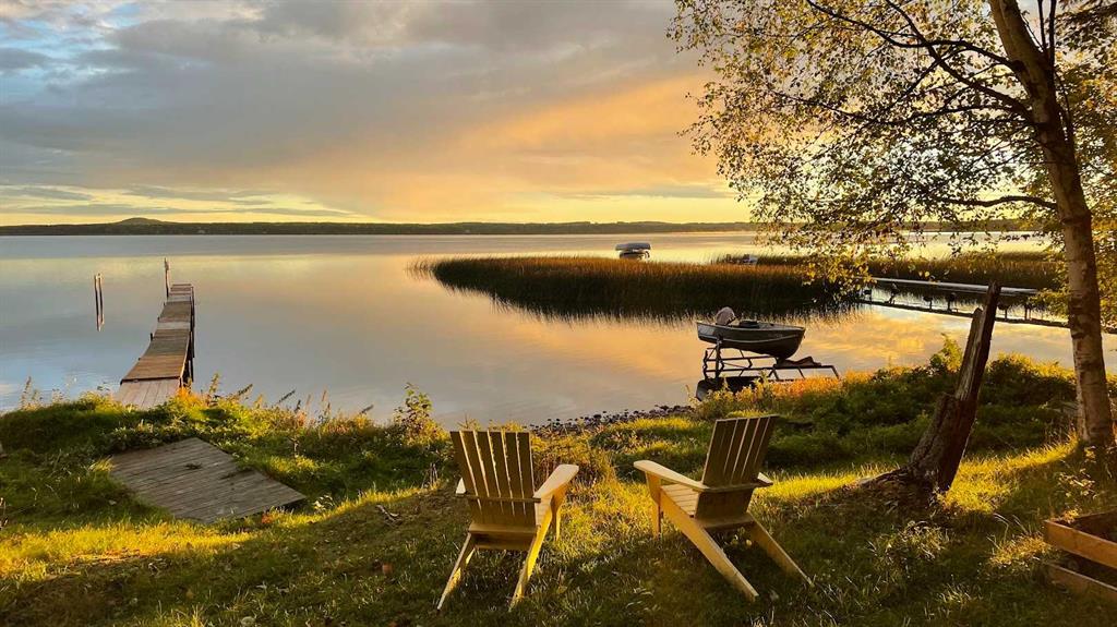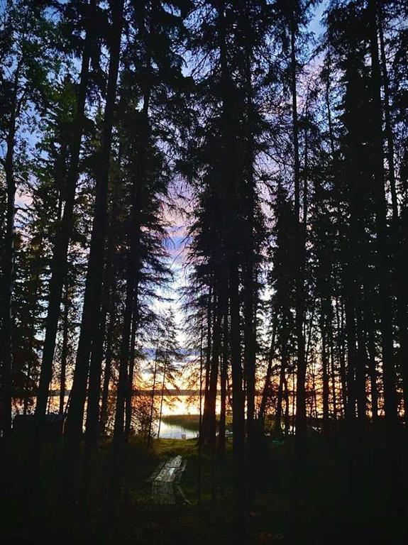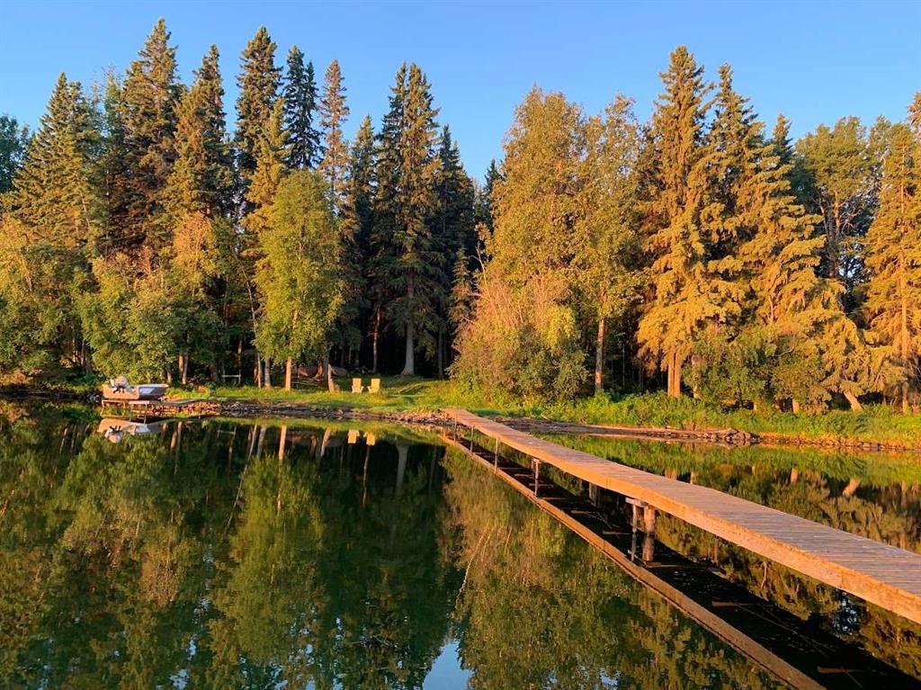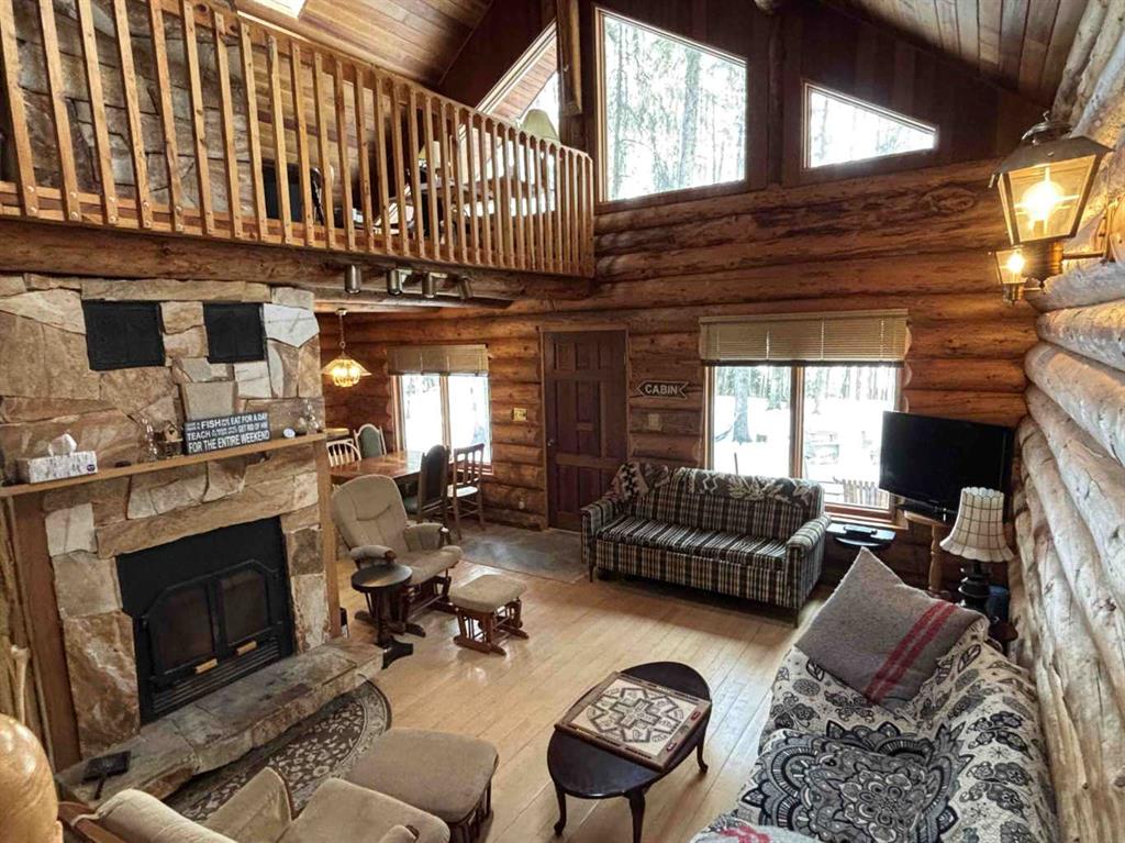 Tucked among the towering spruce on a scenic half-acre lot, this lakefront log cabin offers the perfect blend of rustic charm and peaceful privacy. The inviting cabin features a stone-faced wood-burning fireplace that provides natural warmth, complemented by two wall-mounted gravity furnaces. The kitchen, highlighted by a classic “Happy Thought” wood cook stove, is perfect for preparing meals the old-fashioned way or choose the microwave and countertop stove for modern ease. Inside, you’ll appreciate beech flooring, pine cabinetry, and generous lakeside windows that flood the home with natural light. The primary bedroom and 3-piece bath, are on the main floor with the loft offering two additional bedrooms plus an open bonus area, ideal for extra sleeping space or a games area. Furniture, household goods, shed, boat lift and 112 ft. dock are included. Adjacent lot #21, MLS#E4475321, is also available for sale providing a rare opportunity to own over 1 acre of lakefront property in Buck Lake Estates.