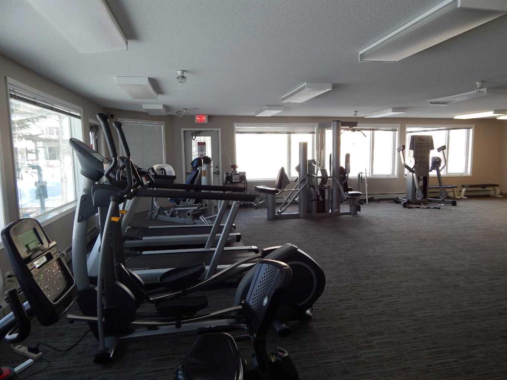From starter home to forever home or a place to lay your head, a unit like this provides you with peace of mind. A quiet secured community complex for owners to investors, this unit features low-maintenance living with an array of on-site amenities. These include a social room with a pool table, table tennis, and a small library, a fitness area with a sauna, and an underground vehicle wash bay. This one-bedroom, one-bathroom unit, complete with a den, provides comfort and convenience with an in-suite, stackable washer and dryer. The versatile den can be adapted for various uses, such as working from home, gaming, or online activities. The open-concept kitchen, dining, and living area are perfect for hosting small gatherings, family meals, or game nights. As an added benefit, a gas BBQ is available on the balcony. Bathroom opens to the primary bedroom through a sliding door, no need to walk into the living area. Basement storage cage is assigned to the unit. Condo fees include all utilities. A park is west of the building , the Collicutt Recreation Centre is with in walking distance or a very short car ride.