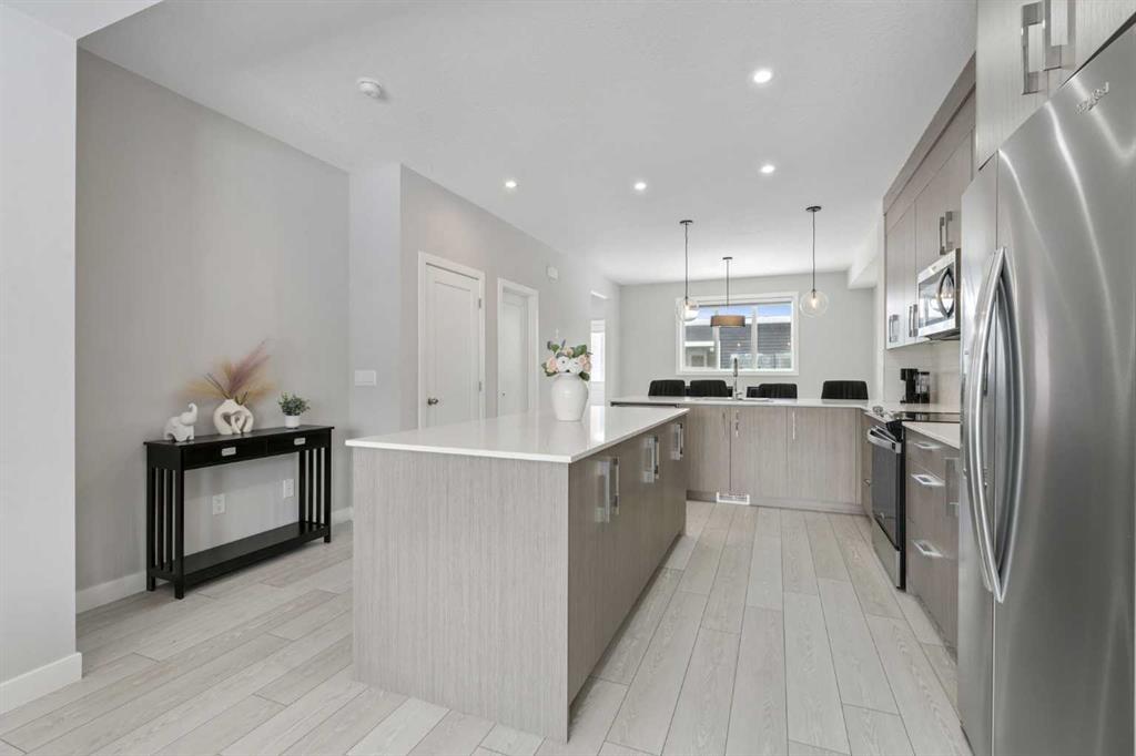 Welcome to this exceptional duplex, essentially brand new and never lived in, having only been utilized for short-term Airbnb rentals over the past year. Enjoy a fantastic main floor layout featuring ample counter space and a dual island, perfect for entertaining, complemented by elegant finishes such as recessed ceilings and luxurious quartz countertops. The upper floor boasts a rare bonus room, a spacious primary bedroom with a 4-piece ensuite and a generous walk-in closet, plus two additional bedrooms that offer versatile options for use—ideal as children's rooms, home offices, or creative workspaces—along with an additional 4-piece bathroom. The unfinished basement, featuring a separate entrance and zoned for potential revenue generation, can be transformed into a rental suite subject to approval and permitting by the city/municipality, multi-generational living space, or additional living area. The property includes a double detached garage. It is conveniently located with equal access to Chestermere and Calgary, as well as East Hills. Once completed, the community will feature a 15-acre eco-reserve with natural wetlands, 5 km of pathways, 4 modern playgrounds, and multi-use playfields—all within walking distance to schools, retail shops, and commercial spaces. Don’t miss out on this unique opportunity to own a versatile and beautifully designed home in a thriving community!