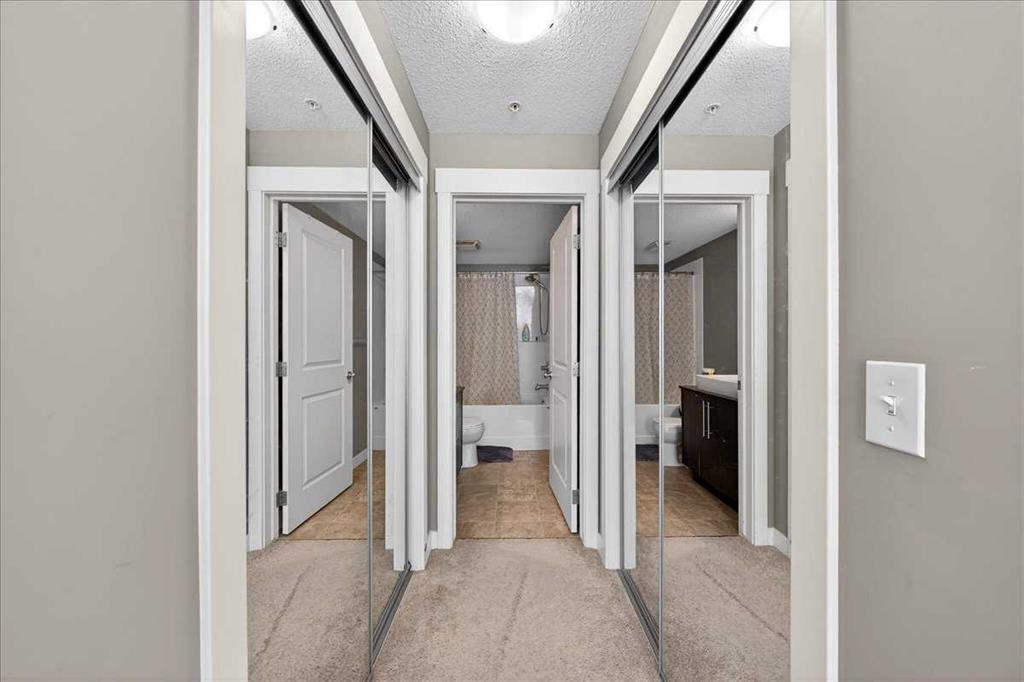 VERY NEAT AND CLEAN 2 BEDROOMS 2 FULL BATHS AND 2 TITLED PARKING[VERY RARE FIND] STALLS IN THE DESIRABLE COMMUNITY OF SKYVIEW RANCH.WONDERFULLY FUNCTIONAL LAYOUT WITH NEW STONE COUNTER TOPS WITH EATING BAR,OVERLOOKING THE LIVING ROOM WITH SUNNY SOUTH FACING VIEWS. THERE IS INSUITE LAUNDRY AND FULL STORAGE ROOM.BOTH BEDROOMS ARE GOOD SIZE,MASTER WITH HIS AND HER WALKTHROUGH CLOSET TO A PRIVATE EN-SUITE BATHROOM.2 TITLED OUTSIDE PARKING STALLS ARE INCLUDED WITH THIS UNIT[STALLS 14 AND 46].CLOSE TO ALL THE AMENITIES,LIKE BUS,SCHOOL,SHOPPING AND STONY TRAIL..VERY EASY TO SHOW,QUICK POSSESSION AVAILABLE..VACANT SHOW ANY TIME.