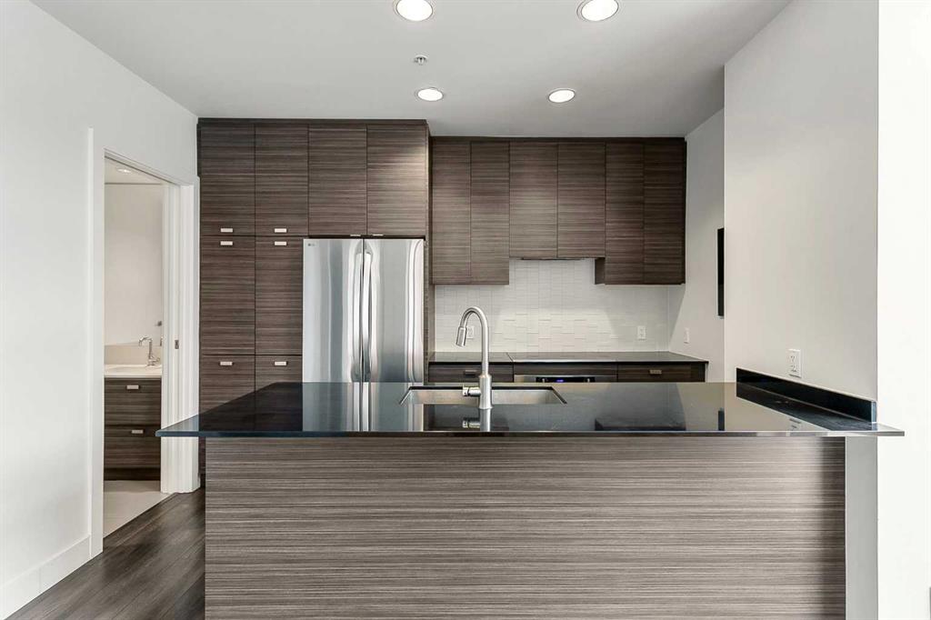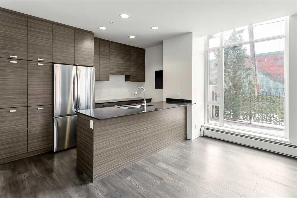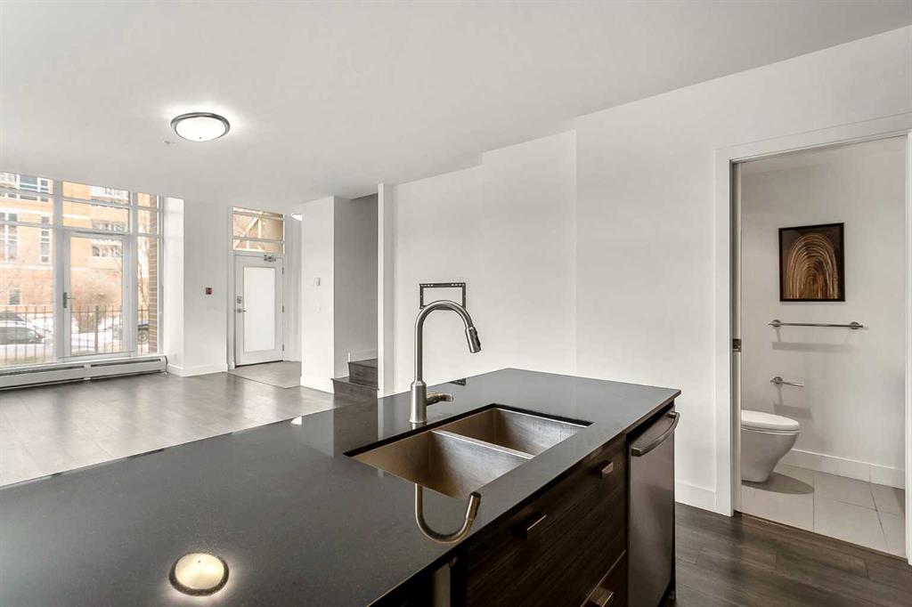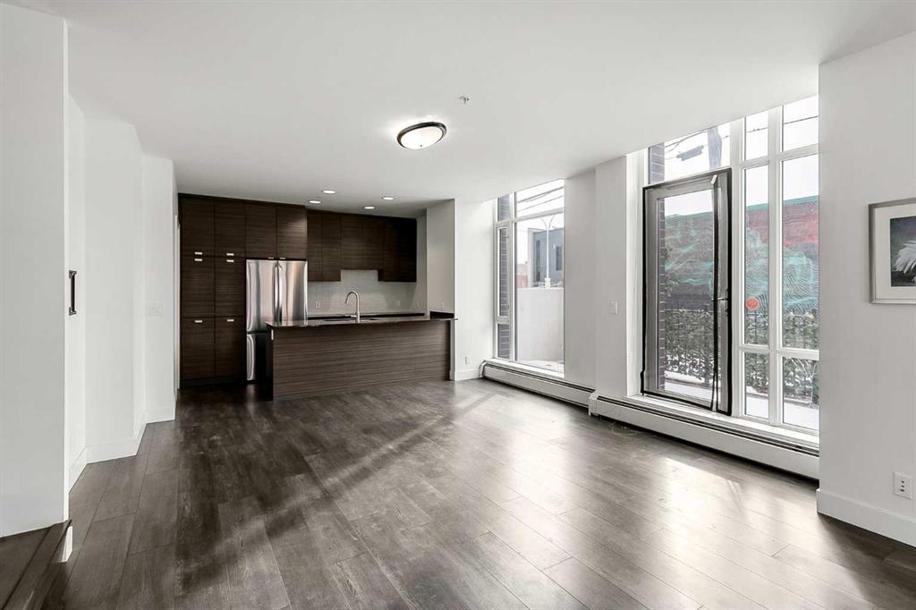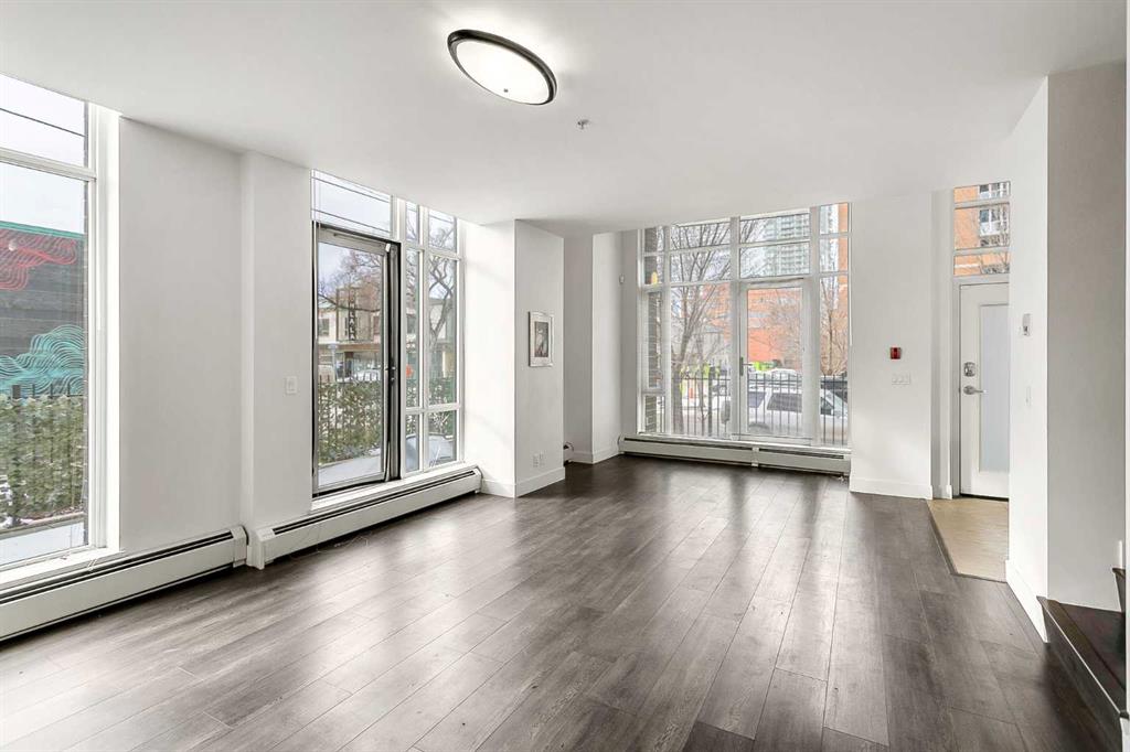 Location truly doesn’t get better than this in the Beltline! Just one block off 17th Avenue and steps to Mount Royal Village, this stunning two-storey townhome in the Drake is everything you are looking for. Situated on the main floor with its own private street-facing entrance off 7th Street, this home offers the perfect blend of urban convenience and modern comfort. Imagine starting your day with a latte from Analog Coffee just steps away, then coming home to enjoy sunny summer evenings on one of two southwest-facing balconies. Ideal for entertaining guests or relaxing with a cocktail. Step inside to a spacious open-concept main floor flooded with natural light through dramatic floor-to-ceiling windows. Soaring high ceilings enhance the bright, airy feel. The contemporary kitchen is a showstopper, featuring stainless steel appliances, full-height cabinetry, sleek dark quartz countertops, light tile backsplash, and a generous island with seating for four. Wide plank flooring, modern carpentry details, bright walls, and a stylish powder room complete the sophisticated main level. Upstairs, you’ll find two generously sized bedrooms, each with its own ensuite (3-piece and 5-piece), plus convenient upper-floor laundry. Large south and west-facing windows continue the theme of abundant natural light, and the primary bedroom offers a private balcony retreat. An interior hallway provides quick access to the unit’s private storage room. Additional features include titled underground parking and an unbeatable walkable lifestyle. Just steps from 17th Avenue’s best dining, shopping, and entertainment. The location is impressive for anyone seeking the perfect balance of social energy and everyday convenience. Book your private showing today and experience Beltline living at its finest.