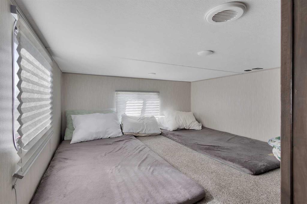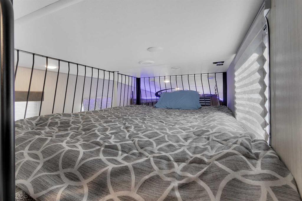 looking for a getaway that’s equal parts cozy retreat and family adventure basecamp? This recreational lot in the gated, family-friendly community of DeGraff’s Resort at Gull Lake has everything you need to make lake life easy and fun. Included is a 2021 Destination Trailer, 42 feet long with 124x42 sq ft of living space, that feels more like a stylish tiny home than a camper. Step inside this and find a private bedroom and two cozy lofts, along with a full three-piece bath for comfort after a day outdoors. The inviting living room features an electric fireplace with a mantle and TV above, perfect for relaxing evenings. A stylish kitchen offers laminate counters, a convenient breakfast bar, and a charming nook for a small dining table framed by large windows that fill the space with natural light.