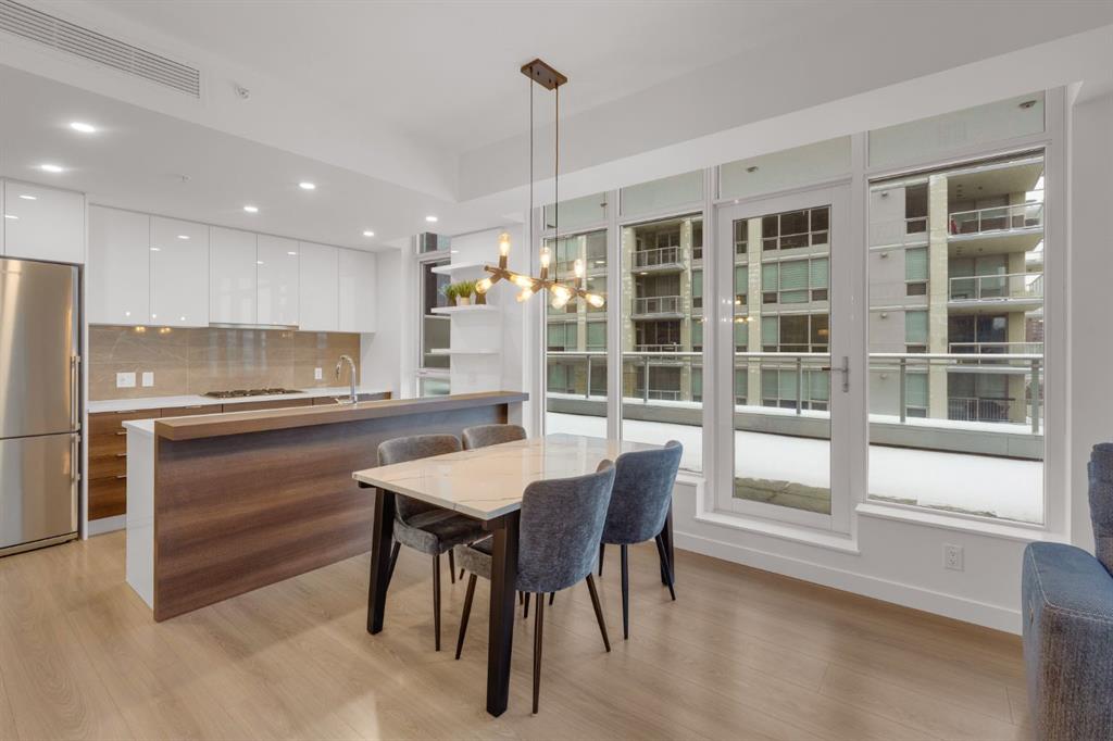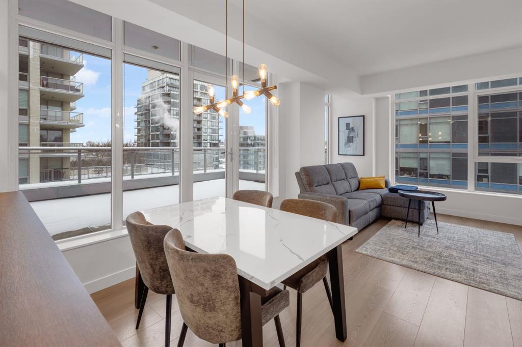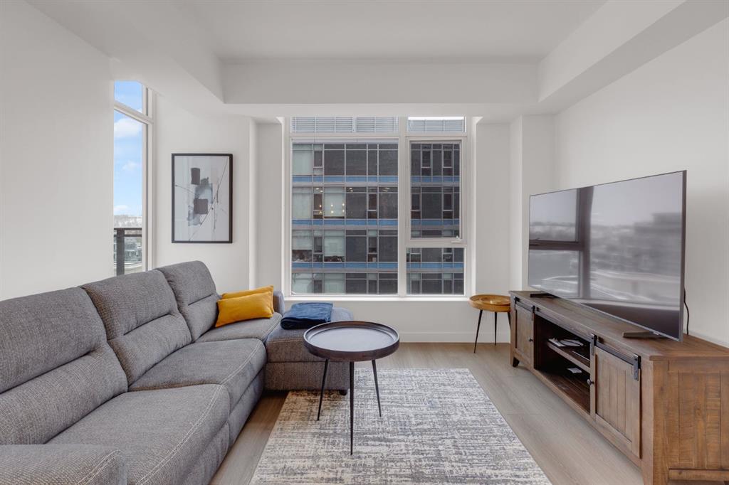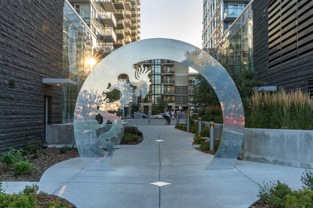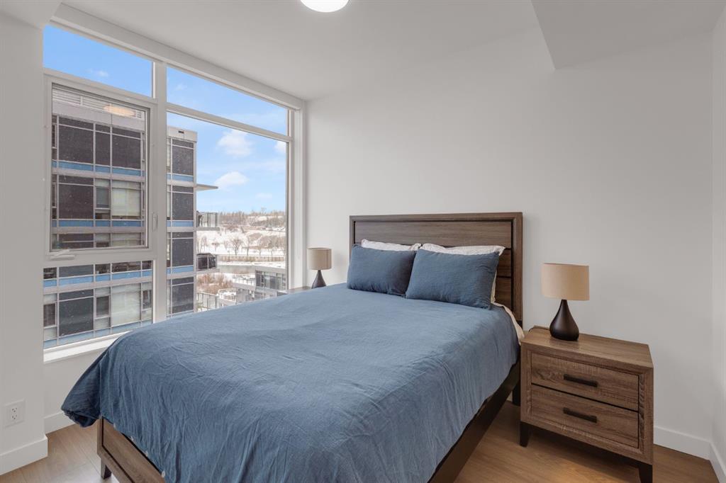 URBAN BACKYARD Unit 803 offers a lifestyle rarely found in high-rise living: an expansive 458 sq. ft. private terrace that effectively increases living space by over 50%. This “backyard” in the heart of Eau Claire is equipped with both water and gas hookups— convenient for entertaining and urban gardening. THE RESIDENCE This northwest corner suite is presented in pristine condition with partial views of the Bow River Valley. The thoughtful floor plan features bedrooms at opposite ends of the unit for maximum privacy—ideal for guests or a quiet home office. The kitchen features a premium appliance package, including Miele, Fulgor, and Blomberg, accented by quartz counters. Strategic upgrades include integrated LED lighting and a smart lock. THIS BUILDING’S ADVANTAGE Located in Parkside 2B, this unit offers an exceptional level of convenience. Only steps from the Bow River pathways, it balances tranquillity with downtown living. Parkside 2B is the only building in the development where the premier amenities—concierge, gym, yoga/spin studio, hot tub, steam room, and party room—are accessible just an elevator ride away. A guest suite is available for visitors, while a heated underground parking stall, oversized storage locker, car wash bay, and bicycle storage room complete this executive-level offering.