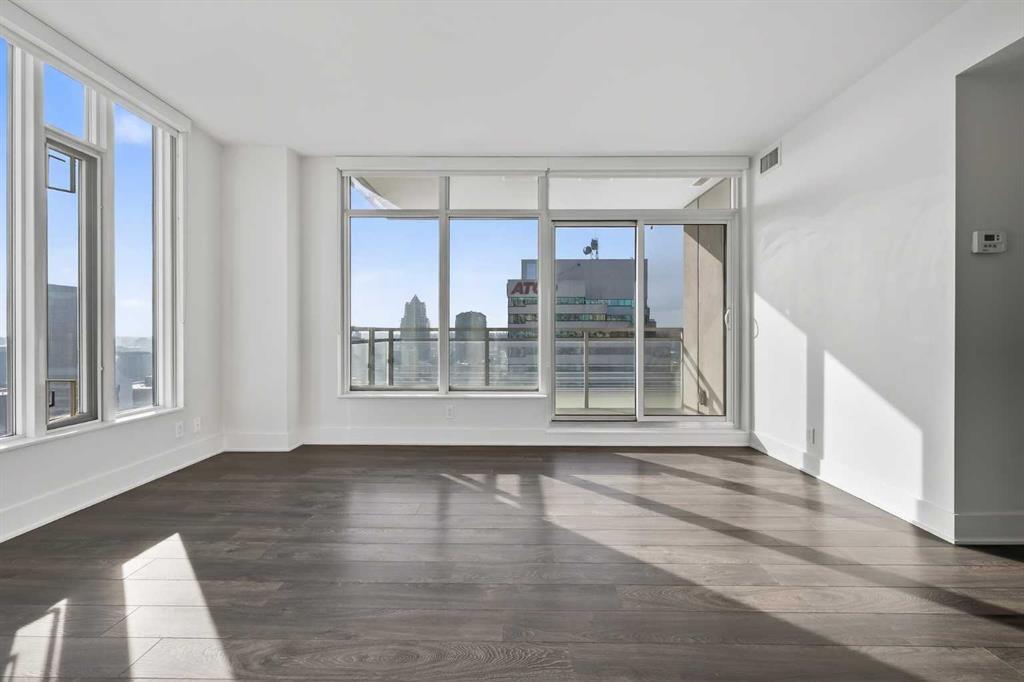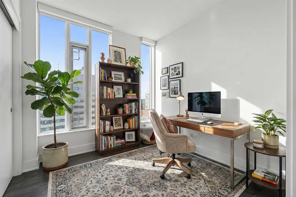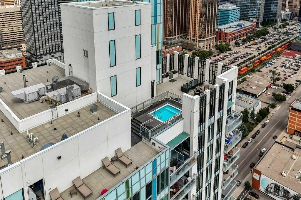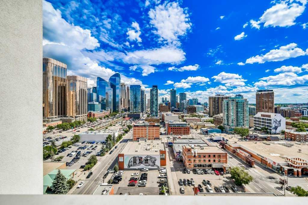 Perched high on the 17th floor of iconic MARK on 10th this spacious 740 sq ft condo has floor-to-ceiling windows with sweeping downtown views. Two bedrooms situated on opposite sides of the main living areas allows for maximum privacy making this layout ideal for shared living or for a dedicated home office. An open living/dining area with covered balcony facing SE is perfect for relaxed evenings. The sleek kitchen features a gas range, built-in stainless steel appliances and a paneled refrigerator. The guest bedroom/office offers great views and easy access to the main 4-piece bathroom while the primary bedroom enjoys it's own 3-piece ensuite. Additional features include in-suite laundry and central air conditioning. Includes 1 titled heated underground parking stall and assigned storage locker. Pet-friendly building and monthly condo fees of $645.57/month include heat, water & sewer. MARK on 10th is known for it's amazing amenities including concierge service, a fully equipped gym, sauna & steam room, resident lounge with kitchen and pool table and a stunning rooftop oasis with hot tub, barbecues, and lounge areas surrounded by panoramic views. Located just steps from transit, Safeway, Community Natural Foods, parks and Calgary’s premier dining and nightlife destinations.