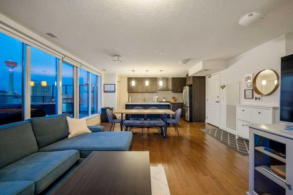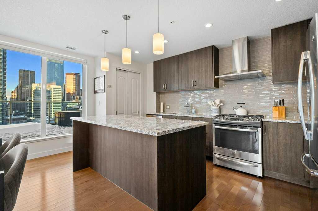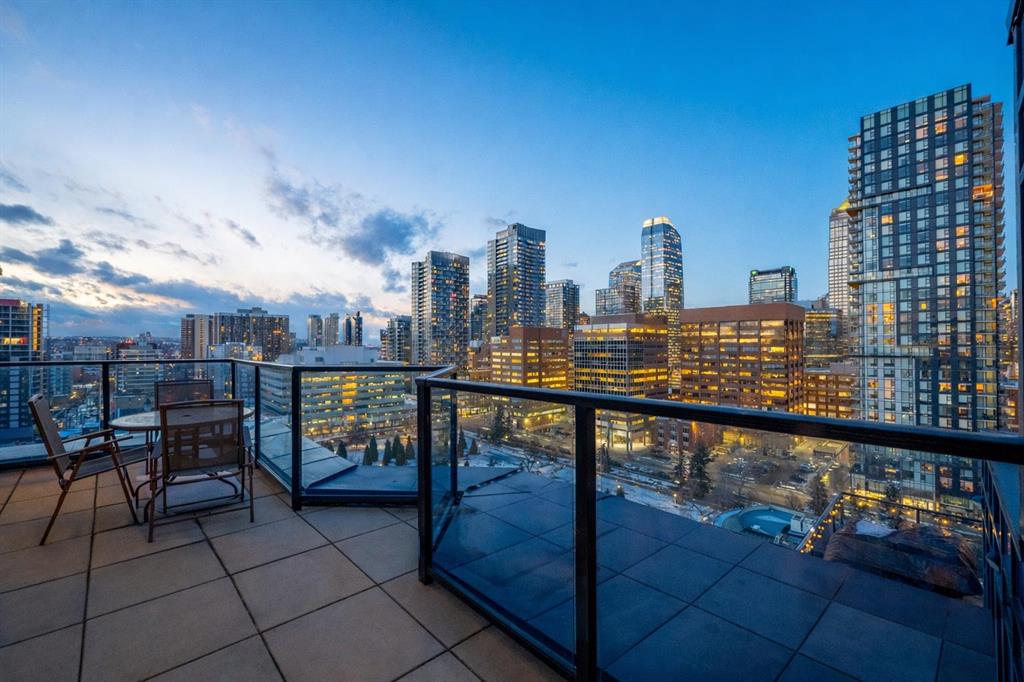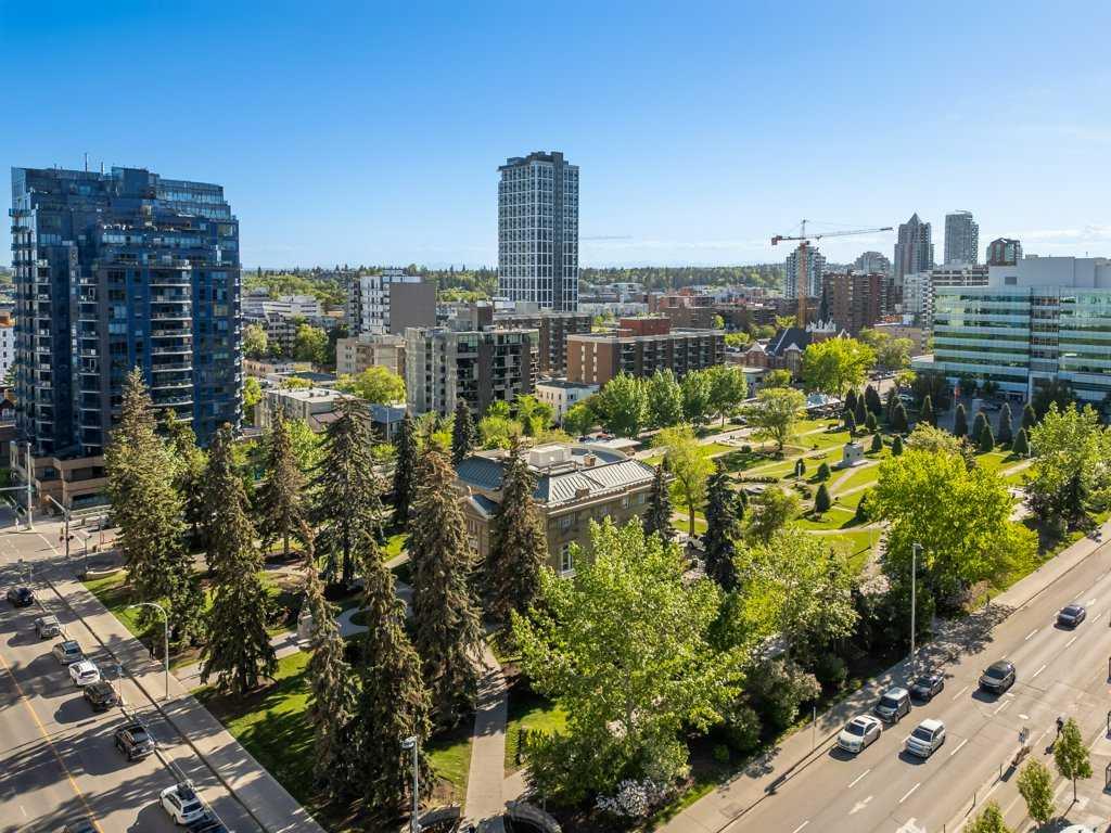 Your front-row seats to the Calgary skyline. A Penthouse feel - without the Penthouse price. Enjoy 2 bedrooms + 2 bathrooms + 2 terraces while overlooking 1 incredible view. From the moment you walk in, the energy is undeniable. Expansive windows flood the open-concept space with natural light while the city becomes your everyday backdrop. The kitchen delivers both style and function: granite counters, stainless steel appliances, gas range, rich espresso cabinetry, pantry storage and a central island designed for gathering. The living room? Equally suited for movie nights or simply watching the lights of downtown come alive - you may find the skyline steals the show. Once you step outside, everything changes. Nearly 500 sqft of outdoor space unfolds across two oversized terraces - a true rarity in urban living. One is perfectly positioned off the primary suite for quiet morning coffee. The other becomes your summer headquarters - entertaining under the glow of Calgary’s most iconic buildings with friends, laughter and evenings that stretch into the night. The best part about the view? Protected. With Central Memorial Park below, this isn’t just beautiful, it secures long-term value. Back inside, the generous primary retreat features a walk-in closet and spa-inspired 5-piece ensuite, while the second bedroom and adjacent full bath create ideal flexibility for guests or those who work from home. The lifestyle perks continue with an underground parking stall, two storage lockers, onsite concierge, fitness facility, guest suite, community garden + shared terrace, visitor parking with EV charging and loading dock convenience. All positioned in one of Calgary’s most walkable locations - steps to restaurants, cocktail bars, pubs, downtown offices, C-Train access, Stampede grounds and the future arena district. This isn't just a condo - it's a perspective upgrade. Live differently. Live above the city.