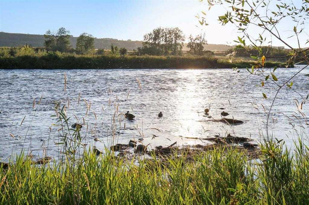 Discover refined living at this bright and beautifully maintained NW corner unit in Riverstone Manor offering over 1,040 sq ft of intelligently designed living space and one of the most private positions in the entire building. With only one shared wall and expansive windows wrapping the corner, natural light pours in throughout the day, creating an airy, refined atmosphere that feels more like a bungalow than a condo. Featuring 2 generous bedrooms, 2 full bathrooms, and a full sized laundry room, the layout is exceptionally functional, with thoughtful separation between the bedrooms for optimal privacy. The inviting foyer opens into a spacious open concept great room anchored by walls of windows. The living and dining areas offer flexibility for entertaining, quiet evenings, or a dedicated work from home setup. The kitchen integrates seamlessly and showcases full height cabinetry, quartz countertops, stainless steel appliances, and a large island designed for gathering. Step outside through double patio doors to a rare 20 x 7 west facing balcony. With no direct neighbours beside you, this is one of the most private outdoor spaces in the complex. Enjoy uninterrupted sky, peaceful evenings, and golden sunsets as an extension of your living space. Inside, luxury vinyl plank flooring runs throughout, with no carpet. The primary suite features a walk through closet and a well appointed 4 piece ensuite with dual sinks and a walk in shower. The second bedroom sits on the opposite side of the unit, ideal for guests, a home office, or additional flex space, and is positioned next to a full 4 piece bathroom. A large dedicated laundry room adds rare in suite storage and everyday practicality. Additional highlights include 9 foot ceilings, ductless air conditioning, heated titled underground parking, and Alberta New Home Warranty still in place, offering confidence and peace of mind. The true differentiator is the setting. Located steps from the Bow River, extensive pathway systems, and the natural beauty of Fish Creek Park, Riverstone offers a lifestyle that feels removed from the city, yet remains minutes to Seton’s shopping, dining, and South Health Campus. This is not simply condo living, it is low maintenance living in one of Calgary’s most serene and tightly held communities, where outdoor access, privacy, and smart design come together. At this size and location within Riverstone, opportunities at this price point are increasingly rare.