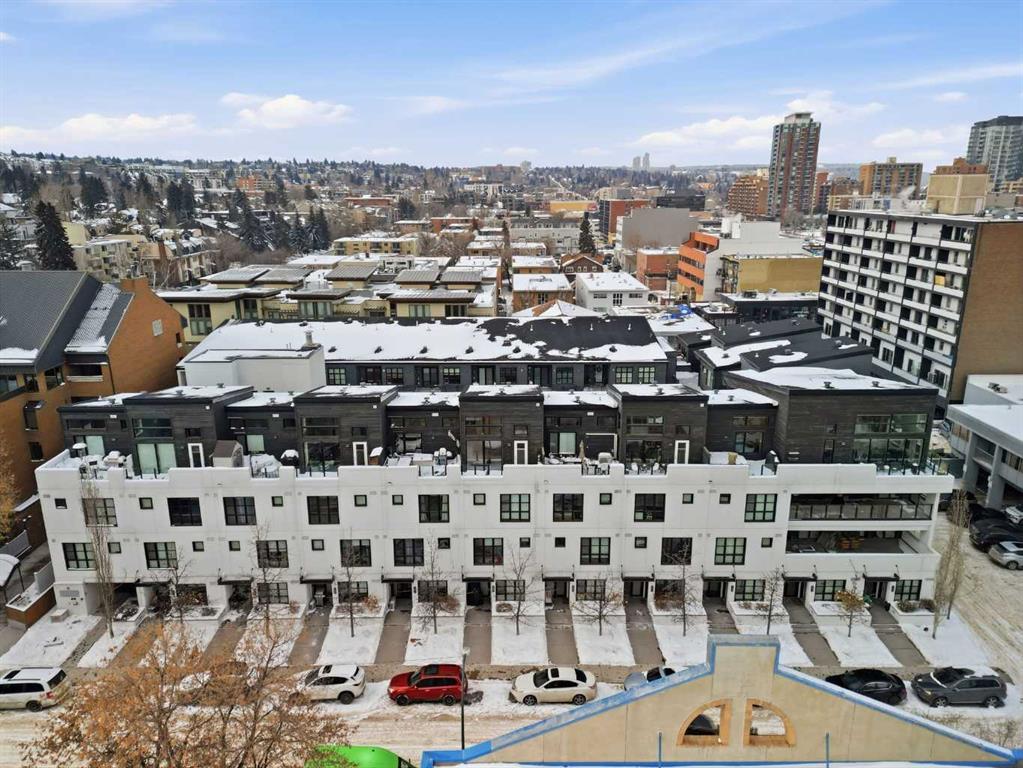 Lower Mount Royal – #433, 1719 9A Street SW: - New Price !! - Welcome to The Block built by Avi Urban. This modern, TOP FLOOR unit offers 612 sq ft of living space plus a 99 sq ft loft (not included in measurements due to ceiling height), 1 bedroom, 1 bathroom, and titled underground parking. The bright entry opens to a vaulted living area with room for both living and dining, along with sliding doors leading to the patio overlooking the courtyard. The kitchen features quartz countertops, tile backsplash, a pantry, and stainless steel appliances, including a gas range, fridge, dishwasher, and microwave. The impressive 13-foot ceiling height in the primary bedroom has been transformed into a unique lofted feature designed by Calgary’s Studio North, creating a space that is both practical and distinctive. Thoughtfully redesigned, the bedroom offers a flexible layout with a walk-in closet, home office/fitness space on the main level, complemented by the private lofted sleeping area. Additional highlights include hardwood flooring throughout, in-suite laundry, air conditioning, and separate storage in the underground parkade. Ideally located in the vibrant community of Lower Mount Royal, just half a block from the energy of 17th Avenue, this home offers an exceptional walkable lifestyle with shops, restaurants, cafes, amenities, and public transit all just steps from your door. This cool, unique space is a must-see. Turn key with quick possession available.
