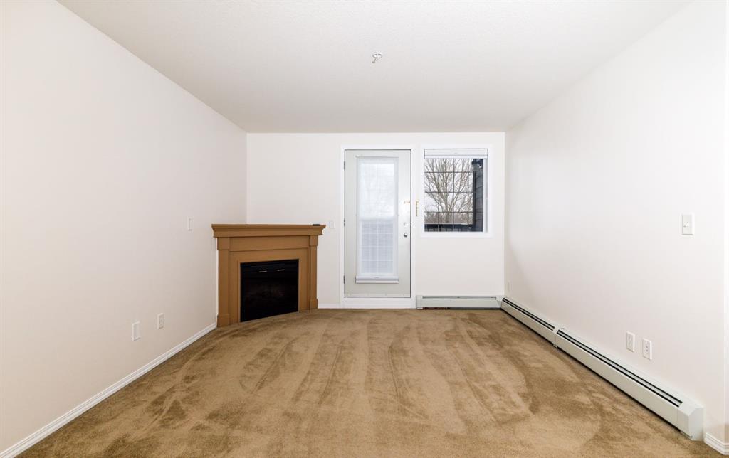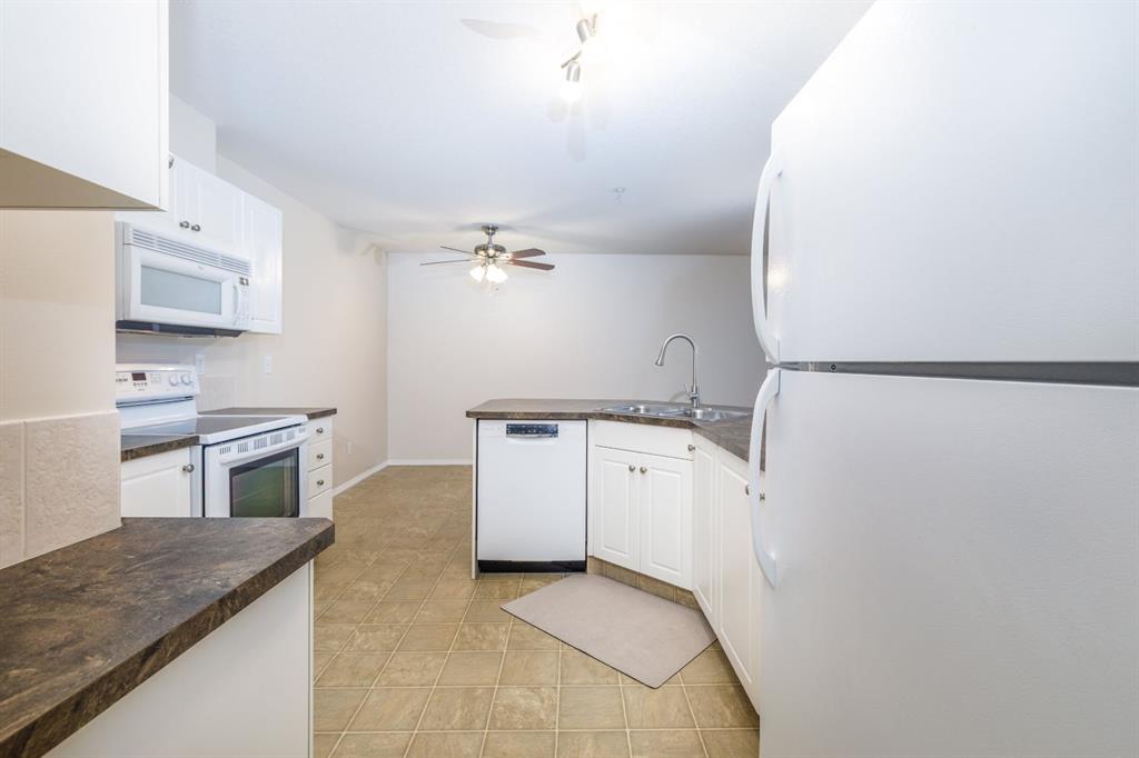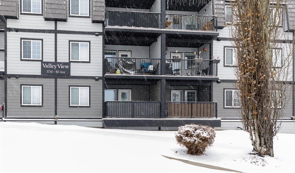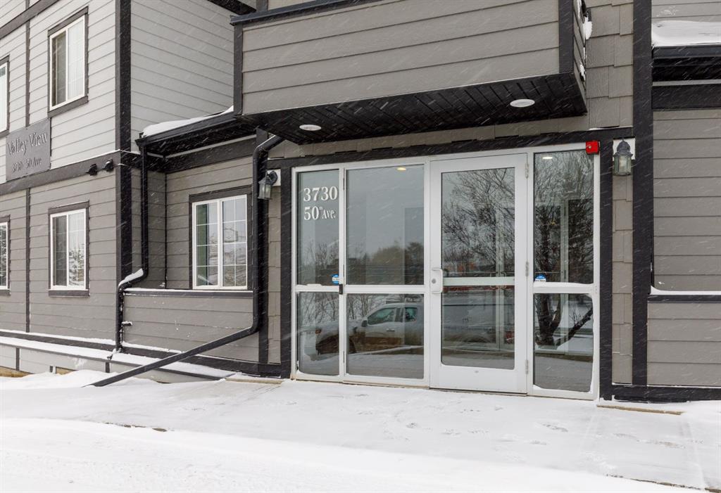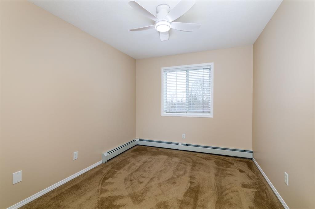 Welcome to this well-maintained, main floor 2-bedroom, 1-bath condo ideally located just one block from the hospital and within easy walking distance to downtown and many everyday amenities. This move-in ready home has been freshly painted and features updated light fixtures and ceiling fans throughout. The bright, functional kitchen showcases beautiful white cabinetry, ample counter space, a convenient breakfast bar, large pantry, and matching all-white appliances. The spacious dining area flows nicely into the generous living room, where you can relax beside the cozy gas fireplace the door and window have been replaced to allow for a portable A/C as well! Step outside to your private east-facing deck — the perfect spot to enjoy your morning coffee and take in the lovely view. Both bedrooms are generously sized, with a well-appointed 4-piece bathroom nearby. You’ll also appreciate the convenience of in-suite laundry with a stackable washer/dryer and additional storage space. Small pets are welcome! Two assigned outdoor parking stalls (#10 & #11) are included with power. Condo fees cover most utilities — heat, water, sewer, garbage, and recycling — so you only pay for power. With Red Deer Hospital currently under a 1.8 billion dollar expansion over the next several years, this your opportunity to get in early on an excellent investment. Don't wait to take advantage of this amazing deal! Book your showing today!