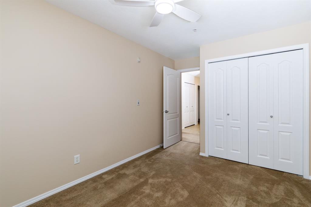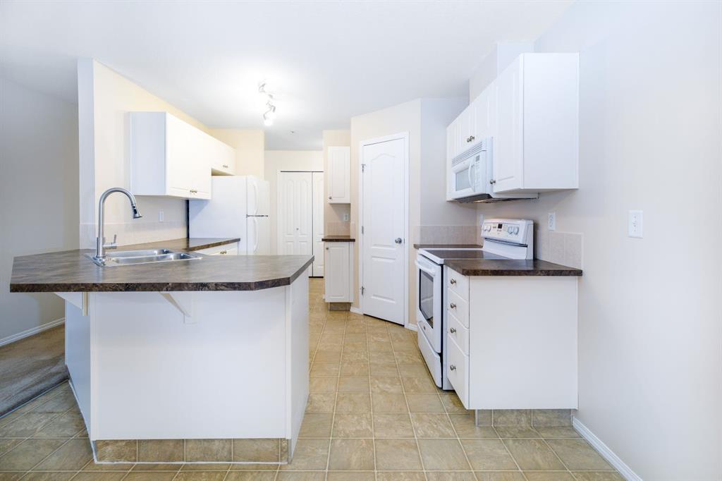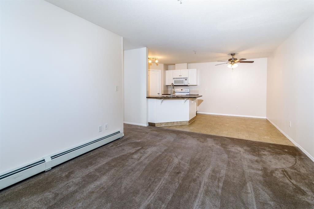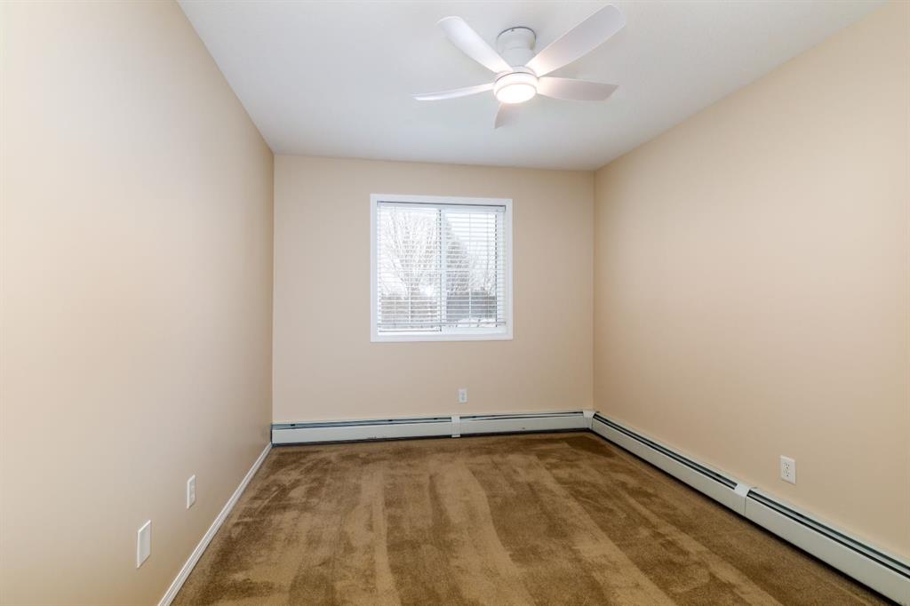 Welcome to this well-maintained, main floor 2-bedroom, 1-bath condo ideally located just one block from the hospital and within easy walking distance to downtown and many everyday amenities. This move-in ready home has been freshly painted and features updated light fixtures and ceiling fans throughout. The bright, functional kitchen showcases beautiful white cabinetry, ample counter space, a convenient breakfast bar, large pantry, and matching all-white appliances. The spacious dining area flows nicely into the generous living room, where you can relax beside the cozy gas fireplace the door and window have been replaced to allow for a portable A/C as well! Step outside to your private east-facing deck — the perfect spot to enjoy your morning coffee and take in the lovely view. Both bedrooms are generously sized, with a well-appointed 4-piece bathroom nearby. You’ll also appreciate the convenience of in-suite laundry with a stackable washer/dryer and additional storage space. Small pets are welcome! Two assigned outdoor parking stalls (#10 & #11) are included with power. Condo fees cover most utilities — heat, water, sewer, garbage, and recycling — so you only pay for power. With Red Deer Hospital currently under a 1.8 billion dollar expansion over the next several years, this your opportunity to get in early on an excellent investment. Don't wait to take advantage of this amazing deal! Book your showing today!