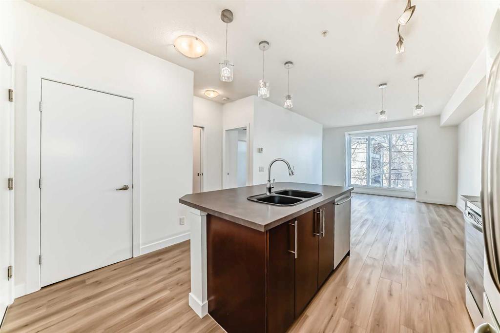 Welcome to this beautifully updated 1 bedroom, 1 bathroom condo in the vibrant community of Bankview. Perfectly situated just steps from 17th Avenue, you’ll love being within walking distance to trendy shops, restaurants, cafés, and everyday amenities. This recently renovated unit features brand-new vinyl flooring throughout, fresh modern paint, and all new blinds, creating a bright and inviting space you’ll be proud to call home. The kitchen has been thoughtfully refreshed and offers a clean, contemporary feel with ample cabinetry and workspace — ideal for both everyday living and entertaining. The open layout maximizes space and natural light, while the comfortable bedroom provides a quiet retreat at the end of the day. The full bathroom is well-appointed and move-in ready. This unit also includes one underground parking stall, with EV charging available for purchase through the condo board, as well as free bike storage conveniently located within the building. One of the standout features of the property is the incredible rooftop patio complete with a BBQ and seating area — the perfect place to relax, entertain friends, and take in the surrounding views. Whether you're a first-time buyer, investor, or looking to downsize, this stylish condo offers exceptional value in one of the city’s most sought-after inner-city neighborhoods. Don’t miss your opportunity to own in Bankview! Some of the photos are virtually staged!
