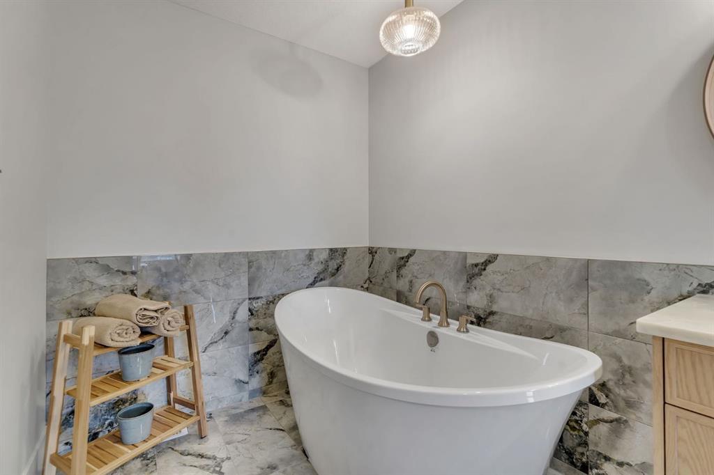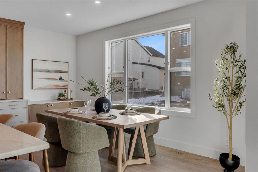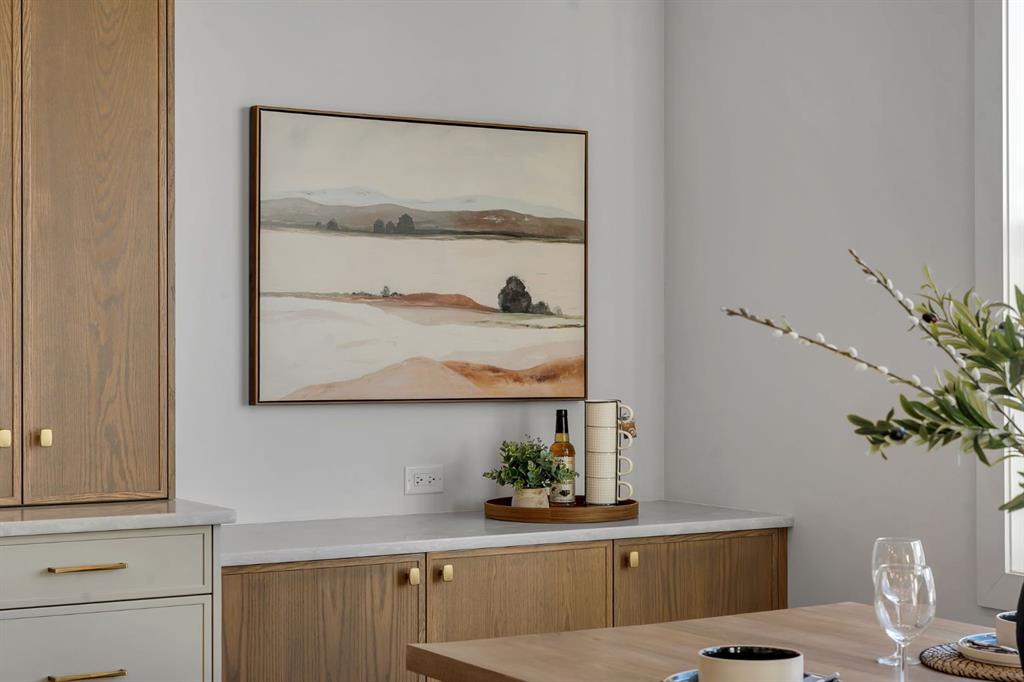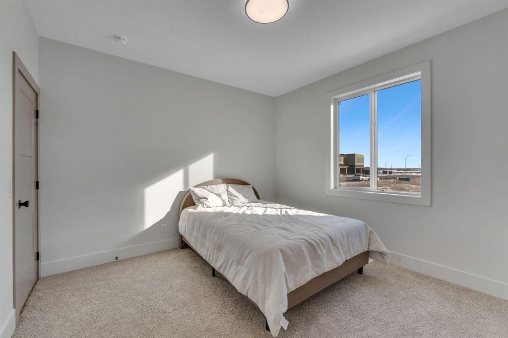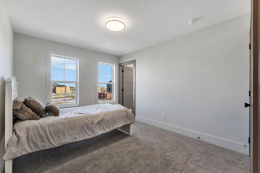 Showhomes like this rarely come on the market. Located in Waterford Estates, this home combines architectural presence with intentional design. An east-facing front welcomes the morning sun, while the west-facing backyard captures natural daylight throughout the day. The exterior makes a confident first impression with Hardie board siding, extensive stone detailing, and a heated triple garage. Inside, a curated feature wall and a striking floating metal staircase create an unforgettable entry moment, sculptural, clean, and refined. Hardwood flooring flows across the main level, guiding you into a dramatic open-to-below living space framed by expansive west-facing windows. Light pours in, enhancing the fireplace feature wall and amplifying the sense of volume and openness. The kitchen is where craftsmanship meets restraint. An oversized island with cabinetry anchors the space, complemented by a Silgranit sink and elevated brushed brass fixtures. Soft neutral cabinetry extends to the ceiling, paired with warm wood accents and designer pendant lighting. A seamless stone backsplash flows cleanly behind the gas cooktop and custom hood fan, creating a cohesive, tailored aesthetic. Storage is generous and intentional, from deep pot drawers to concealed cabinetry, ensuring the space functions as beautifully as it presents. Just beyond, a dedicated breakfast nook and formal dining area offer flexibility for both everyday living and elevated hosting. Tucked discreetly behind two-way swinging doors is a fully equipped SPICE KITCHEN with additional pantry space, a rare and highly desirable estate feature that keeps entertaining seamless. The main floor also offers a spacious bedroom with its own full ensuite and custom built-in closet shelving, plus an additional powder room, ideal for guests or multigenerational living. Upstairs, open metal railings overlook the main level, leading to a generous bonus room with a dedicated media wall and an upper laundry room for convenience. The primary retreat is thoughtfully designed with a privacy feature wall, open closet concept with built-in wood shelving, and a spa-inspired ensuite featuring a freestanding tub, double vanities, fully tiled shower with bench and niche detailing, and refined brass fixtures throughout. A second upper-level bedroom enjoys its own private ensuite, while additional bedrooms and bathrooms provide comfort and independence for family members. Outside, a finished deck with metal railings extends onto a wide lot, just minutes from Chestermere Lake, East Hills Shopping Centre, parks, and playgrounds. This is not simply a home, it is a carefully composed showpiece built for those who appreciate detail, light, and lasting design. Book your showing today.