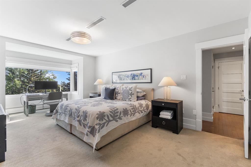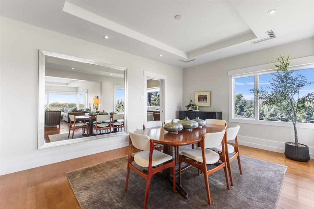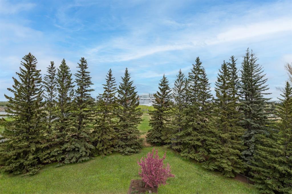 Enjoy unrivalled panoramic mountain & reservoir views from this expansive 2-bedroom plus den, 2-bath condo, offering over 2,000 sq. ft. of thoughtfully designed living space in an intimate 10-unit building in coveted Eagle Ridge! This spacious & airy home features hardwood floors & an abundance of natural light, highlighting the living room’s triple-pane picture windows, tray ceiling & feature fireplace. The living room seamlessly connects to the dining area that provides ample space for family gatherings or elegant dinner parties. Just steps away, the well-appointed kitchen boasts granite countertops, ample storage, stainless steel appliances, & cozy breakfast nook. A walk-in laundry area with countertop space adds convenience. A private den/family room with balcony access is tucked away just off the living room—an ideal work-from-home space with more breathtaking reservoir views. The primary retreat features a walk-in closet & luxurious 5-piece ensuite with dual sinks, separate vanity, tranquil soaker tub & walk-in shower. A generously sized second bedroom and 3-piece bath provide comfortable accommodations for guests. Additional highlights include a custom-made unit entry door, TWO UNDERGROUND PARKING STALLS, an assigned storage room, self-contained guest suite & an ultra-convenient elevator that takes you directly to your front door. The prime location can’t be beat with Heritage Park & Glenmore Reservoir pathways minutes away, plus amenities such as shopping at Glenmore Landing, schools, public transit & Rockyview Hospital. Enjoy easy access to 14th St, Heritage Drive & Glenmore Trail.
