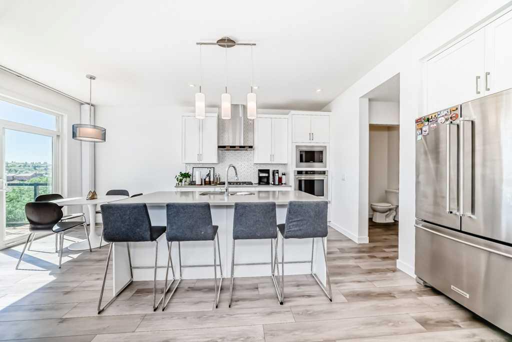 Welcome to Green Space View — a stunning 4-bedroom, 3.5-bath home with a walkout basement in the prestigious Aspen Springs community of Springbank Hill. Built in 2022 and still covered by the New Home Warranty, this thoughtfully designed residence offers nearly 2,000 sq. ft. of total living space and backs directly onto serene green space. Enjoy an east-facing backyard that bathes in the morning sun, creating the perfect setting for coffee on the deck and peaceful starts to your day. The main floor boasts 9 ft ceilings, an elegant white interior palette, luxury vinyl plank flooring, and an open-concept layout ideal for both daily living and entertaining. The gourmet kitchen features crisp white cabinetry, quartz countertops, tiled backsplash, high-end stainless steel appliances including gas cooktop, built-in oven and microwave, extra-wide refrigerator, and a large central island. The bright dining area opens to the upper deck through patio doors, while the spacious living room offers plenty of natural light. A mudroom and 2 pc powder room complete the main level. Upstairs, you’ll find three generously sized bedrooms, a 4-piece main bath, and a convenient laundry room. The serene primary suite is a true retreat, featuring a luxurious 5 pc ensuite with dual sinks, a soaker tub, separate glass shower, and a large walk-in closet. The fully finished walkout basement adds incredible versatility, with a large family/recreation room, a fourth bedroom, and a 3 pc bath, perfect for guests, as a home office or the teenager that wants their privacy. Step outside to your private covered patio and enjoy direct access to the walking path and green space beyond. Attached front drive double garage.. Enjoy the convenience of walking to Aspen Landing Shopping Centre, top tier schools including Rundle College, Webber Academy, and Ambrose University - all within 2.5 km! Dining options just steps away within the complex. Easy access to Westside Rec Centre, multiple golf courses, and nearby country clubs enhances your active lifestyle. Elegant, modern, and move-in ready, this exceptional townhome truly offers the best of low-maintenance luxury living with nature at your back door and amenities just minutes away.
