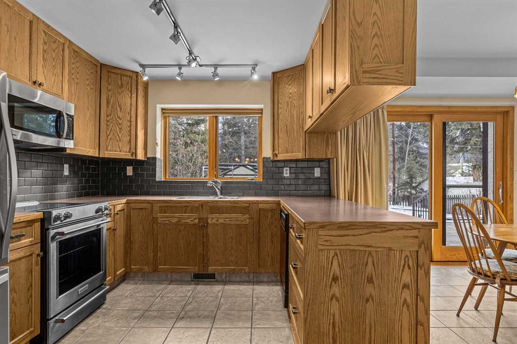Welcome to 933 15th Street – come home to this sunny location in coveted Lions Park in Canmore. This 4 bedroom, 4 bathroom home has the perfect floorplan for your family and guests. Boasting a generous kitchen, two dining areas, and two large living rooms on the main level this very flexible floorplan has space for everyone. The bright living level extends outdoors onto the huge 370 sqft south-facing deck to enjoy the plentiful sun. Two large primary bedrooms with mountain views and ensuites occupy the upper level, along with 2 more bedrooms, a 5 piece family bathroom and a home office. Keep your cars and mountain toys safe in the heated double garage, with parking for up to 4 more (or your RV/ trailer) on the driveway. The back yard also benefits from rear lane access. All this within walking distance of the Bow River trails, Canmore High School, Arts Place, Elevation Place, and the heart of Canmore on Main Street. This delightful home has seen many quality upgrades and additions over the years including the addition of the 2nd primary bedroom and ensuite, replacement windows, rubber roof, on-demand hot water, high efficiency furnace, additional insulation, and beautiful timberwork at the front of the home. A truly unique and fantastic opportunity in one of Canmore’s most sought-after neighborhoods. (Note: Short term rentals are not permitted at this property.)
