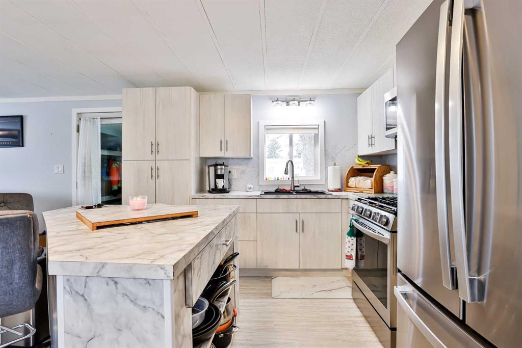 Welcome to this cozy and affordable home in the welcoming community of Coalhurst, offering the charm of small-town living while being just minutes from Lethbridge and close to local schools. This well-maintained custom and renovated mobile home features 1,310 sq. ft. of comfortable living space, including 4 bedrooms, making it an excellent option for families or anyone needing extra space for a home office or guests. The updated kitchen is a highlight, complete with new appliances, modern finishes and a kitchen island creating a functional and inviting space for everyday living. A full 4-piece bathroom adds convenience for the whole household. The enclosed porch/mudroom provides a practical entryway with additional storage and a great spot to keep coats, shoes, and outdoor gear organized year-round. Additional features include an on-demand (tankless) hot water system and a less than 2 year old furnace to add efficiency and modern comfort. Warm, inviting, and move-in ready, this home offers a fantastic opportunity to enjoy affordable living in a quiet, family-friendly community.