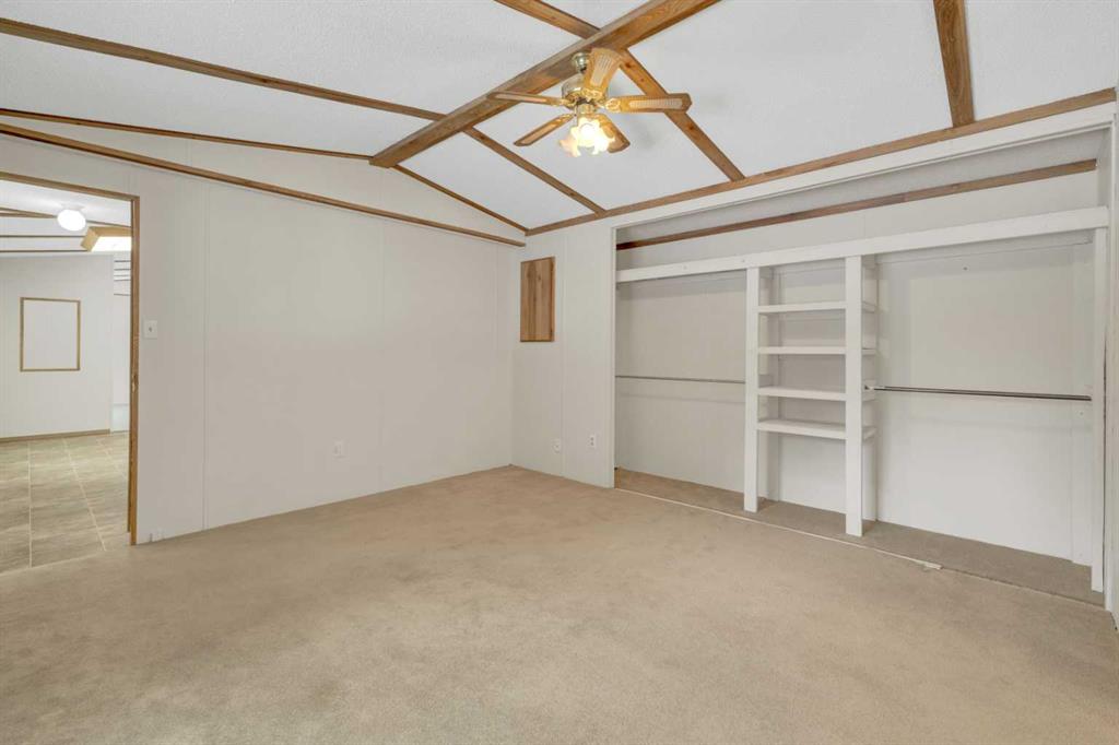 This refreshed 16x76 manufactured home offers 3 bedrooms and 2 full bathrooms, including a spacious primary suite complete with a private ensuite. Recent upgrades provide peace of mind, including NEW insulated skirting, NEW siding, NEW plumbing, NEW belly insulation, and fresh paint throughout. A durable metal roof adds to the worry-free ownership. Two new deck landings offer sturdy, convenient access, and the location is perfect based on the outside loop; end lot - providing added privacy with no neighbors behind and open parking alongside.