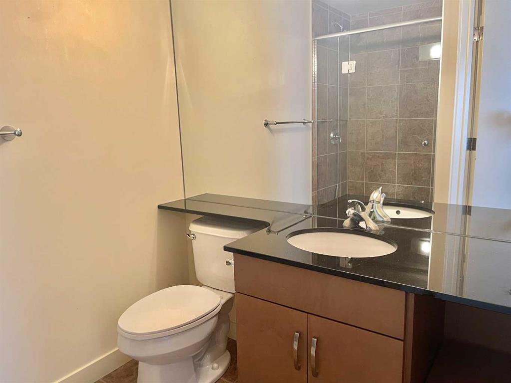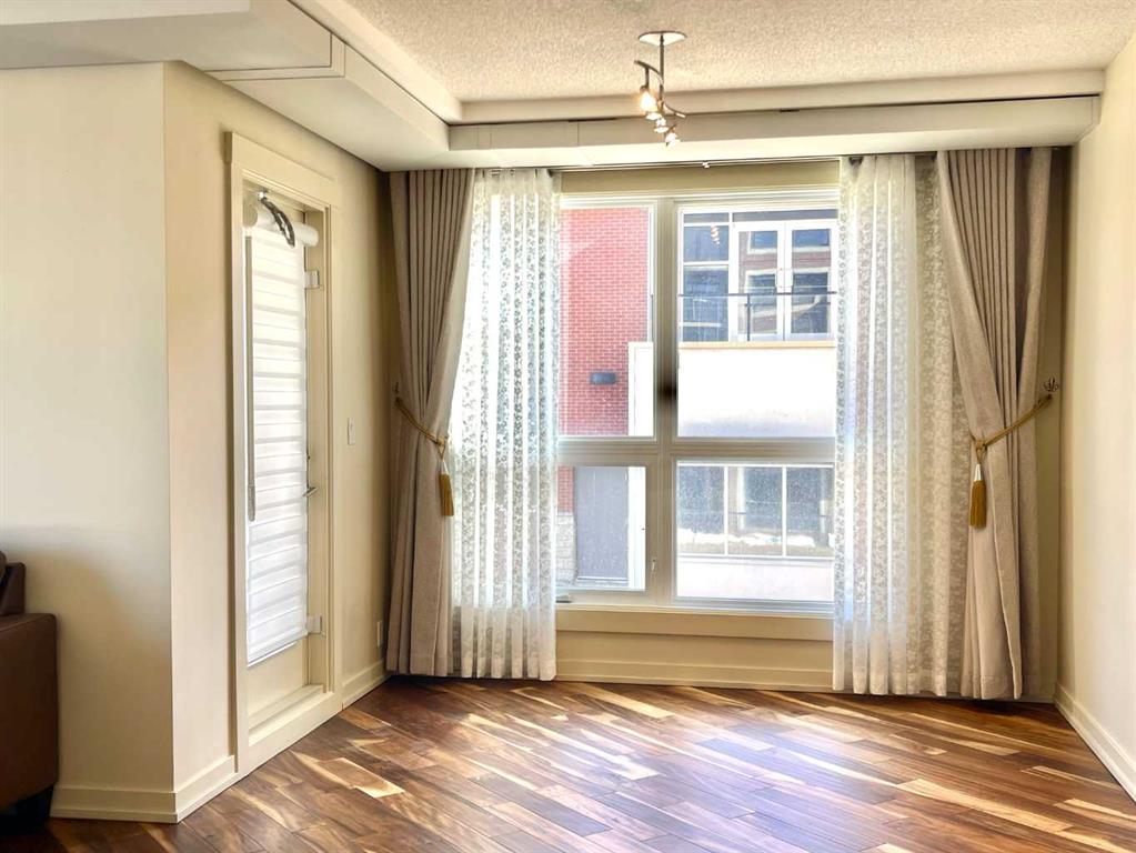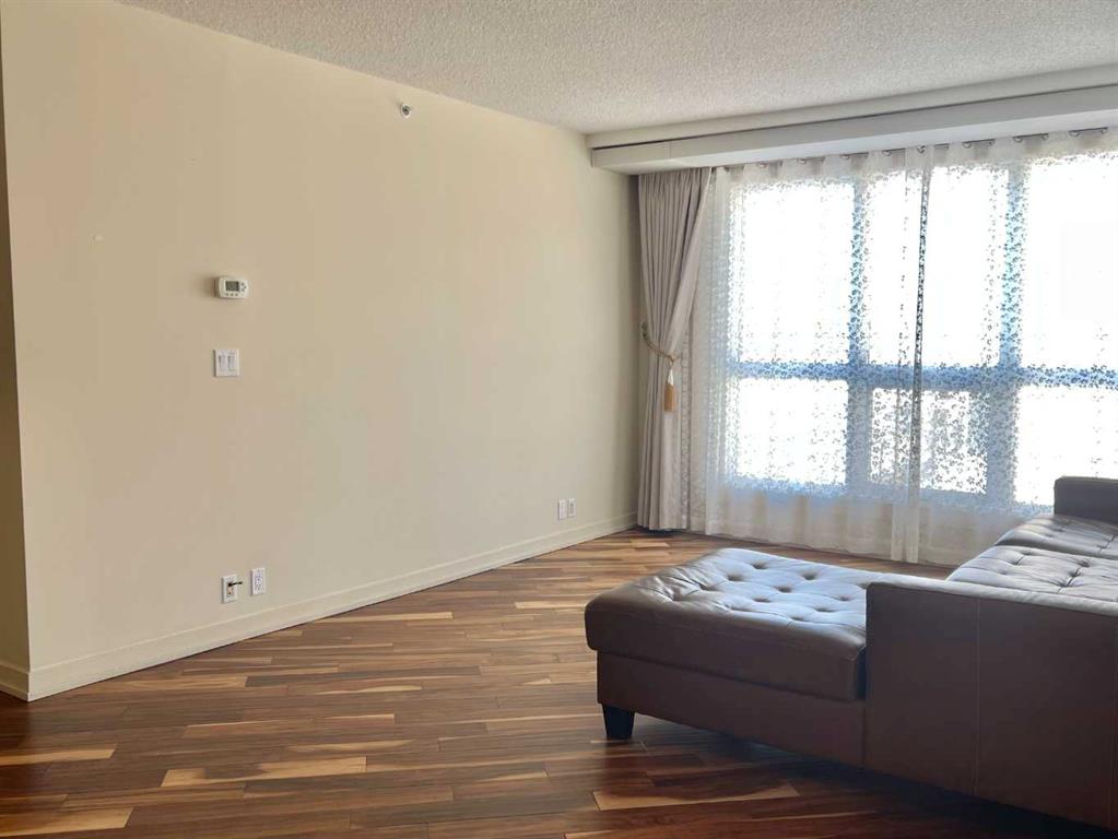 Presenting the largest corner unit in the building—an exceptional 2-bedroom, 2-bathroom residence offering 1040 square feet of thoughtfully designed living space. This upgraded residence features stylish engineered hardwood flooring and an open concept floor plan. A spacious and welcoming foyer with a double closet sets a sophisticated tone upon entry. Expansive windows throughout the unit allow for an abundance of natural light, further enhanced by the addition of elegant, customized double-layer curtains that provide both privacy and light control. The modernized kitchen is outfitted with updated cabinetry and striking black granite countertops, complemented by a suite of matching black appliances. The generous living room offers ample space for comfortable seating arrangements, with an adjacent dining area that opens to a private balcony featuring pleasant views. The primary bedroom includes a well-appointed four-piece ensuite, adding to the home's overall functionality and comfort. Residents will appreciate the building’s direct access to essential amenities, including nearby grocery stores and restaurants, all reachable without the need for elevator use. A convenient door one level below provides quick, weather-free access to Save-On-Foods via the 4th-floor parkade. Additional features include on-site security, a dedicated concierge, and ample indoor and guest parking. Situated in a highly desirable location within walking distance of numerous services and conveniences, this professionally upgraded unit with a sought-after layout represents exceptional value in today’s market.