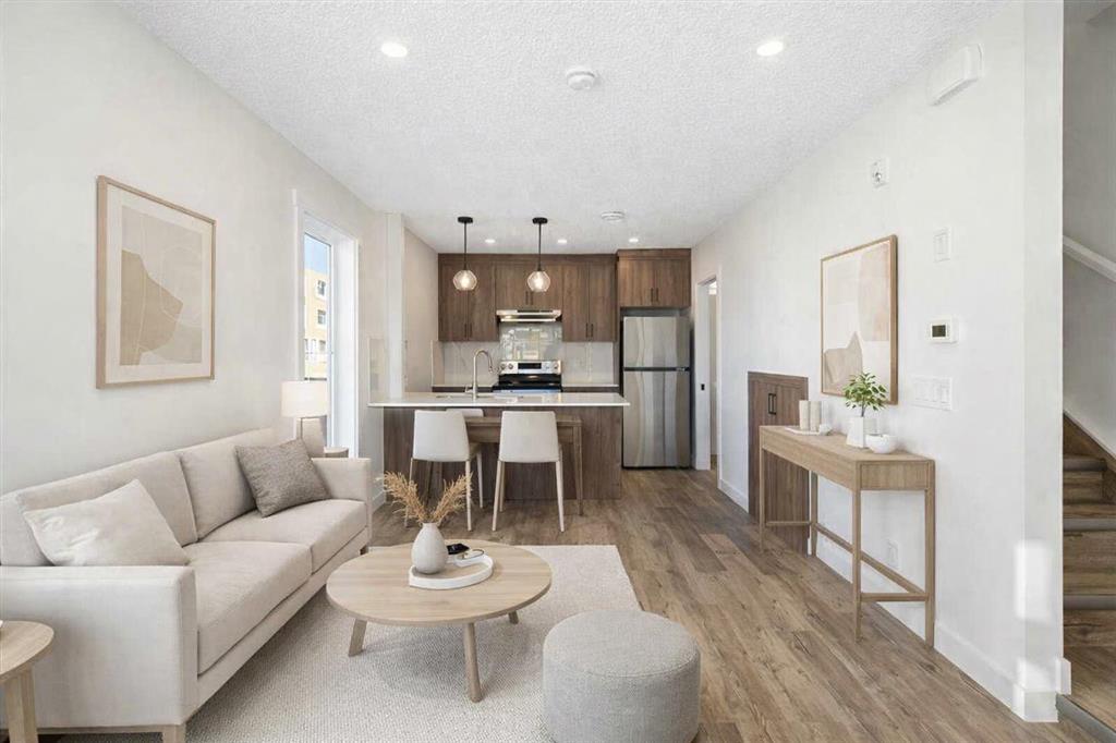 Welcome to this brand new, never occupied townhome in the sought after community of Greystone. This 2 bedroom + den and 1.5 bath home offers maintenance free living perfect for a first time buyer, downsizer or investor. As you step into this end unit you will find a bright open concept living, dining and kitchen area completed with a breakfast bar. Completing this level is your powder room for the convenience of your guests. As you head upstairs you will find your primary bedroom retreat with large windows, a walk in closet and easy access to your full bathroom. As you head down the hall you will find a den that is perfect for a home office and offers a good sized balcony off of it. Finishing this home off is your south facing 2nd bedroom perfect for guests or children. Schedule a viewing today!