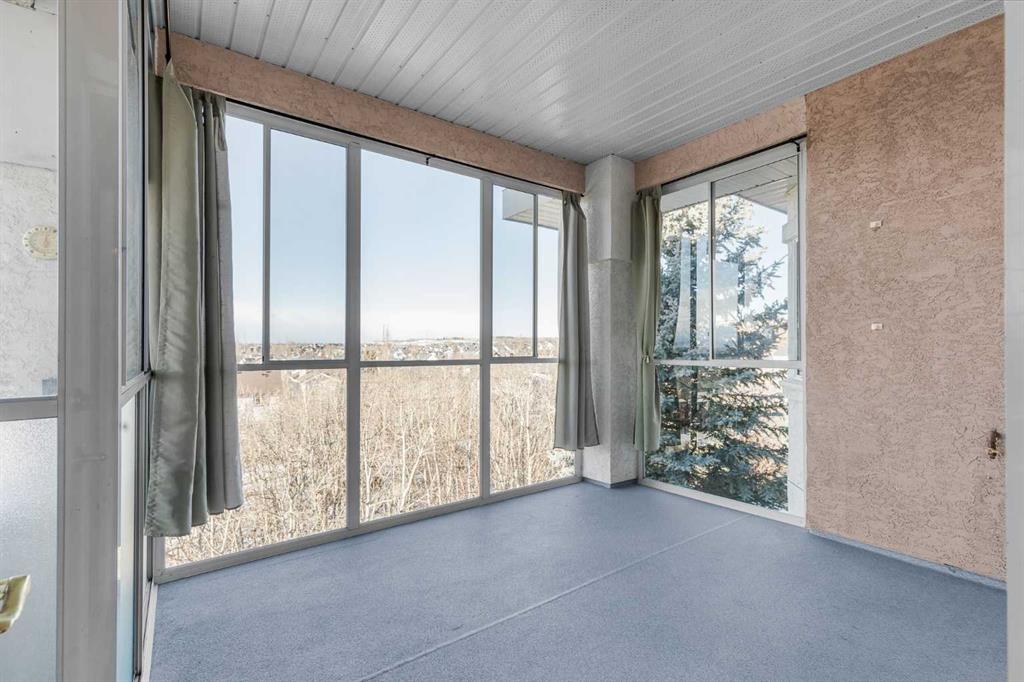 Welcome to The Sierras of Tuscany, one of NW Calgary’s most sought-after 40+ adult living communities, where comfort, connection, and convenience come together. This top-floor, 2 bedroom plus home office/den area, 2 bathroom condominium offers beautiful mountain and ravine views, enjoyed from a bright, open floor plan and a fully enclosed sunroom—perfect for year-round enjoyment. Recent updates include an over $12,000 brand-new air conditioning unit and newer, high-quality laminate flooring, adding both style and peace of mind. Additionally there are two parking stalls - one titled, one assigned each with a large storage locker! Further storage is available in an enlarged in-suite storage room and the separate laundry room. Beyond the home itself, this well-managed complex is known for its welcoming atmosphere and active social calendar, allowing residents to participate as much—or as little—as they choose. Ownership here truly means embracing a lifestyle, with an impressive list of amenities including guest suites, a saltwater pool and hot tub, bowling alley, fitness room, private theatre, ballroom, craft room, woodworking shop, car wash, pool tables, and card room. The spectacular Panorama Room, complete with a fully equipped kitchen, is ideal for gatherings, celebrations, and community events. What a location! Just a short walk to the LRT, walking paths, minutes away from the Tuscany Residence Club and market and a quick commute to Crowfoot Centre and major roadways. Whether you’re looking to downsize without compromise or enjoy a vibrant adult community, this exceptional home offers the perfect blend of low-maintenance living, luxury amenities, and breathtaking views!