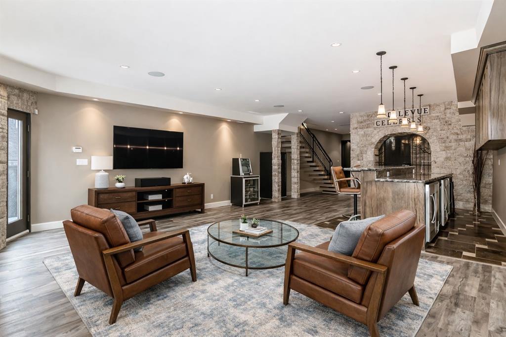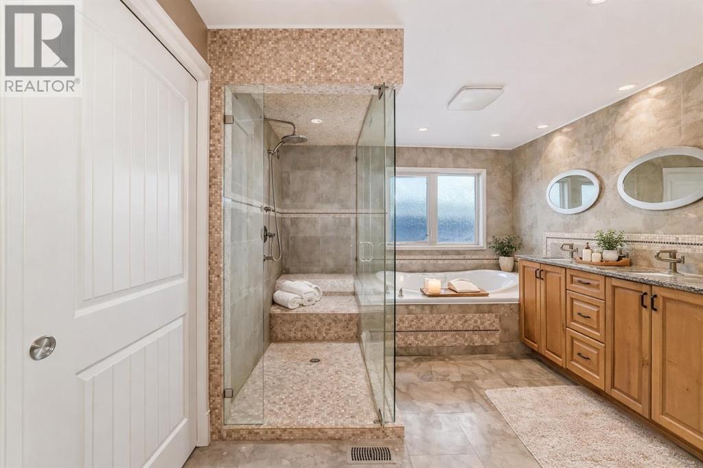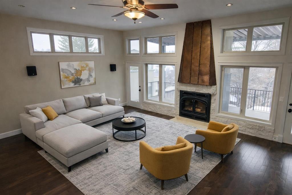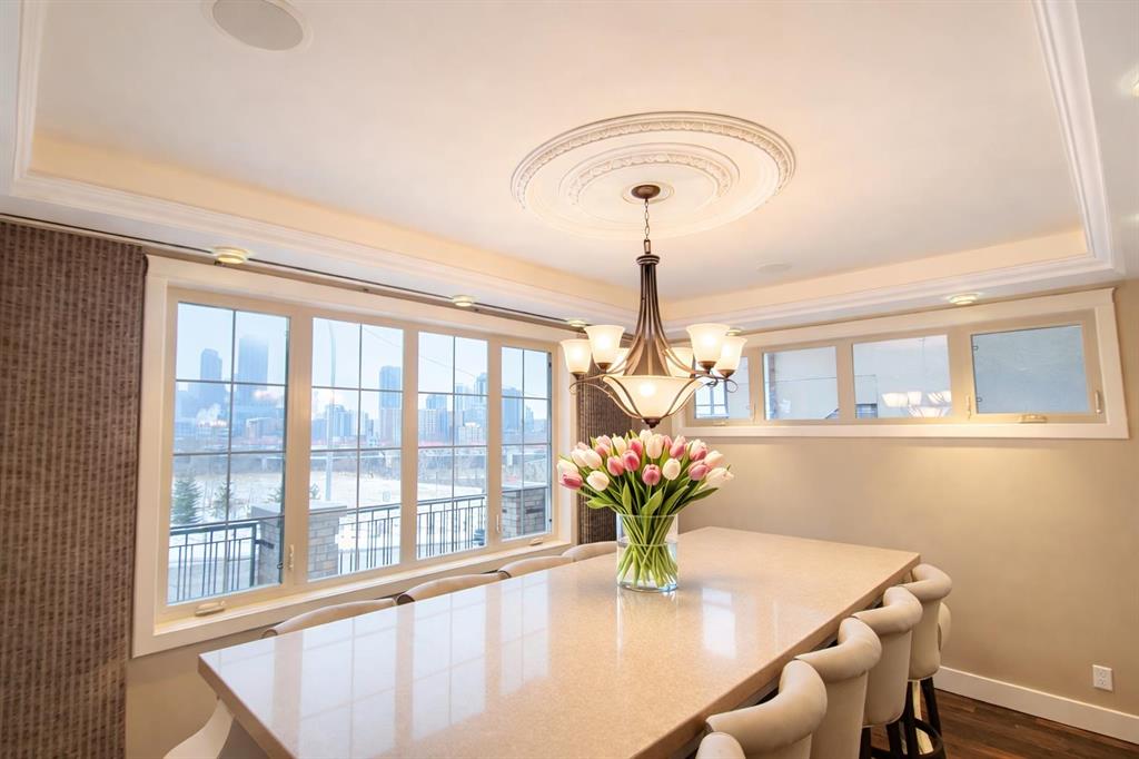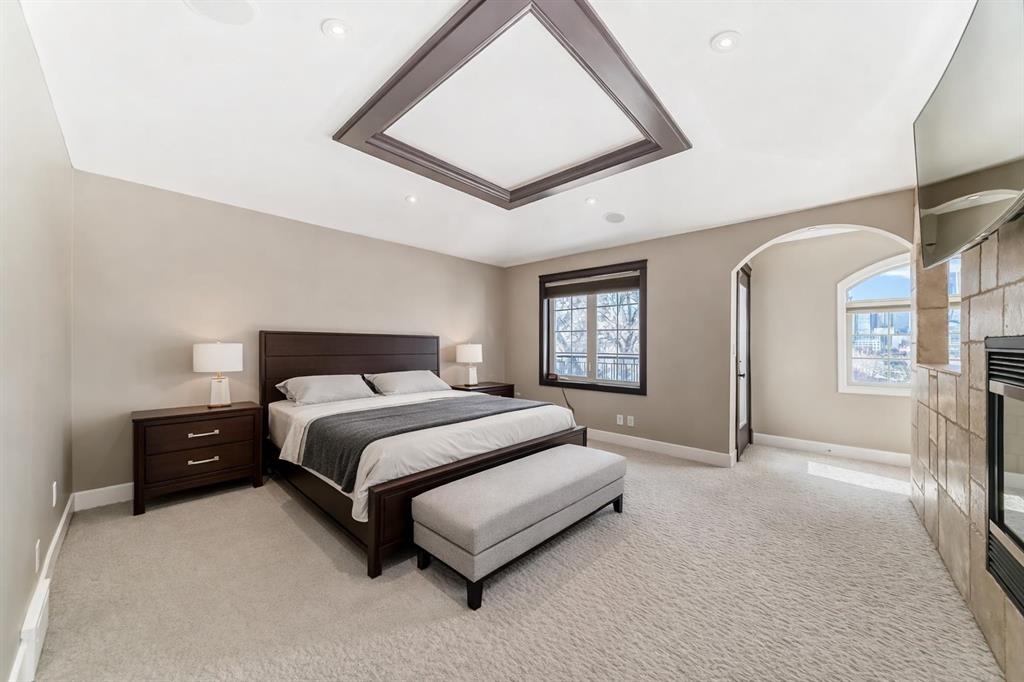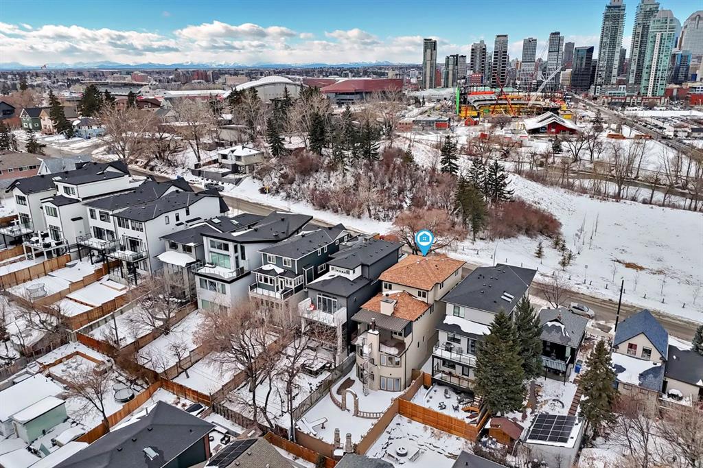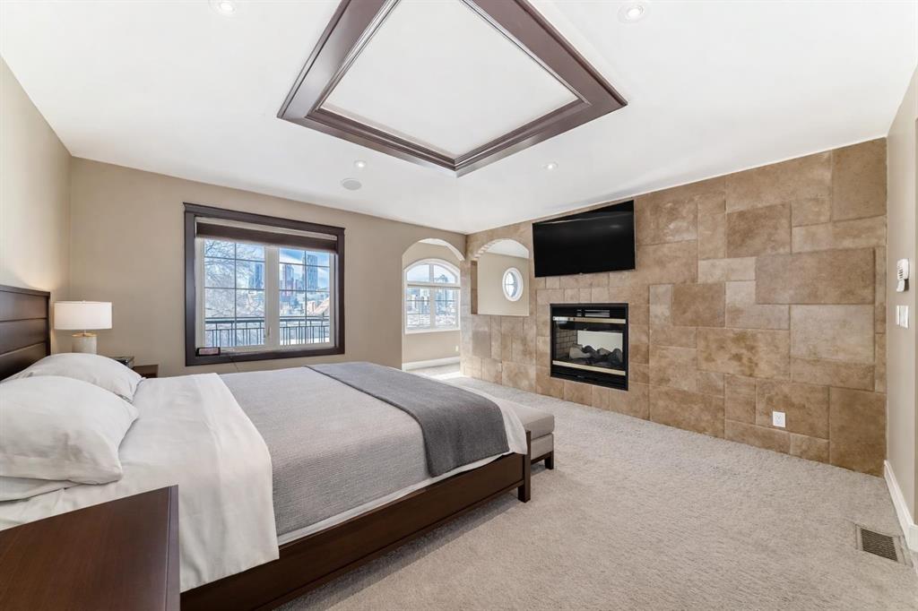 Step inside a home where everyday life feels extraordinary. Inspired by the romance and warmth of a Tuscan villa, this custom-built estate offers over 4,600 square feet of beautifully curated living space across four levels — each one designed for connection, retreat, and unforgettable moments. Nestled in vibrant Ramsay, you can stroll to river pathways, parks, the Stampede Grounds, or downtown Calgary, then return home to your own private sanctuary in the city. Arrival is an experience in itself. Cast iron stairs lead to a full-width porch and a charming alcove entrance, where a secure gated entry welcomes you with a sense of privacy and grace. Inside, the heart of the home unfolds. The chef’s kitchen — anchored by premium appliances, a generous island, built-in pantry, and sunlit breakfast nook — invites slow mornings and lively evenings. The dining area captures breathtaking city views, setting the stage for unforgettable dinners. Just a few steps down, the mezzanine living room glows with warmth from a wood-burning fireplace crowned by a striking bronze hood. Doors open to a heated deck with adjustable louvres — a seamless indoor-outdoor space designed for Calgary’s ever-changing seasons. The entire top floor is a retreat unlike any other. Your private primary sanctuary includes panoramic skyline views, a balcony for quiet mornings, a two-sided fireplace, cozy reading nook, dedicated office space, and a spa-inspired ensuite complete with steam shower and heated bench. It’s a space designed not just for rest, but for restoration. On the lower level, two private bedrooms with their own ensuites offer comfort and independence for family or guests. Downstairs, the fully developed walkout basement transforms entertaining into an art form — featuring a wet bar, gated wine cellar and tasting room, and a spacious recreation area that opens to a terraced courtyard. Outside, the villa-inspired stone garden becomes your personal escape. An elegant archway, wood-burning fireplace, outdoor kitchen, and handcrafted pizza oven create the perfect backdrop for long summer evenings and intimate gatherings under the stars. A terrific place to host a garden party. With two laundry areas, two wood-burning fireplaces, a custom home gym, heated triple garage with mudroom access, in-floor heating, a powerful 9-ton A/C system, exterior double spiral staircase, smart security, built-in sound, and updated mechanical systems(boiler replaced in 2024)— every detail has been thoughtfully considered. This is more than a home. It is a lifestyle — rich in warmth, privacy, beauty, and unforgettable moments. Book your experience today. Some of the rooms have been virtually staged.
