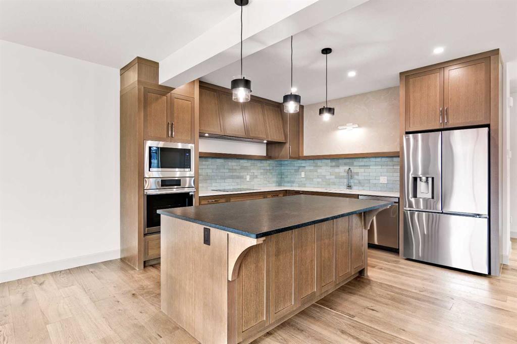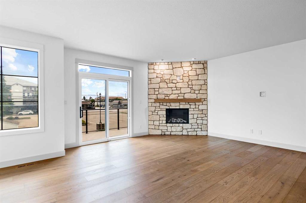 • Welcome to Edgerton Place, where comfort meets convenience in the heart of Rocky Mountain House. Nestled in the stunning foothills of the Rocky Mountains this executive new build townhome offers a modern, low-maintenance lifestyle in a prime central location—just steps from brand-new pickleball courts and within walking distance to local shops, restaurants, and everyday amenities. Step into a spacious front foyer bathed in natural light, setting the tone for the warm and welcoming atmosphere throughout the home. This level features a convenient single-car garage with heated floors and a 220v plug already in place. A modern 3-piece bathroom perfect for guests. With a versatile recreation room — ideal for a home office, gym, or a utility room with added storage, offering practical organization solutions. The heart of the home awaits on the second level with a bright and open-concept kitchen, dining, and living area. An artisan glossy aqua tile backsplash paired with sleek quartz countertops, and white oak hardwood floors flowing throughout the space. A stunning stone fireplace with mantel and access to your own private balcony perfect for entertaining is in the spacious living room. A stylish 2-piece powder room for added convenience and a functional layout perfect for hosting family and friends in a modern setting. The top floor is your serene escape featuring: A spacious Primary Suite with walk-in closet and private 3-piece ensuite complete with an accessible shower. Laundry conveniently located on this level for easy day-to-day living and an additional bedroom with its own 4- piece ensuite and walk in closet. This thoughtfully designed townhome combines style, functionality, and location—offering the best of Rocky Mountain House living. Whether you're downsizing, or investing, Edgerton Place offers unmatched value and convenience.