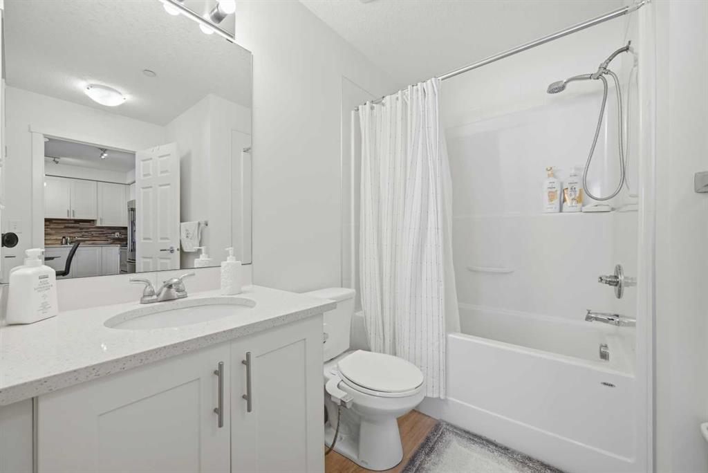 Welcome to Copperstone Park III — where comfort meets convenience in this beautifully updated, sun-filled ground-floor condo offering 2 bedrooms, 2 bathrooms, and two titled parking stalls. Enter and discover a spacious open-concept layout highlighted by 9-foot ceilings that enhance the home’s airy feel. The stylish kitchen is designed to impress, featuring stainless steel appliances, quartz counter tops, modern vinyl plank flooring, and plenty of room for a full dining setup. The seamless flow into the dining and living areas makes this space perfect for both everyday living and entertaining. Both generously sized bedrooms offer privacy and comfort, each complete with its own ensuite bathroom — ideal for roommates, guests, or small families. You’ll also appreciate the added convenience of in-suite laundry. Enjoy beautiful west-facing exposure and breathtaking sunsets from your oversized balcony. The private ground-level patio opens directly onto a peaceful green space with walking paths. This unit includes two titled parking stalls — one heated underground stall and one surface stall — providing exceptional value and flexibility. Don’t miss this incredible opportunity — explore the virtual tour or book your private showing today!