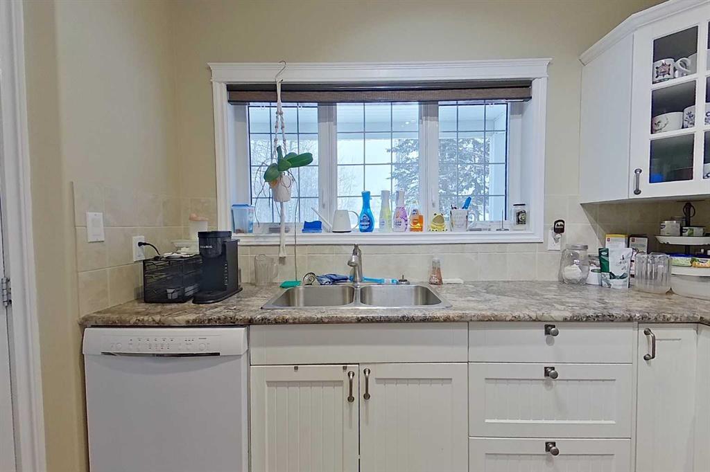 Nestled in a quiet and mature neighborhood, this beautifully maintained 2012-built bungalow offers the perfect blend of modern comfort and natural beauty. This isn't your average town lot—at 0.69 acres, this property is exceptionally large for in-town living, providing a sprawling private retreat that backs onto serene green space. The heart of the home is bathed in sunlight, thanks to expansive windows that create a bright and airy atmosphere throughout. The functional main floor features a cheerful kitchen, large family room, two spacious bedrooms, laundry room and two full bathrooms. You will especially appreciate the large, dedicated laundry room, offering the kind of workspace and storage rarely found in a bungalow layout. Seamlessly transition from indoor to outdoor living with doors off the living room that lead directly to a covered back deck—your private vantage point for enjoying the quiet backyard. The lower level offers a fantastic head start on additional living space. This partially finished basement already includes a massive recreation room, a third bedroom, a three-piece bathroom, and a large utility room with abundant storage. Simply bring your finishing touches to this level to build instant equity and truly make this home your own. Whether you’re relaxing on the covered front porch or the back deck, the sense of space is undeniable. With over half an acre of land and no rear neighbors, you have all the room you need for gardening, play, or simply enjoying the view of the woods behind you.
