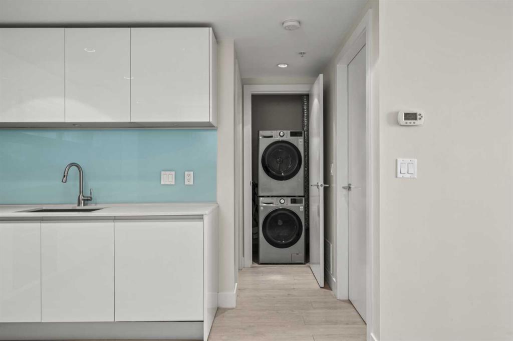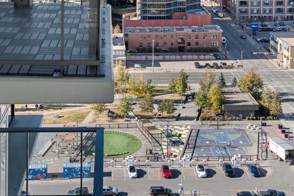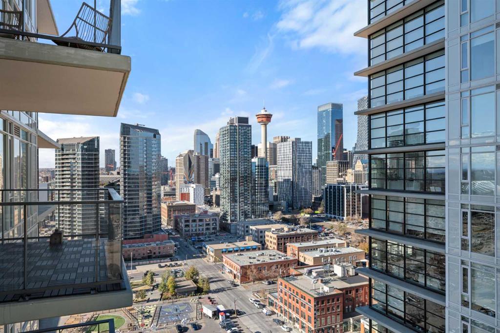 Experience elevated urban living with a VIEW in this modern one bedroom condo with titled underground parking in The Guardian South Tower, one of Calgary’s most iconic high rise communities loaded with next level amenities. Inside, the thoughtfully designed open concept layout is anchored by a sleek contemporary kitchen featuring integrated executive style appliances including a hidden refrigerator, elegant quartz countertops, and modern cabinetry. The space flows seamlessly into the dining and living area, where floor to ceiling windows flood the home with natural light. Durable LVP flooring runs throughout, offering a clean modern look with easy maintenance. Step out onto the spacious covered balcony and take in vibrant city views and stunning sunsets. Glass railings showcase the Calgary skyline, including the iconic Calgary Tower. Residents enjoy impressive amenities including a massive social club with fireplace, big screen TVs, Wi Fi, and lounge seating, a fully equipped fitness centre that rivals most commercial gyms, and a beautifully landscaped garden terrace. The home includes titled, secure, heated underground parking. The building is pet friendly with approval and professionally managed, making it ideal for professionals, investors, or anyone wanting a low maintenance downtown lifestyle. Located in the heart of the Beltline, you are steps from the Stampede Grounds, Scotiabank Saddledome, transit, casinos, and endless restaurants, cafés, and shopping. A rare opportunity to own in one of Calgary’s most sought after towers. Walkability and true urban living at its finest. Book your private viewing before it’s gone.