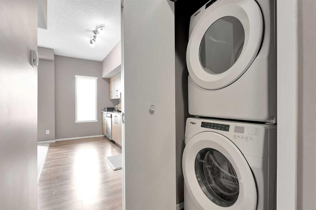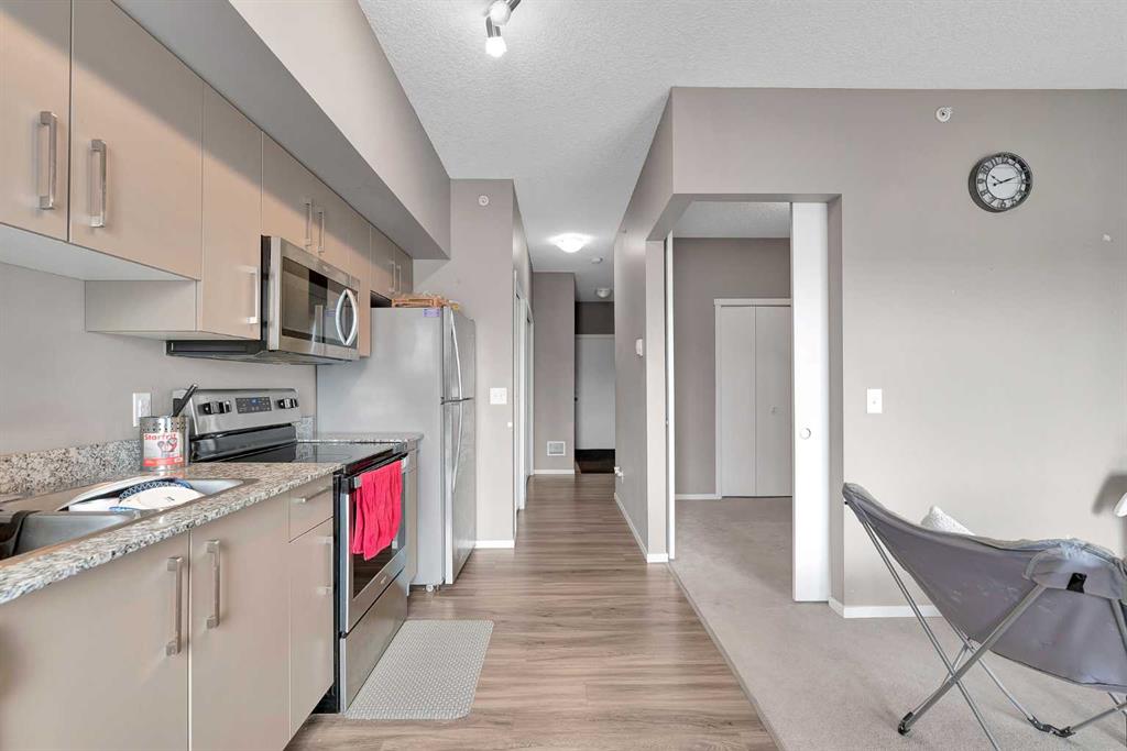 Discover effortless condo living in this immaculate, top-floor unit at Skyview Landing, nestled in the highly sought-after, family-friendly Skyview Ranch. Enjoy a bright, open-concept living and dining area with 9-foot ceilings, perfect for entertaining or simply relaxing. This space extends to a private balcony, ideal for enjoying the view. The modern kitchen features stainless steel appliances and granite countertops. This spacious floor plan includes two bedrooms and a four-piece bathroom. You'll appreciate the exceptional value with low condo fees and a titled, heated underground parking stall. Stay active with access to two gyms conveniently located in buildings 3000 and 4000. Embrace a low-maintenance lifestyle with quick commutes to the city's best amenities via Metis Trail, Stoney Trail, and Country Hills Blvd. Check out the virtual tour or book your private showing today!